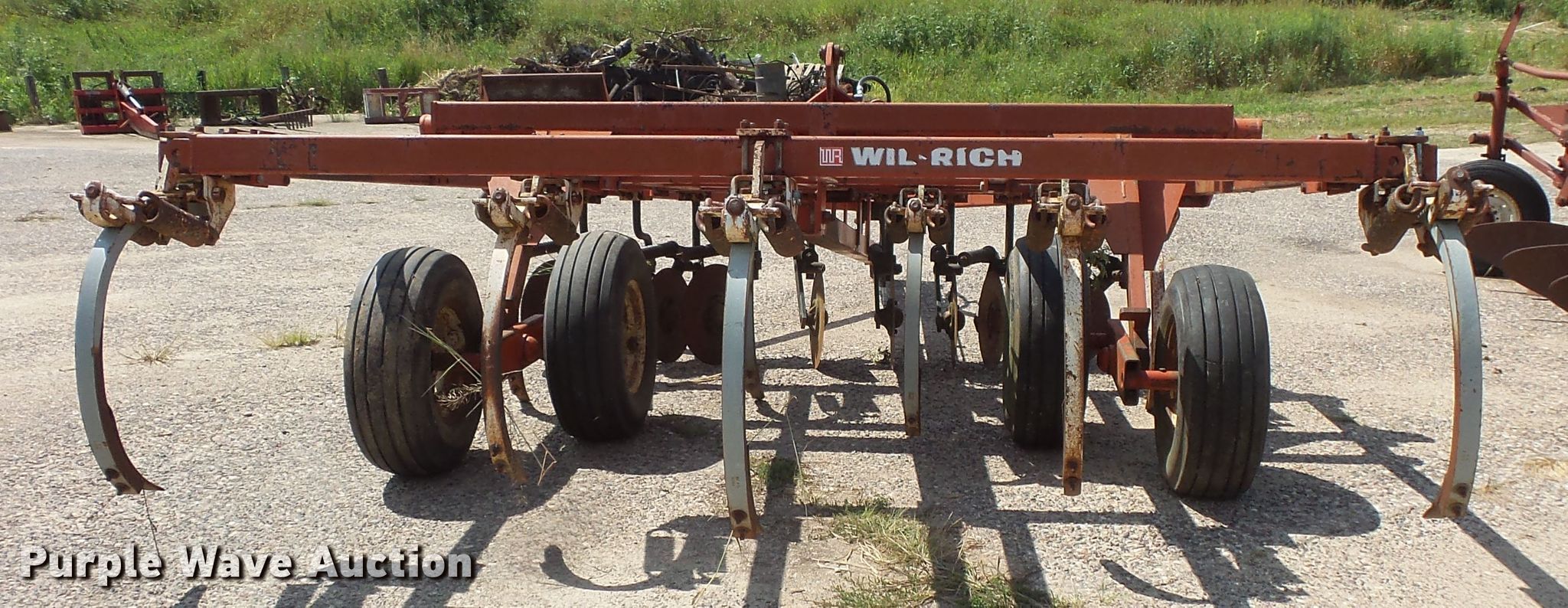Purple Wave is selling a used Field Cultivator or Sweep Plow in Minnesota. This item is a Wil-Rich field cultivator with the following: 10'W, (9) 1.5"W sweeps, 9" spacing, Hydraulic lift, Walking tandem axle, 11L-15 tires, (2) additional shanks