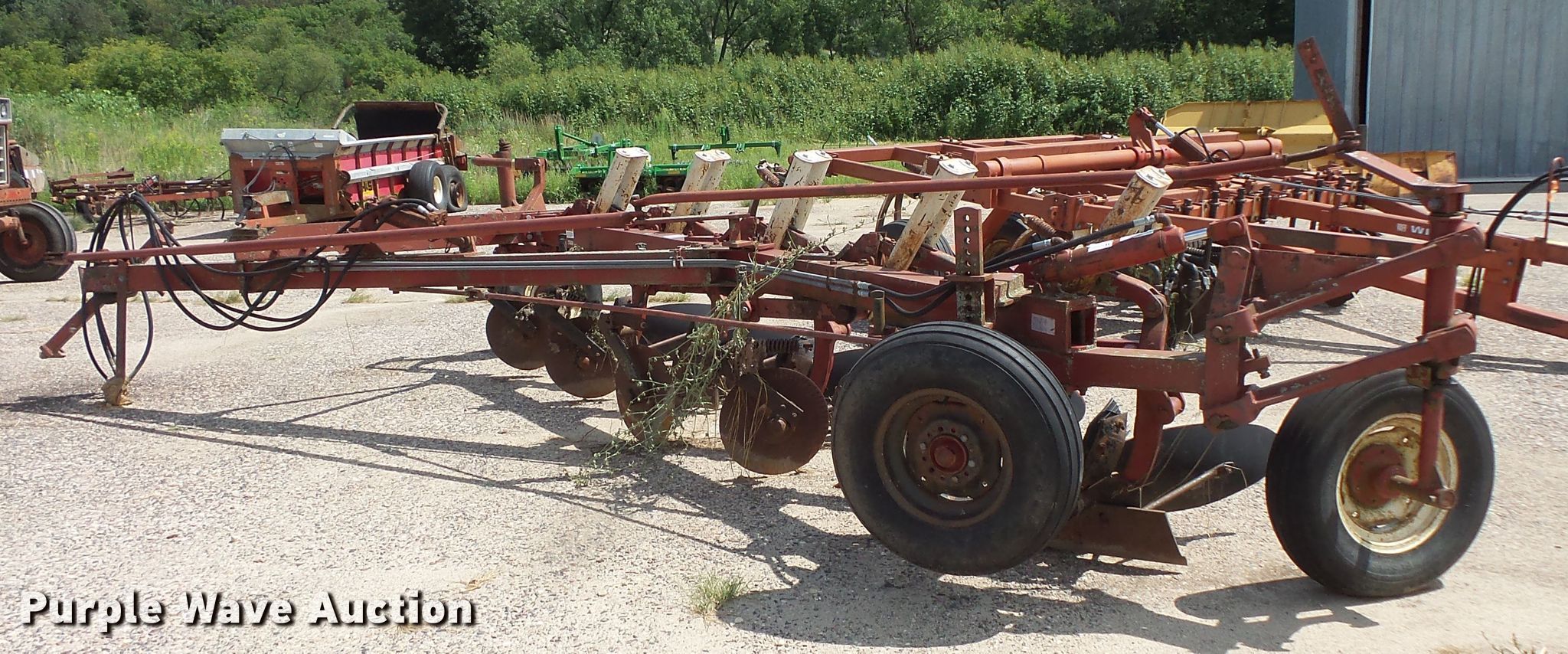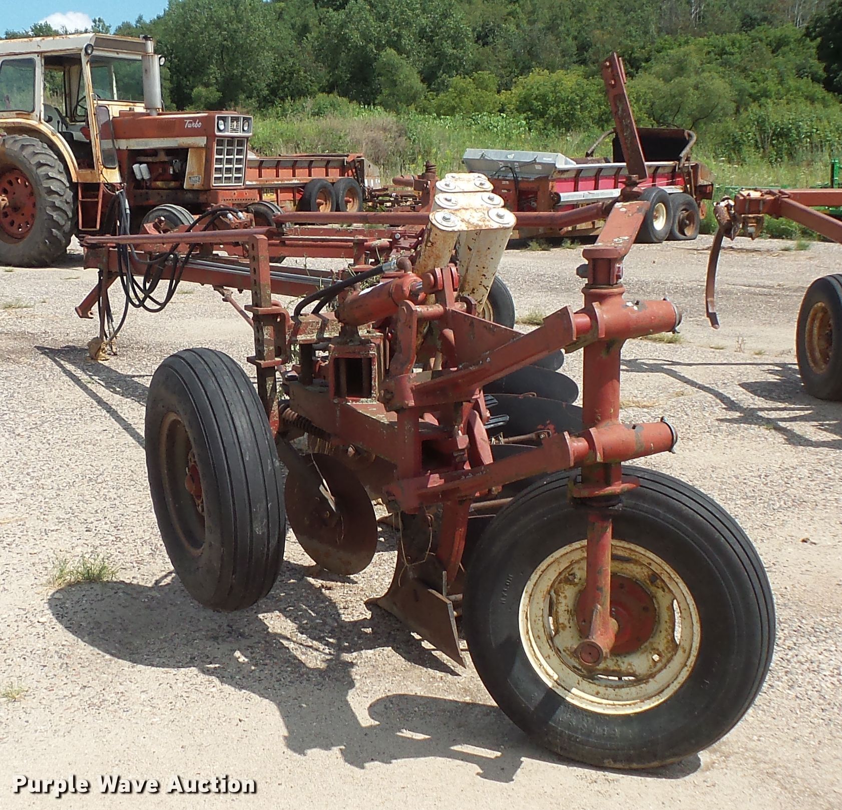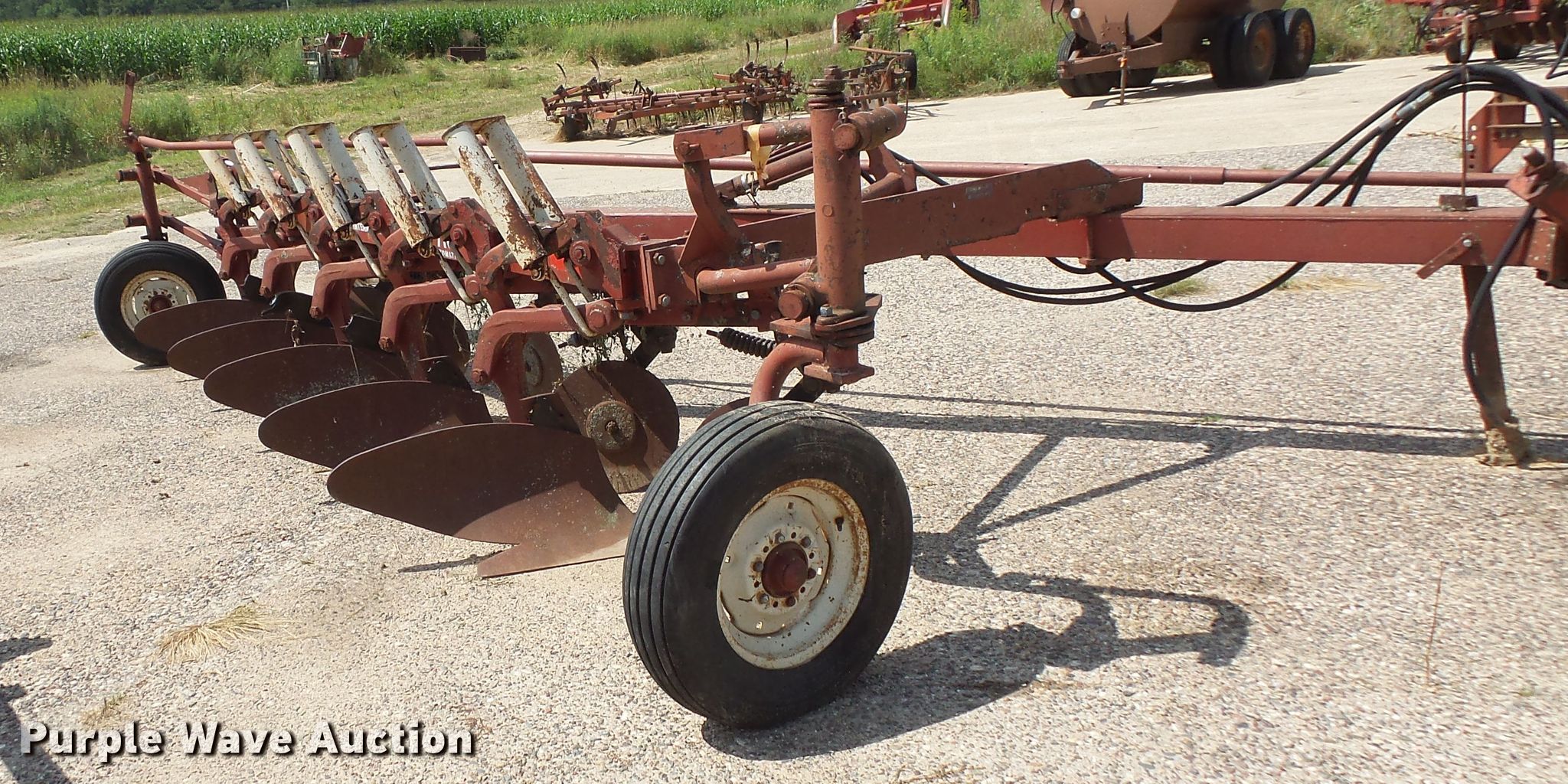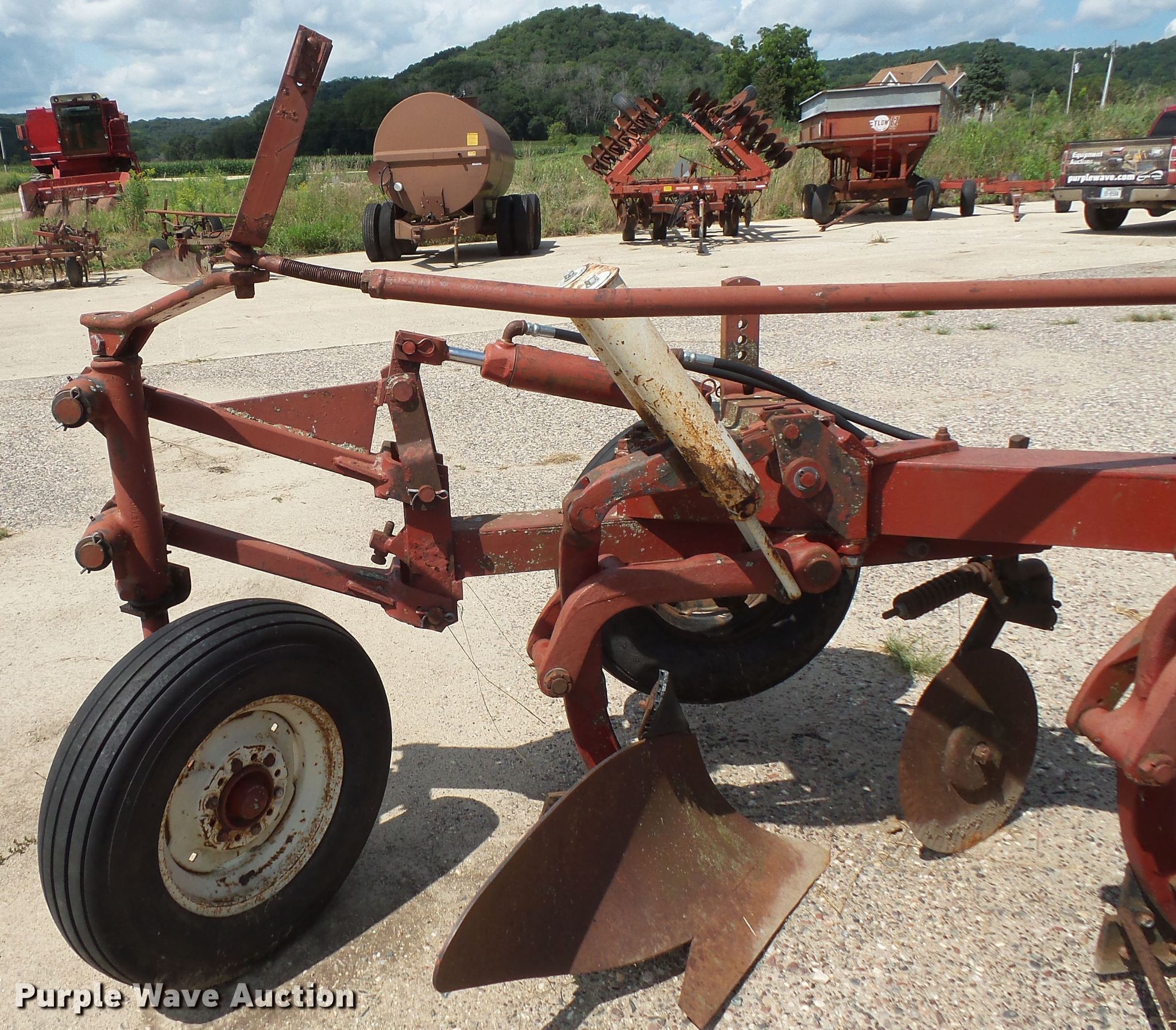 Purple Wave is selling a used Plow in Minnesota. This item is a International 710 five bottom plow with the following: 35" spacing, Hydraulic lift, 9.50-15SL gauge wheels, 7.60-15 tires, Serial 1050000U001545