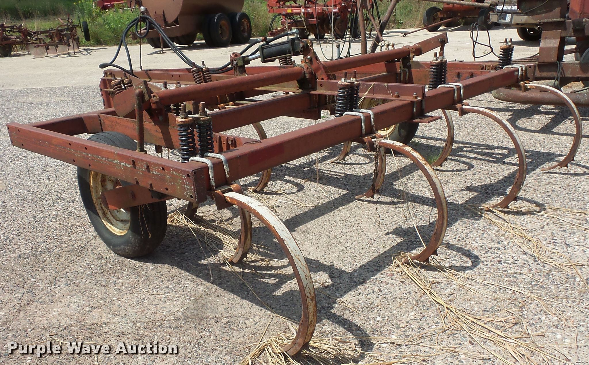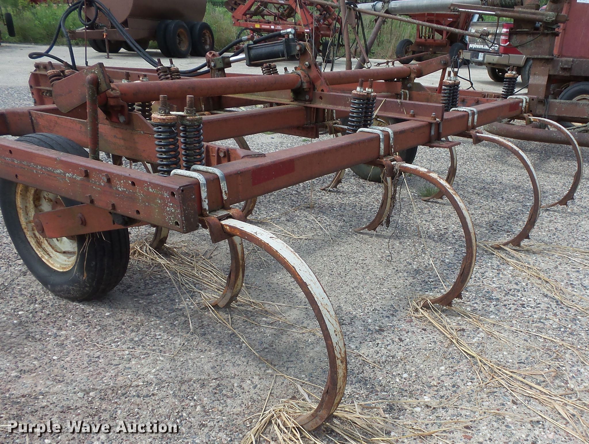 Purple Wave is selling a used Field Cultivator or Sweep Plow in Minnesota. This item is a International 55 sweep plow with the following: 10.5'W, (10) 2"W sweeps, Hydraulic lift, 7.50-15 tires