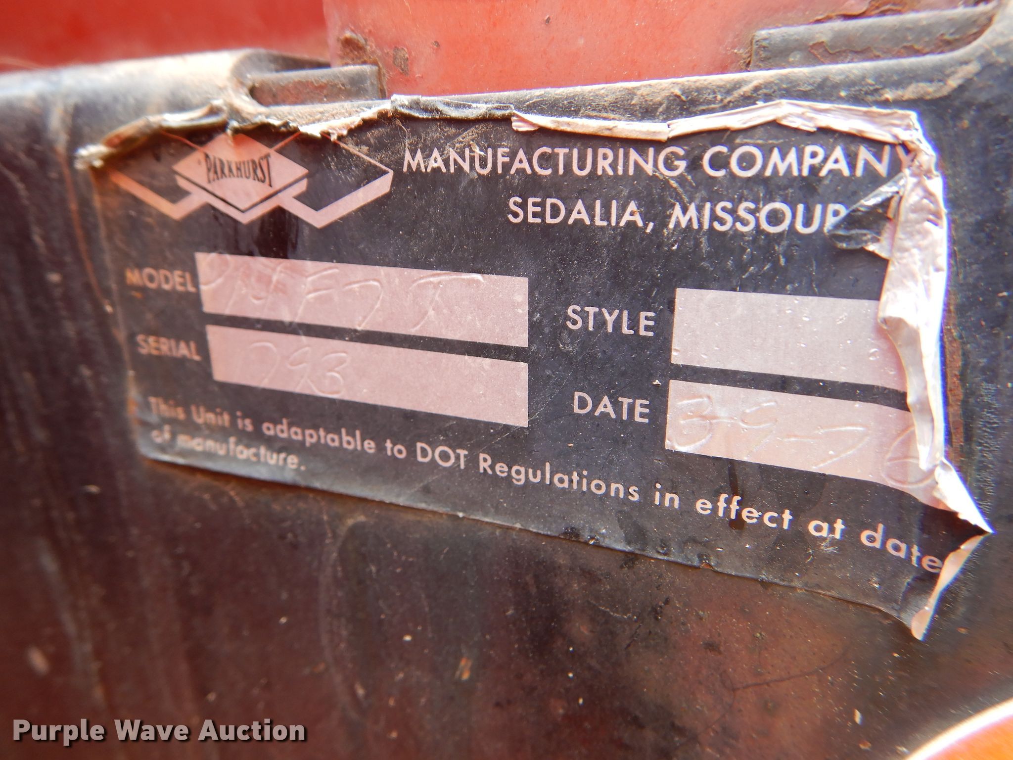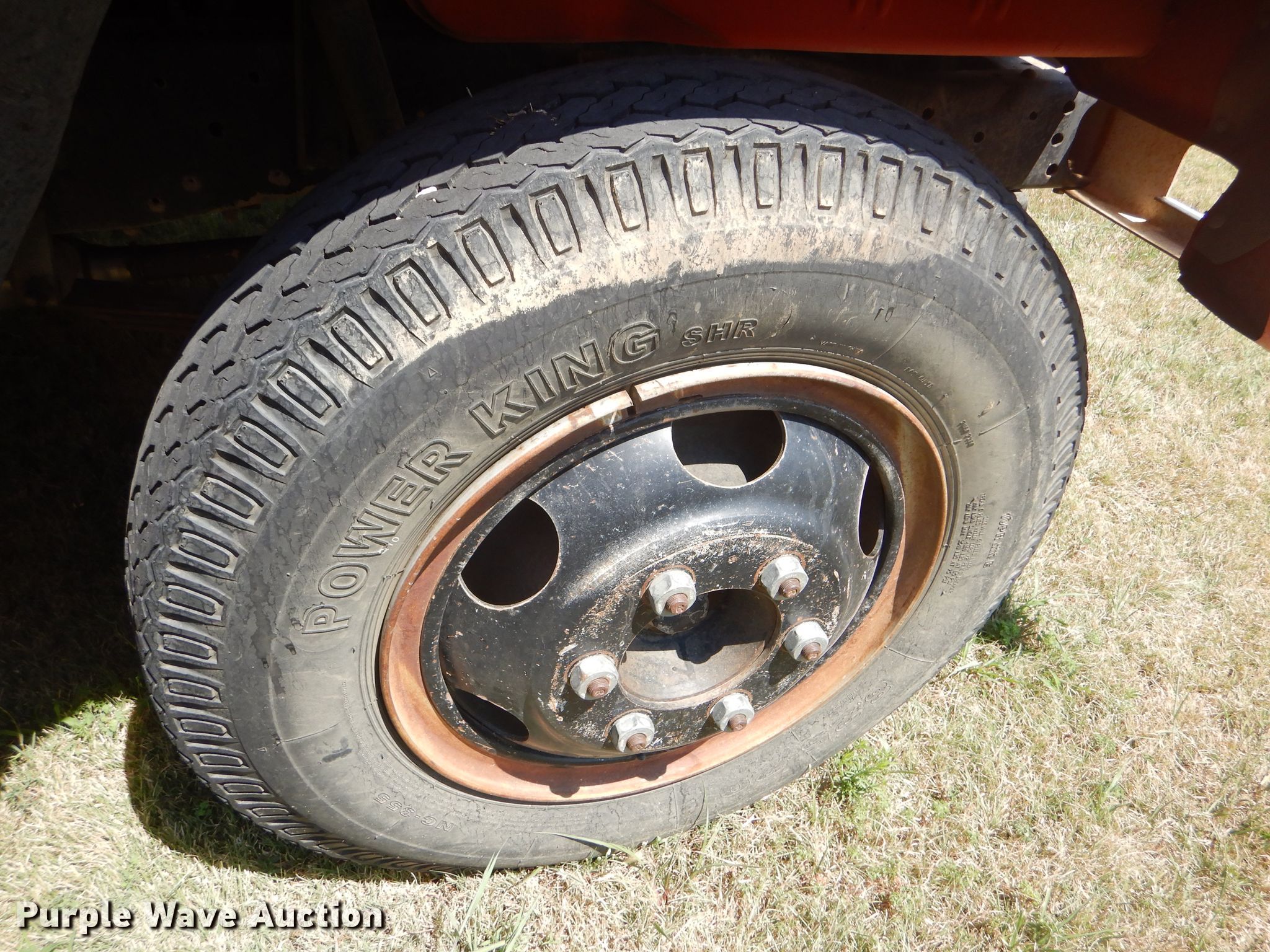 Purple Wave is selling a used Grain Truck in Kansas. This item is a 1975 Dodge D600 grain truck with the following: 43,715 miles on odometer, 318 C.I.D. eight cylinder gas engine, Five speed manual transmission, Two speed rear end, Single axle, Heat, PTO, Parkhurst P14F7T steel grain bed, 14'L x 96"W, 42" side height, 10" side board height, Westfield drill fill auger, Steel flighting, Dual ram hoist, Manual end gate, Spring suspesnion, Hydraulic brakes, 9.00-20 tires, GVWR 24,000 lbs