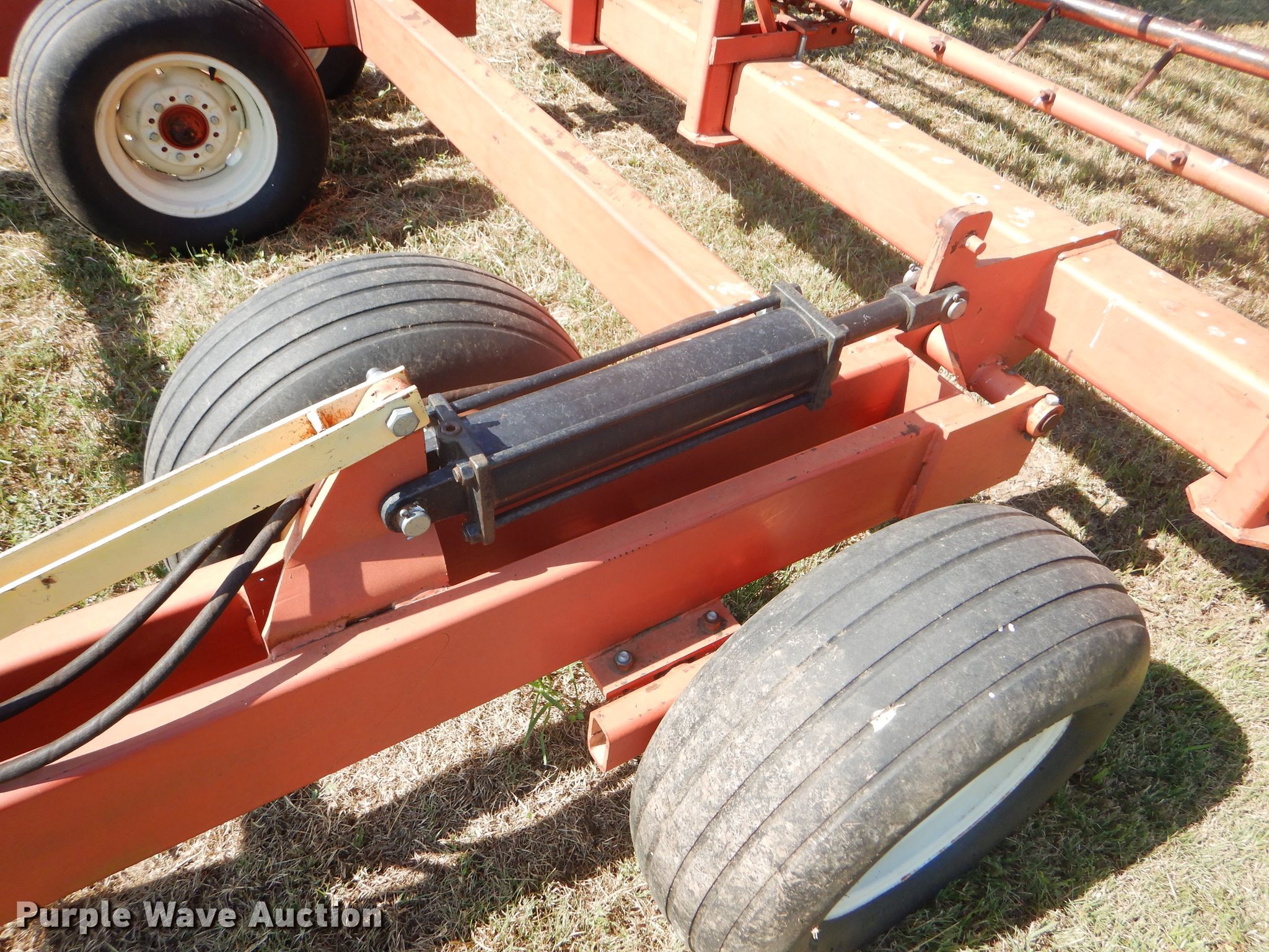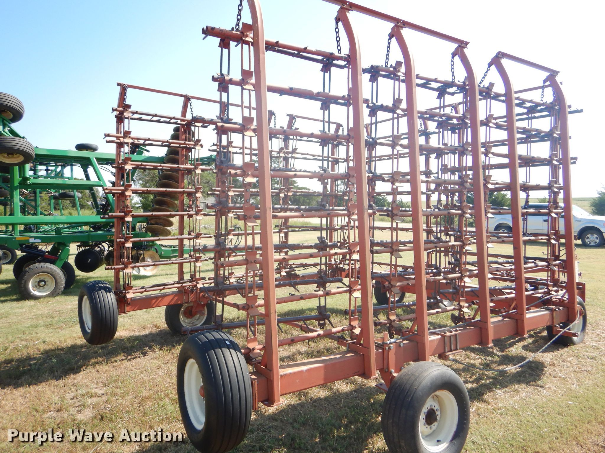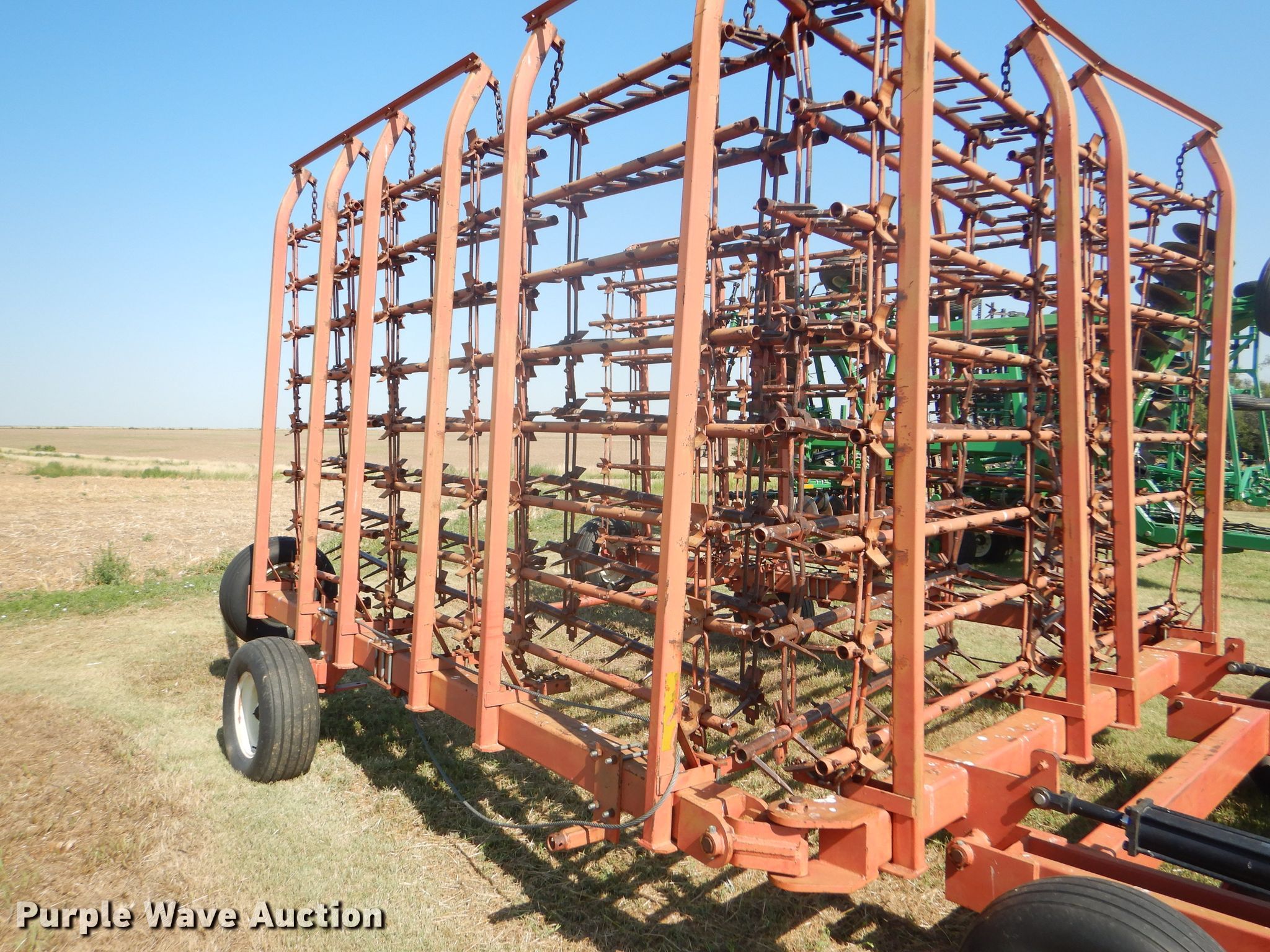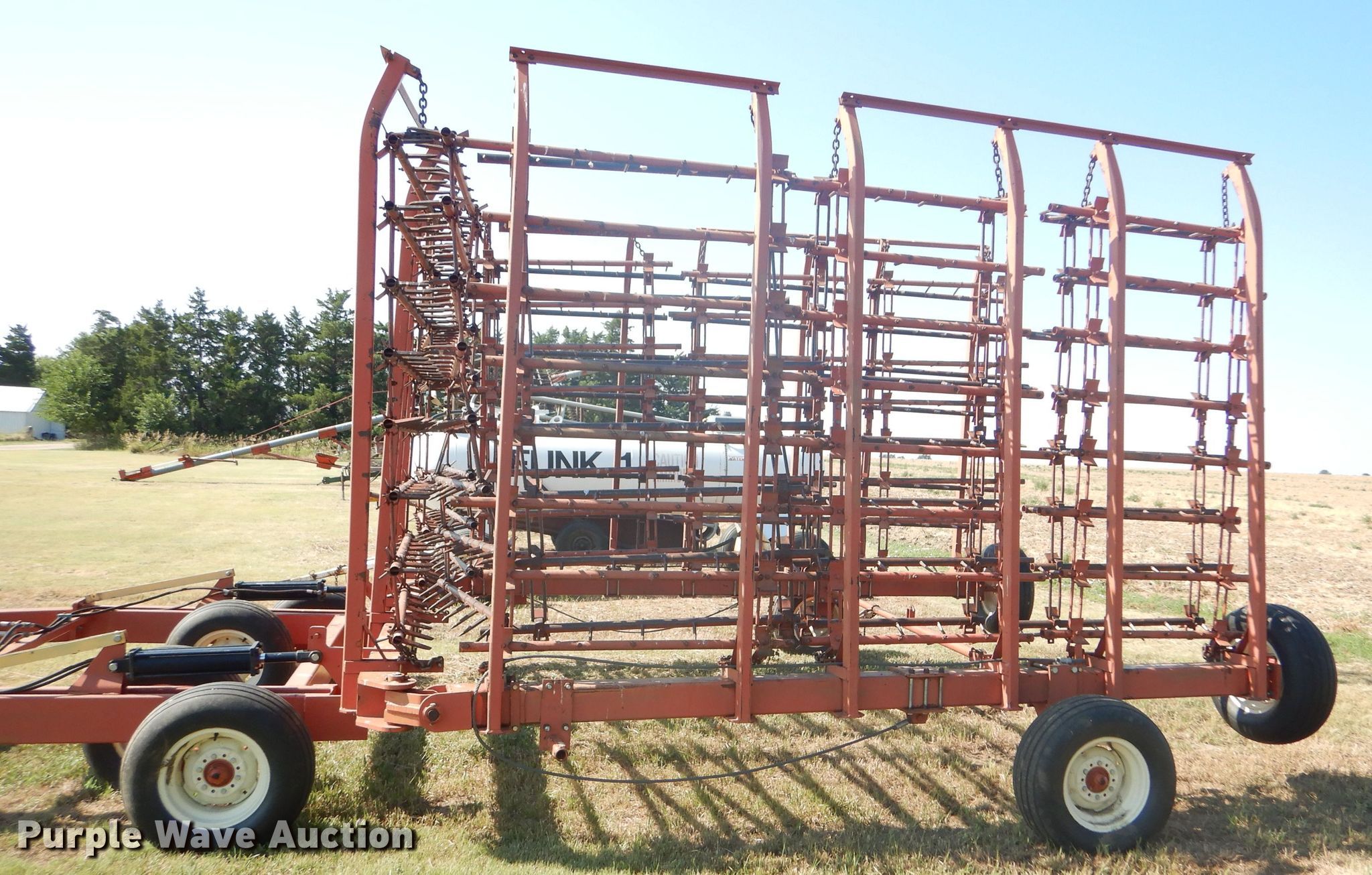 Purple Wave is selling a used Tillage Other in Kansas. This item is a McFarlane drag harrow with the following: 35'W, (16) spike tooth drag bars, Approx. 5" spike teeth, Hydraulic lift, 11L-15 tires