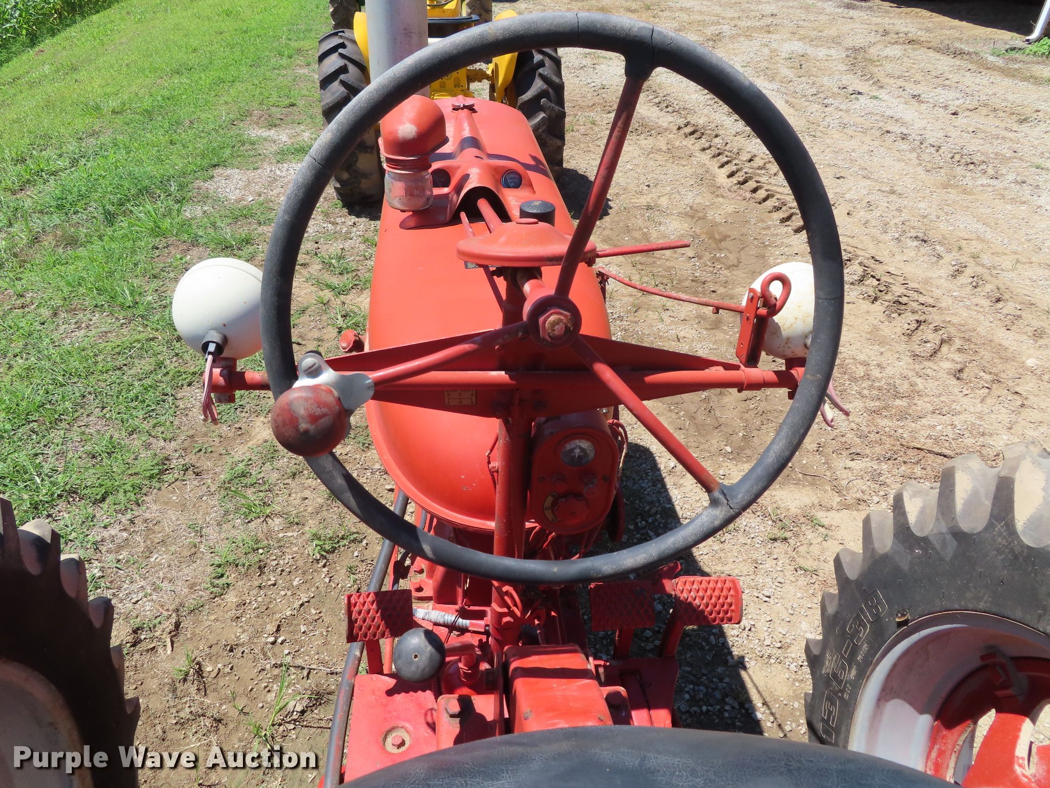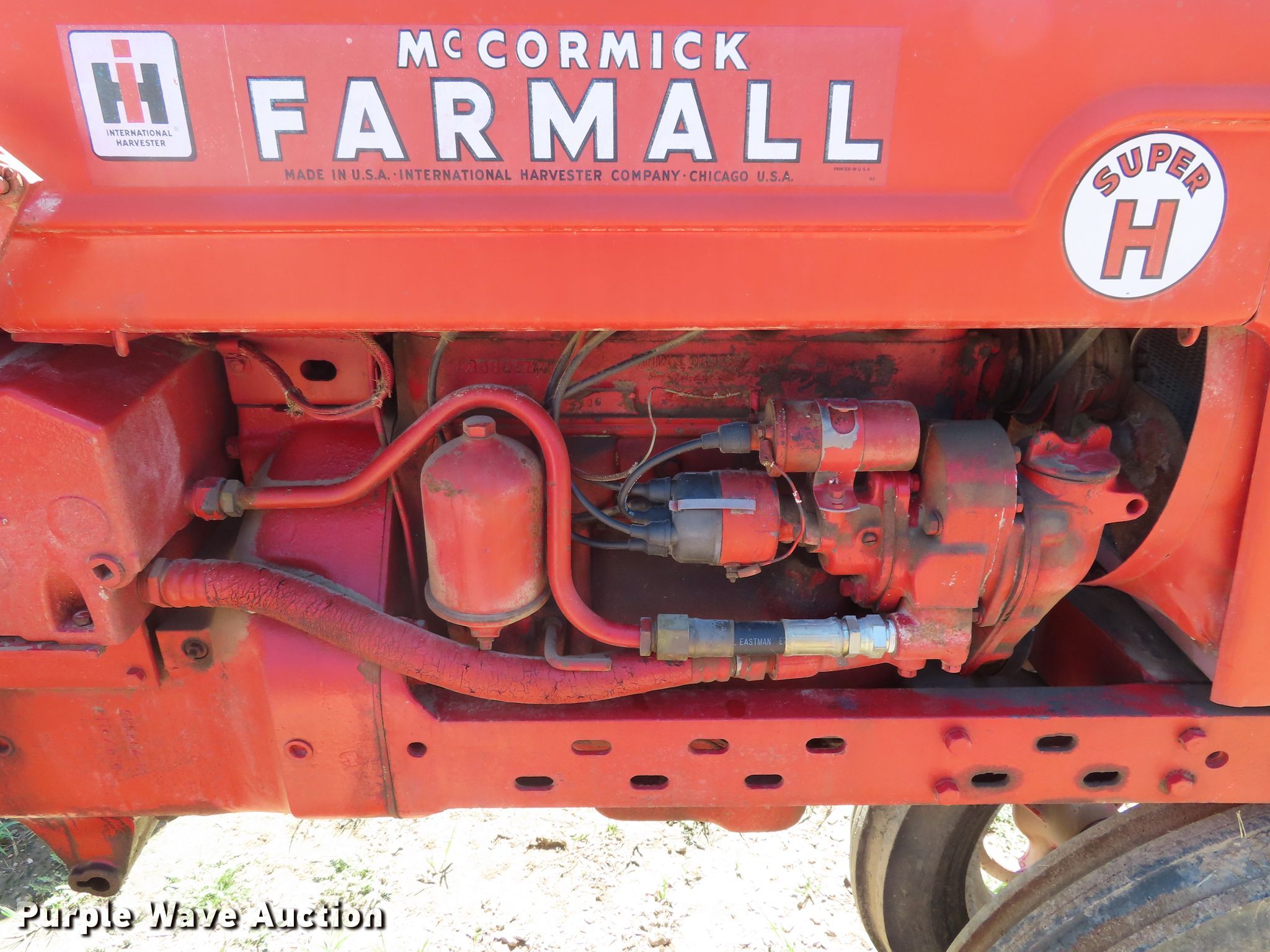 Purple Wave is selling a used Tractor in Missouri. This item is a 1953 International Farmall Super H tractor with the following: International C164 2.7L four cylinder gas engine, Manual transmission, 5F-1R gears, 540 PTO, Rear hydraulic remote set, (2) wheel weights, 5.50-16 front tires, 13.6-38 rear tires, Unknown operating condition, Serial 19681