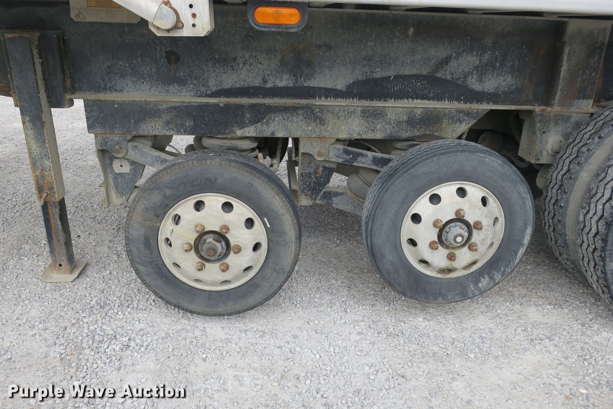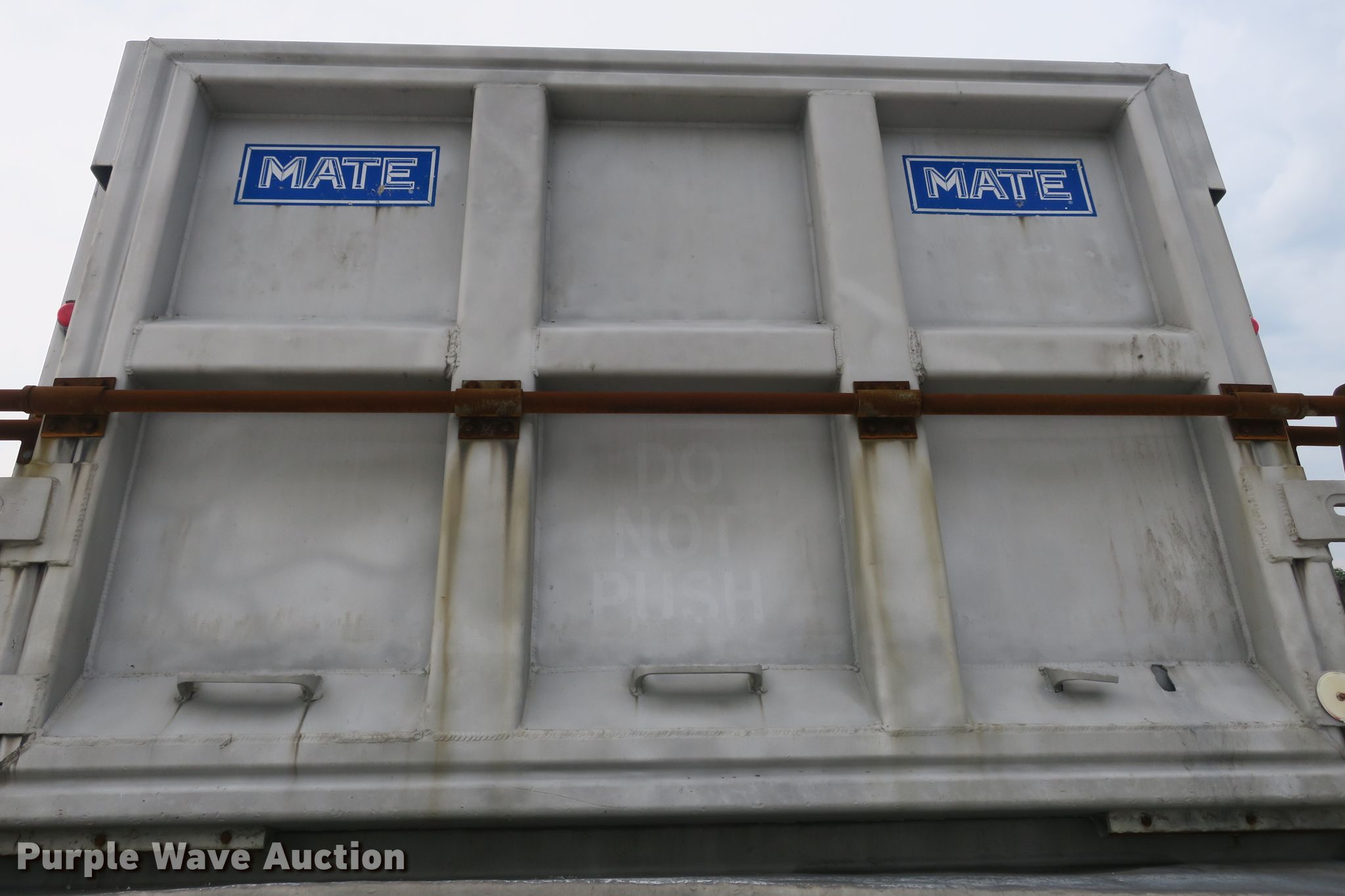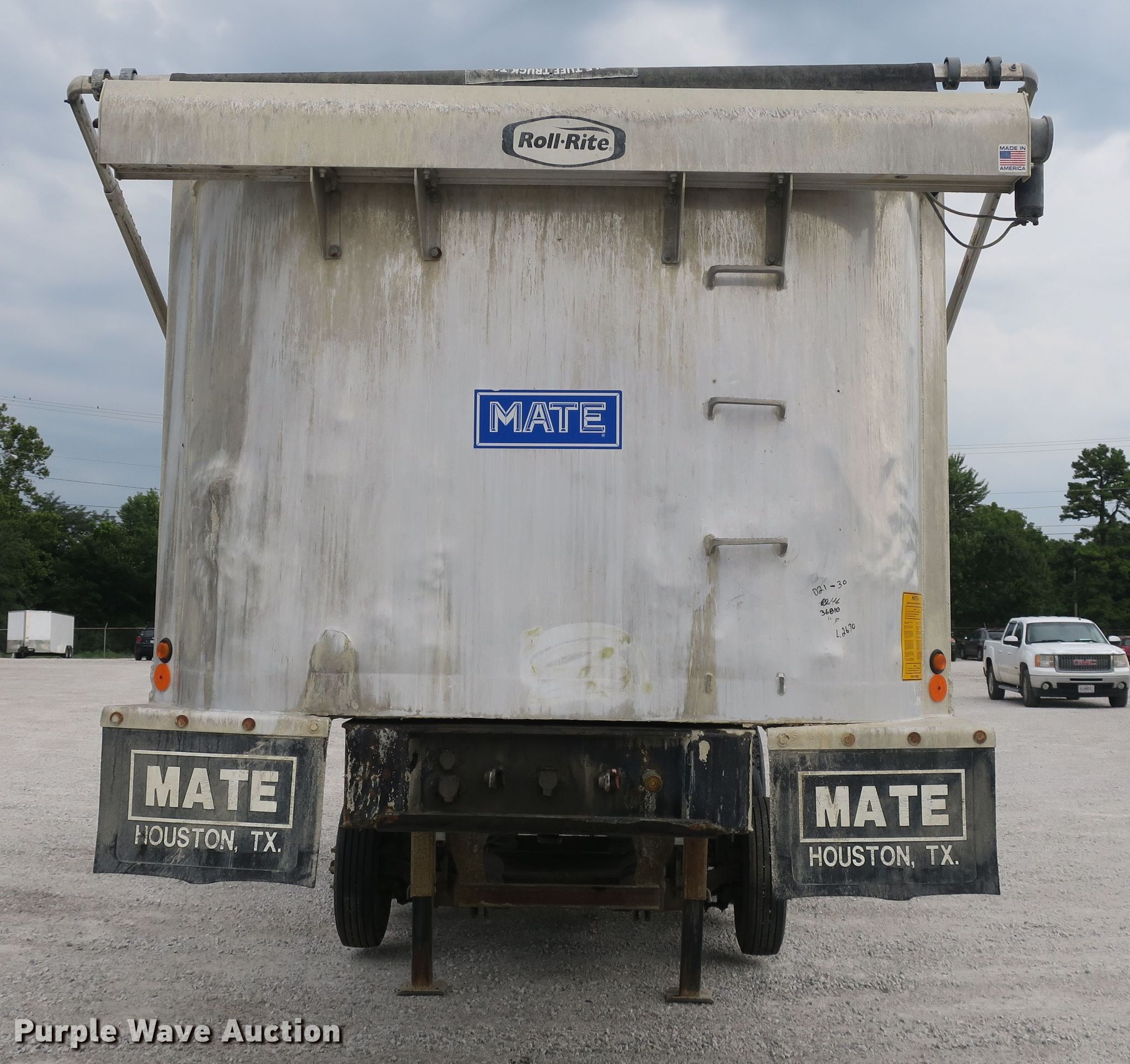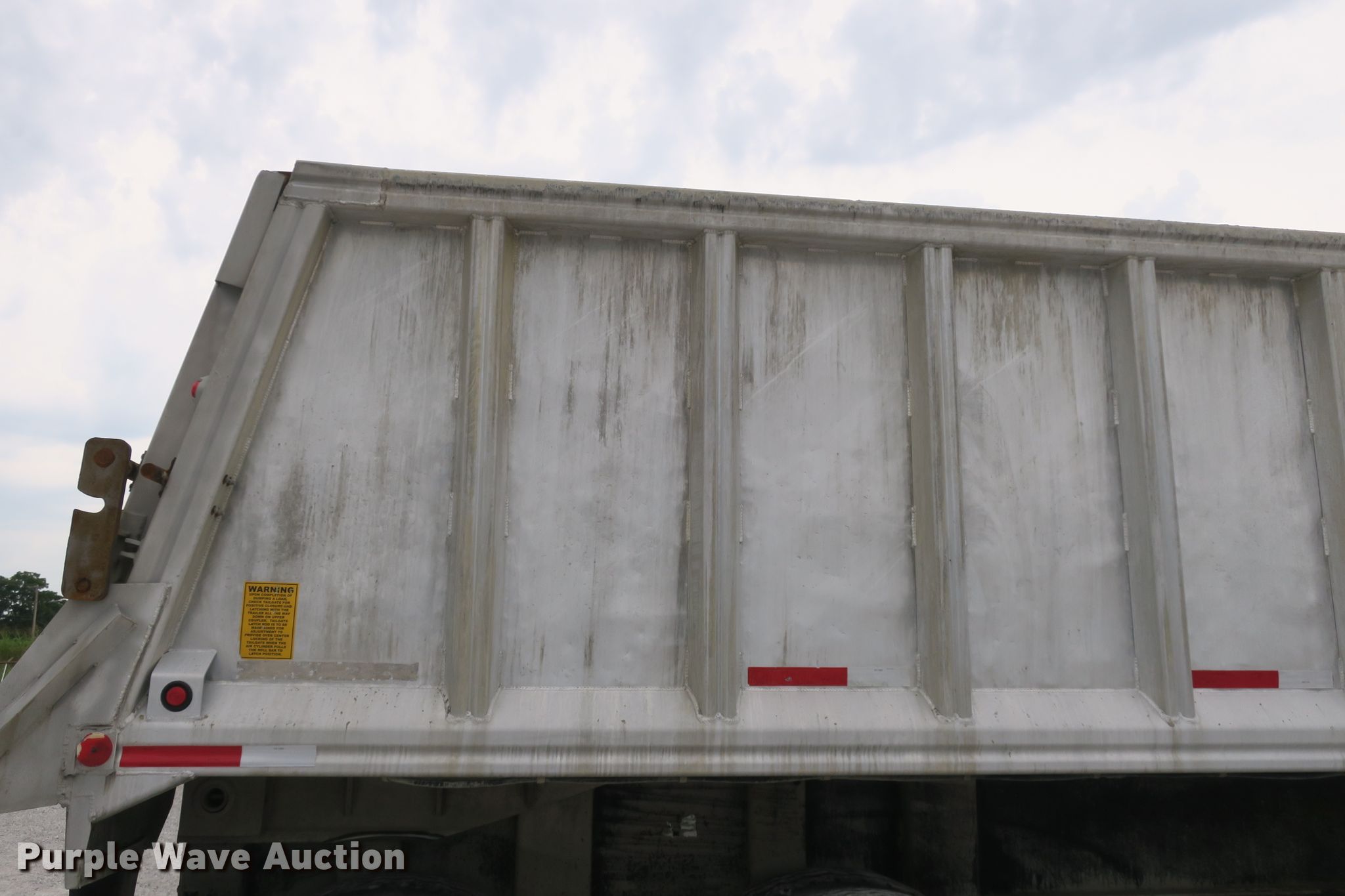 Purple Wave is selling a used End Dump Rock Trailer in Missouri. This item is a 2014 Mate end dump trailer with the following: 26'L x 96"W aluminum dump body, 60" side height, Air operated end gate, Electric roll tarp, Dual leg landing gear, Air suspension, Air brakes, Quad axle, Pusher axles, Steel wheels, 215/75R17.5 tires