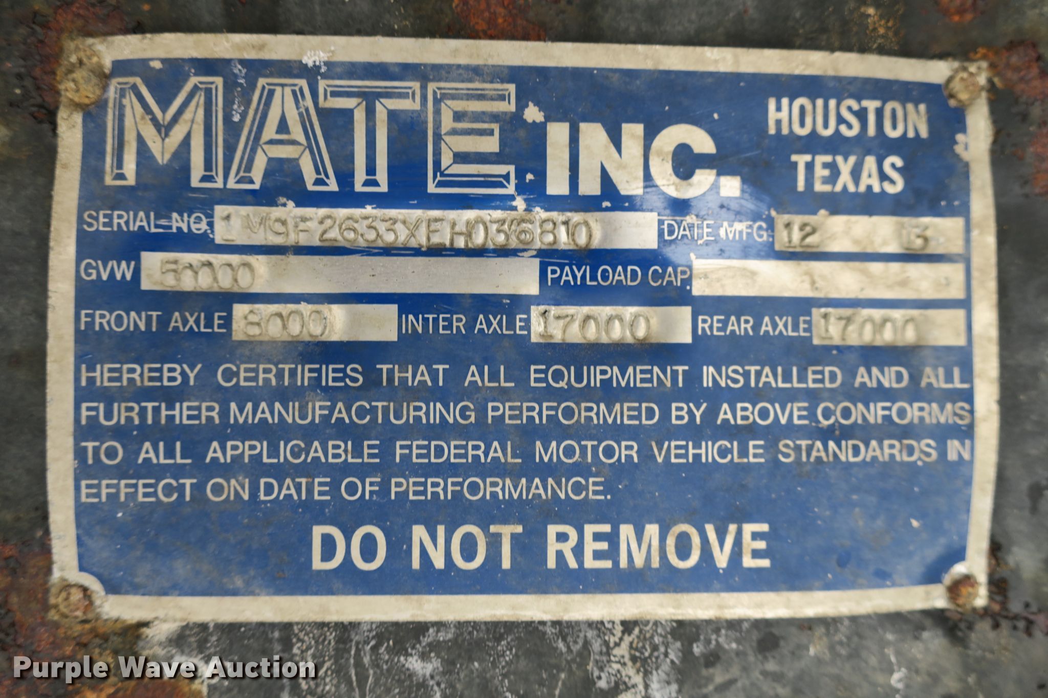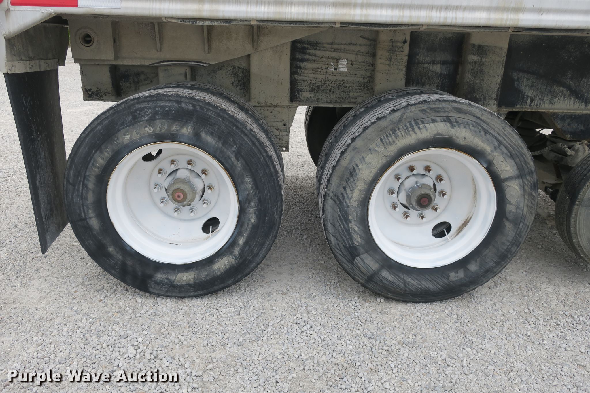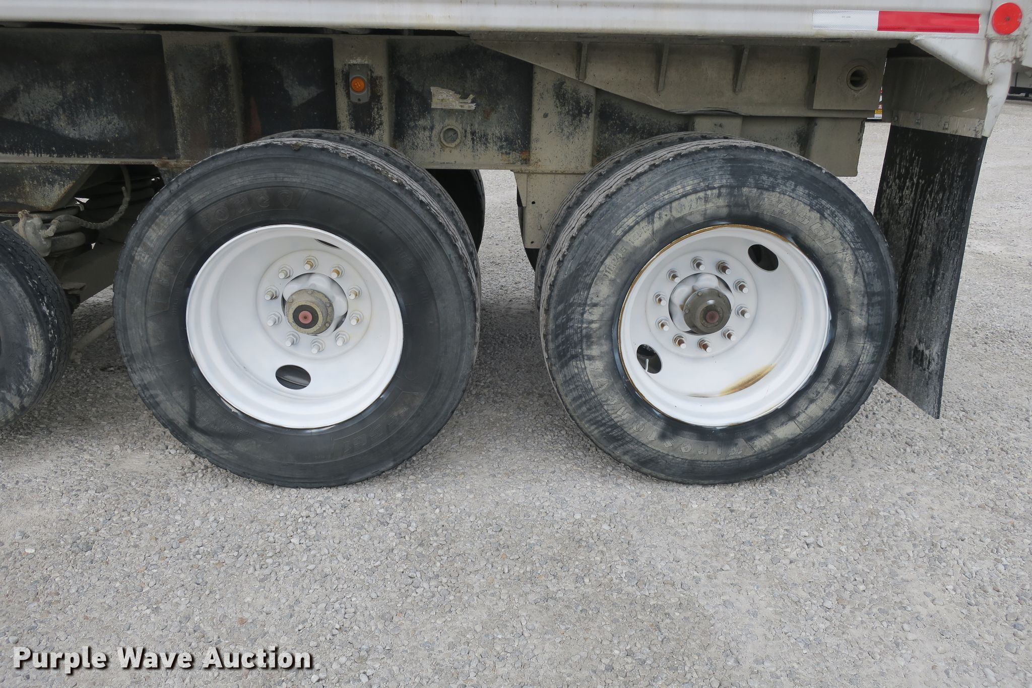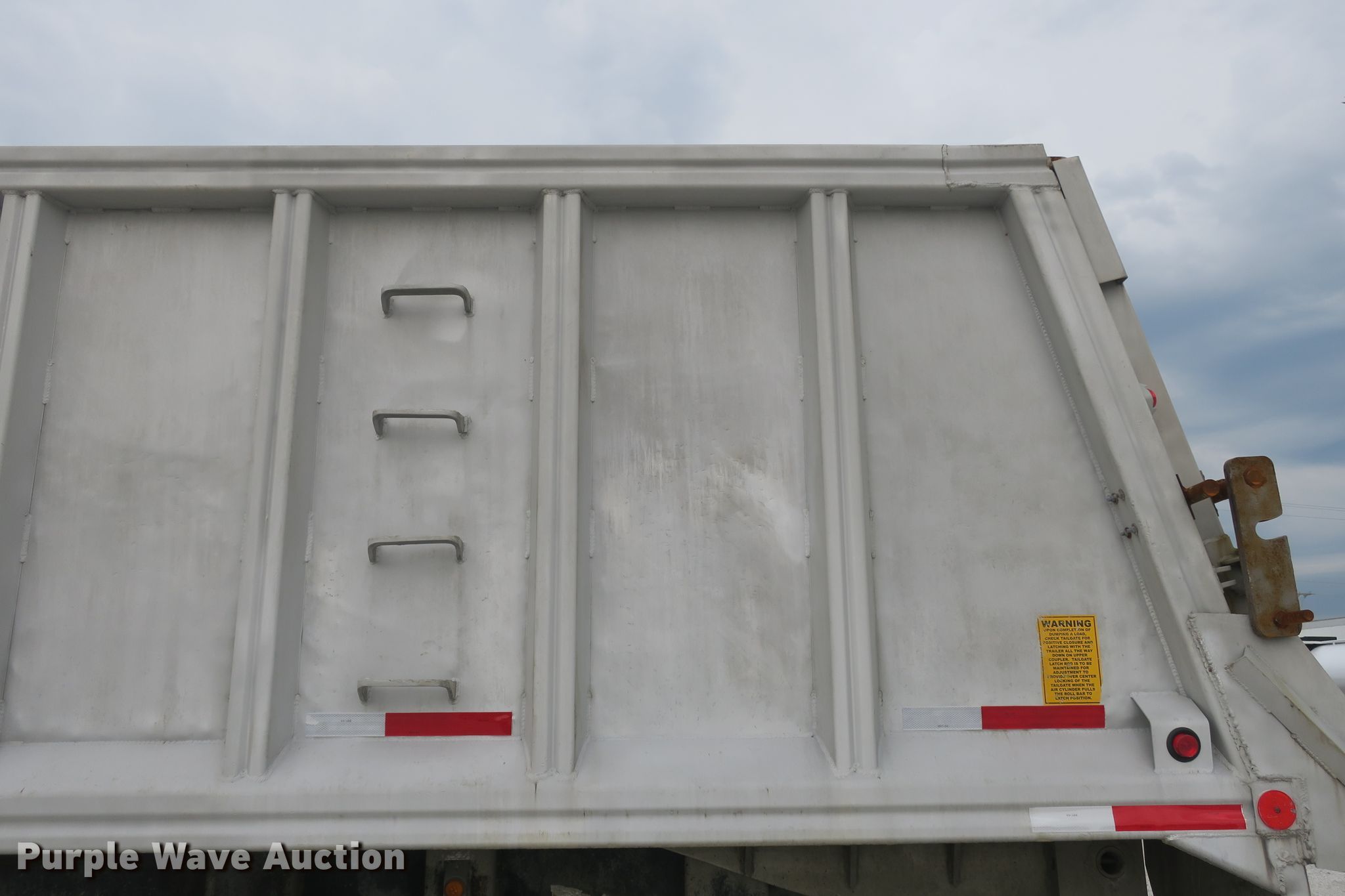 Purple Wave is selling a used End Dump Rock Trailer in Missouri. This item is a 2014 Mate end dump trailer with the following: 26'L x 96"W aluminum dump body, 60" side height, Air operated end gate, Electric roll tarp, Dual leg landing gear, Air suspension, Air brakes, Quad axle, Pusher axles, Steel wheels, 215/75R17.5 tires
