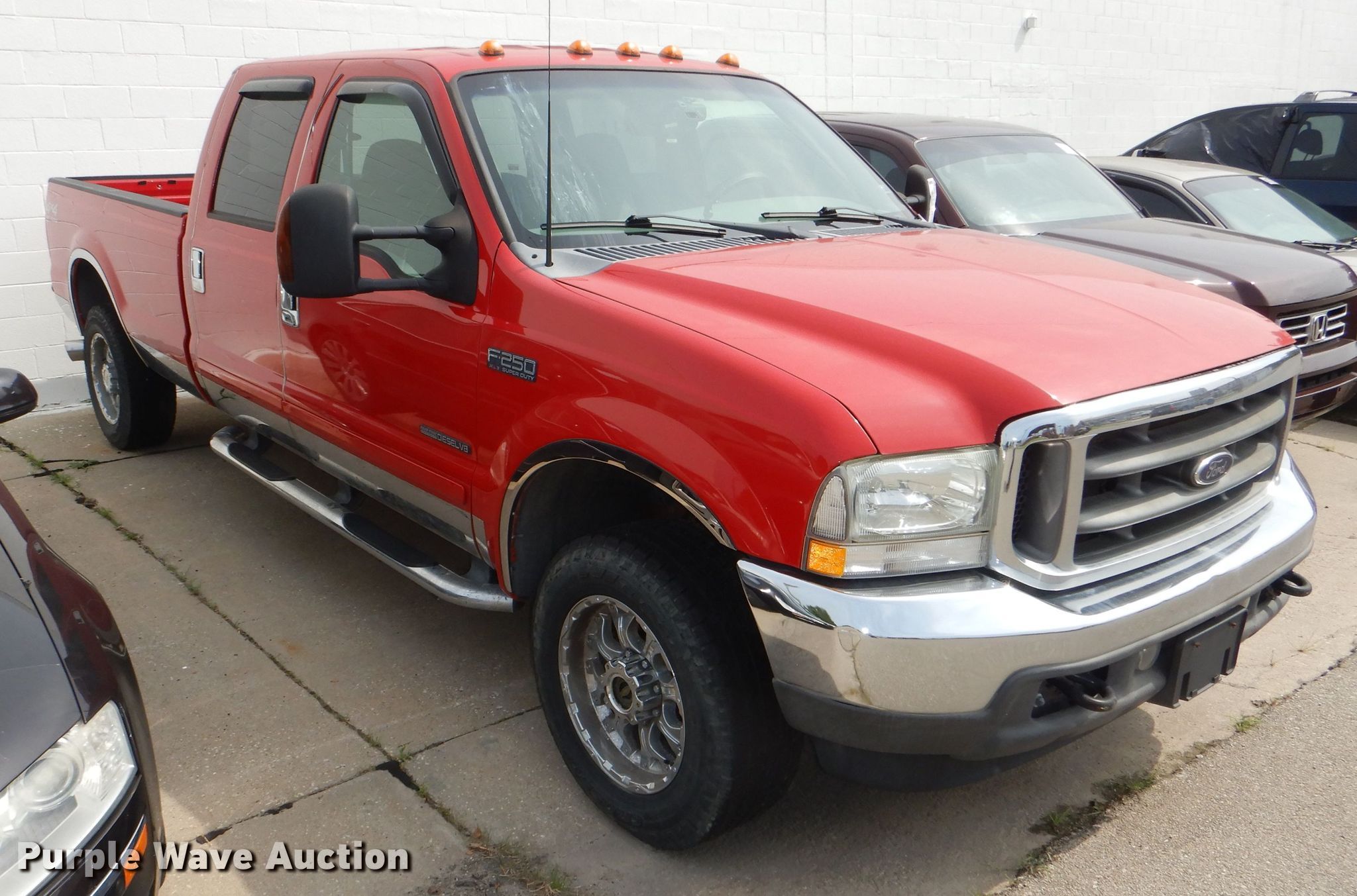 Purple Wave is selling a used 3/4 or 1 Ton Pickup or Van in Kansas. This item is a 2002 Ford F250 Super Duty Crew Cab pickup truck with the following: 159,179 miles on odometer, 7.3L V8 OHV 16V diesel engine, Automatic transmission, Four wheel drive, AC and heat, Cruise, Power windows, locks, and seat, Heated mirrors, Fifth wheel plate, 275/65R18 tires, Dead battery