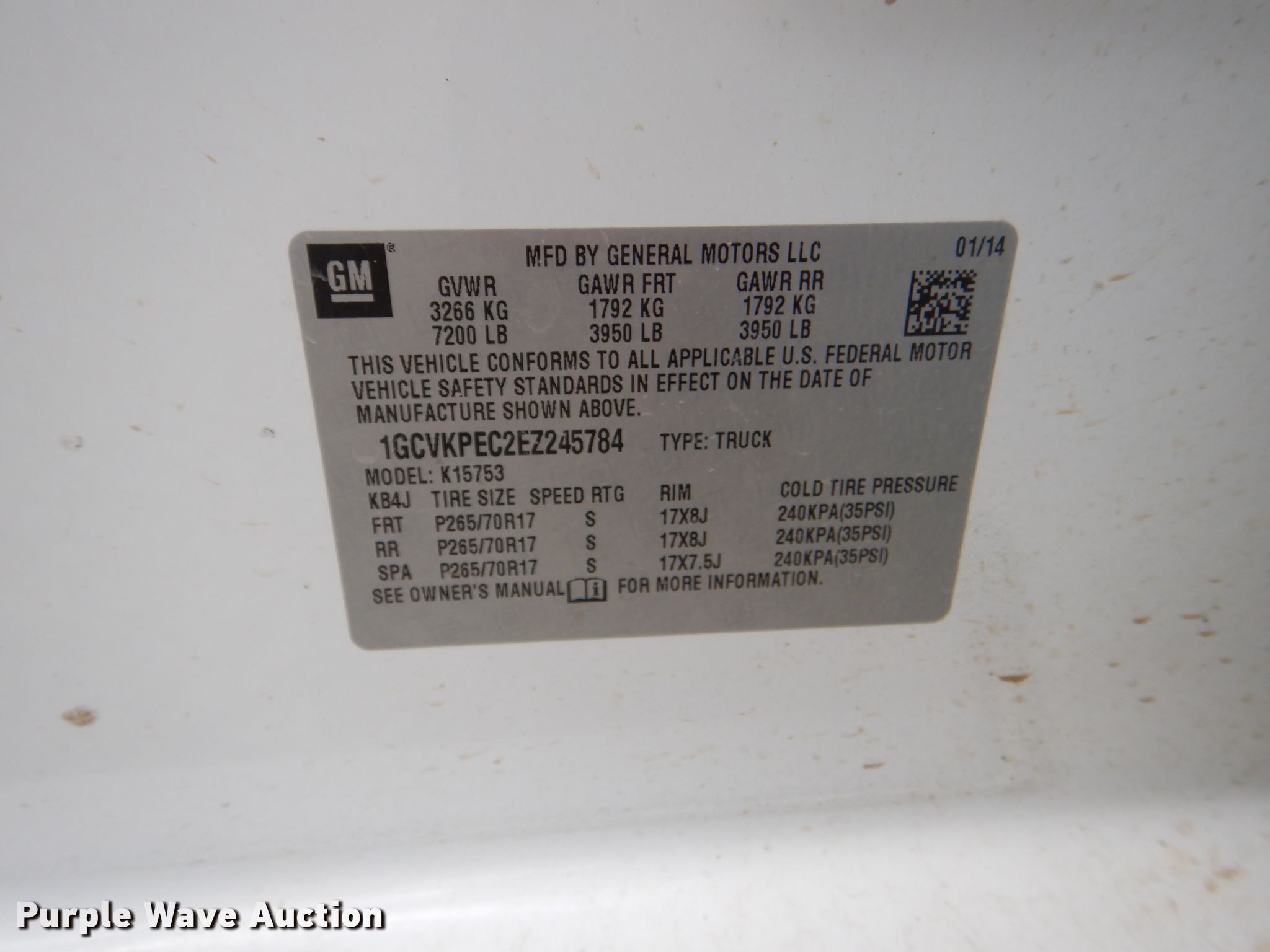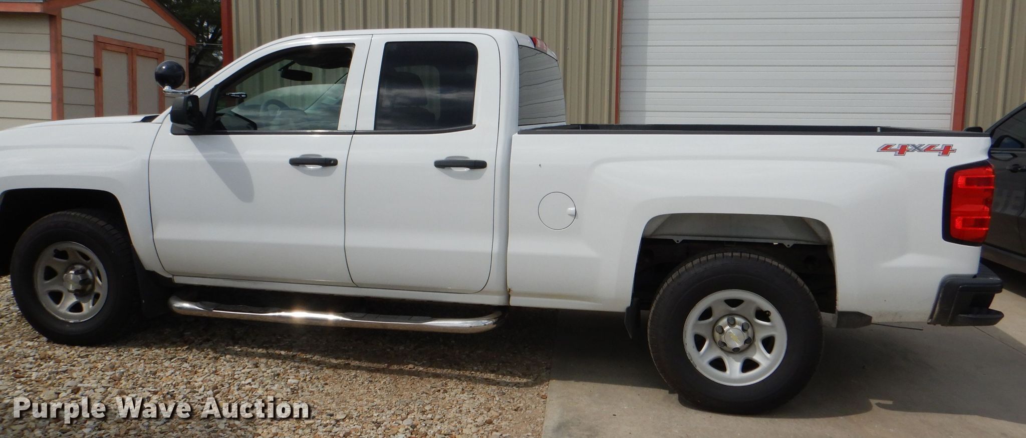 Purple Wave is selling a used 1/2 Ton Pickup or Van in Kansas. This item is a 2014 Chevrolet Silverado 1500 Double Cab pickup truck with the following: 100,127 miles on odometer, 5.3L V8 OHV 16V gas engine, Automatic transmission, Four wheel drive, AC and heat, Power windows and locks, Heated mirrors, 265/70R17 tires, No center console