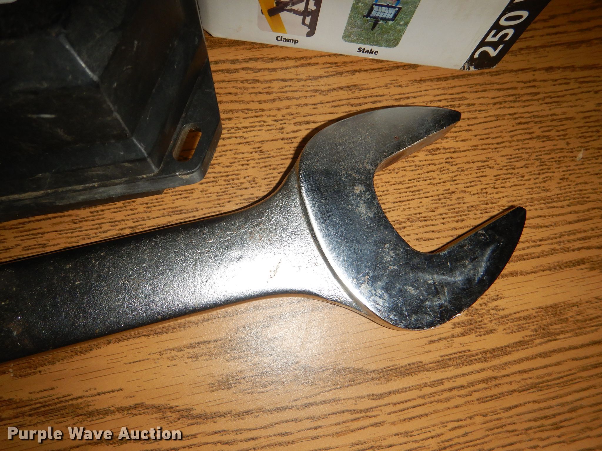 Purple Wave is selling a used Tools in Kansas. This item is a Tools with the following: 2 5/16" wrench, Post hole auger, Master spotlight, 250 watt, DeWalt reciprocating saw