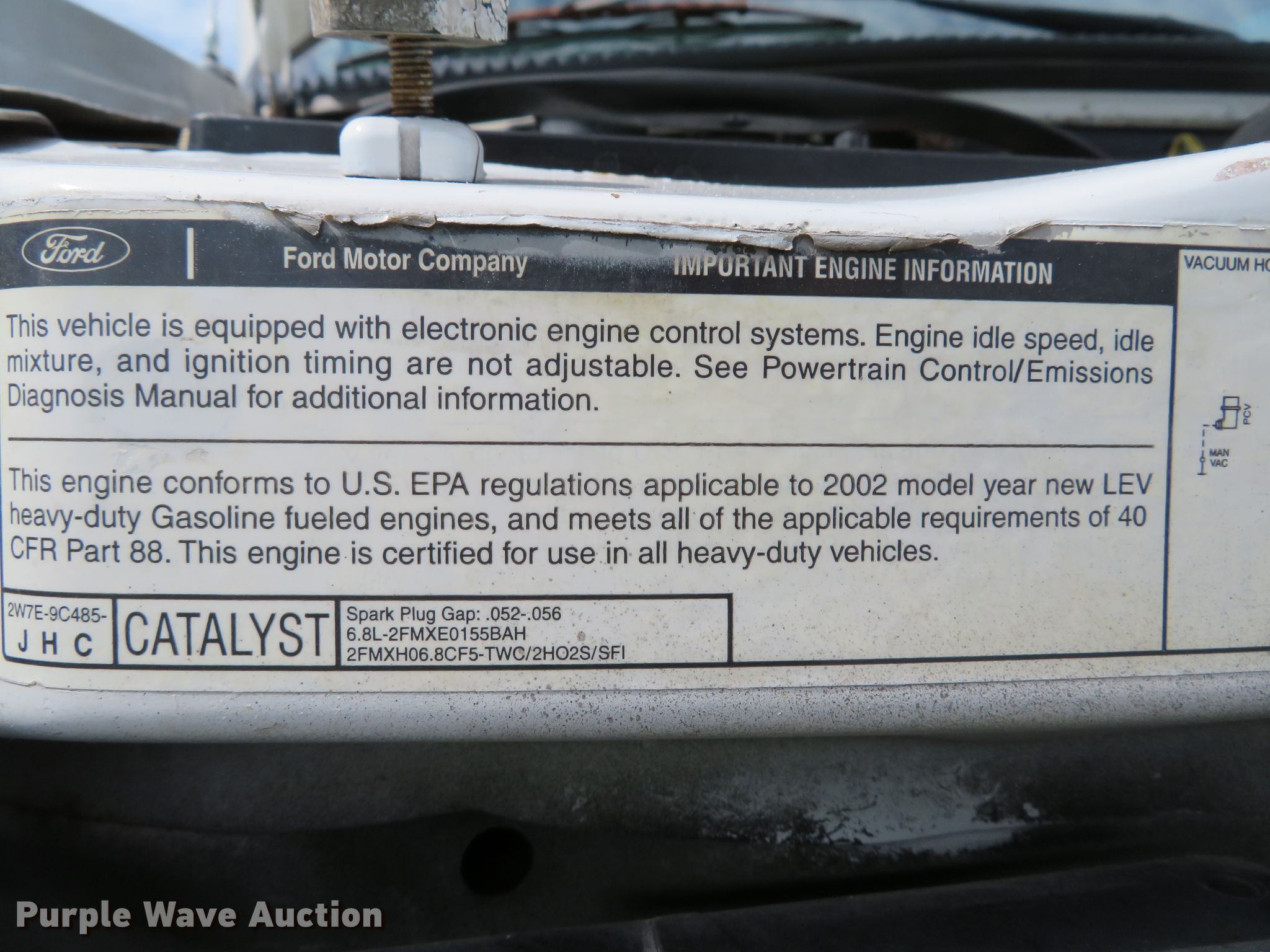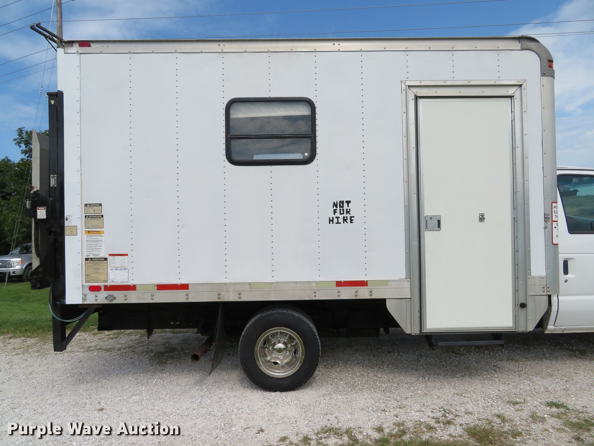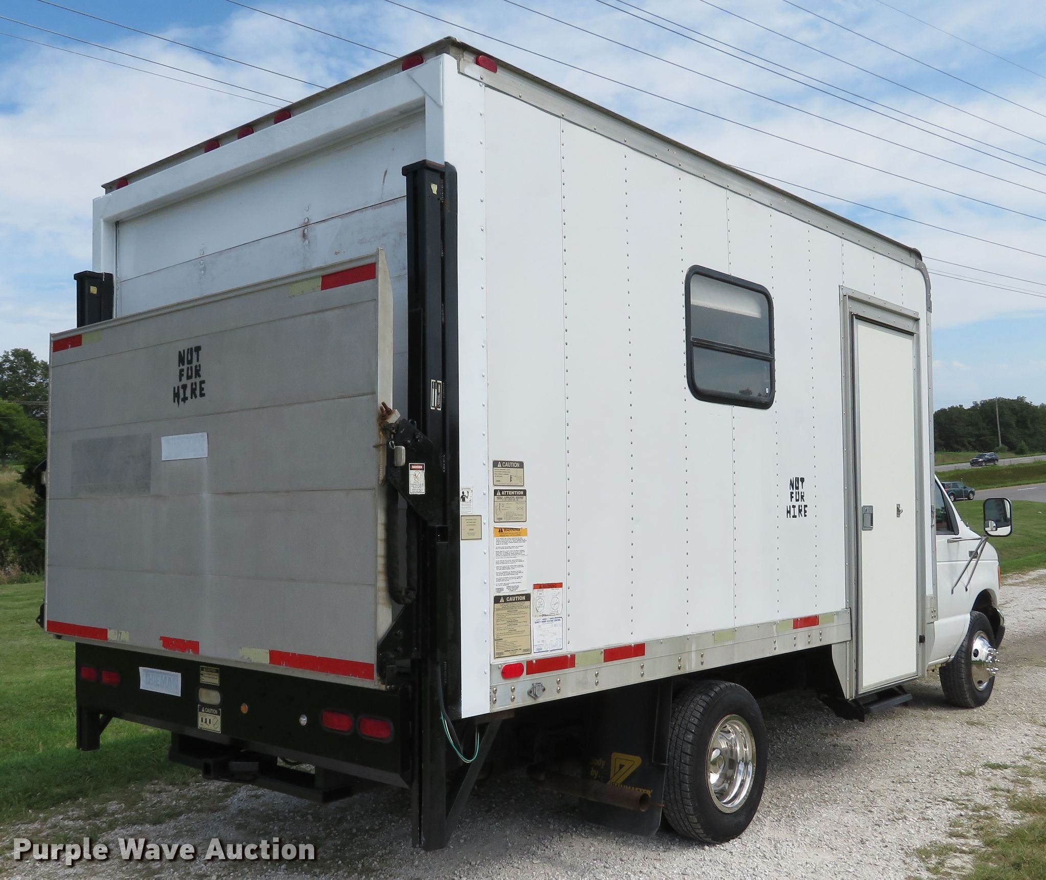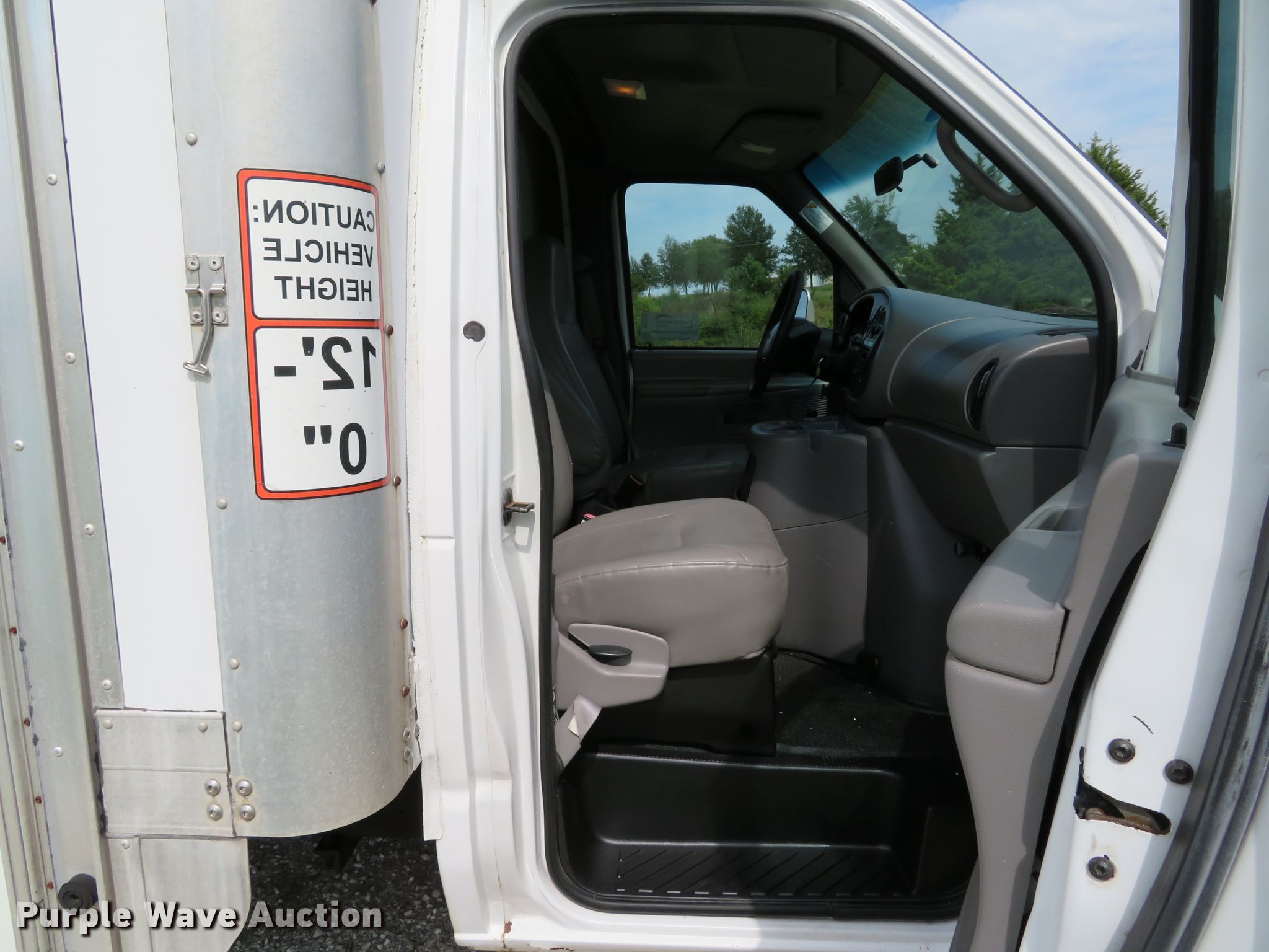 Purple Wave is selling a used Box Truck in Missouri. This item is a 2002 Ford Econoline E350 Super Duty box truck with the following: 209,834 miles on odometer, 6.8L V10 SOHC 20V gas engine, Automatic transmission, Single axle, AC and heat, Utilimaster box bed, 14'L x 95"W x 88"H, Wood floor, Thieman TVLR16A end gate lift, 1,600 lbs capacity,, 158" wheelbase, Spring suspension, Hydraulic brakes, LT225/75R16 tires, GVWR 11,500 lbs, Non-operational passenger side exterior door handle
