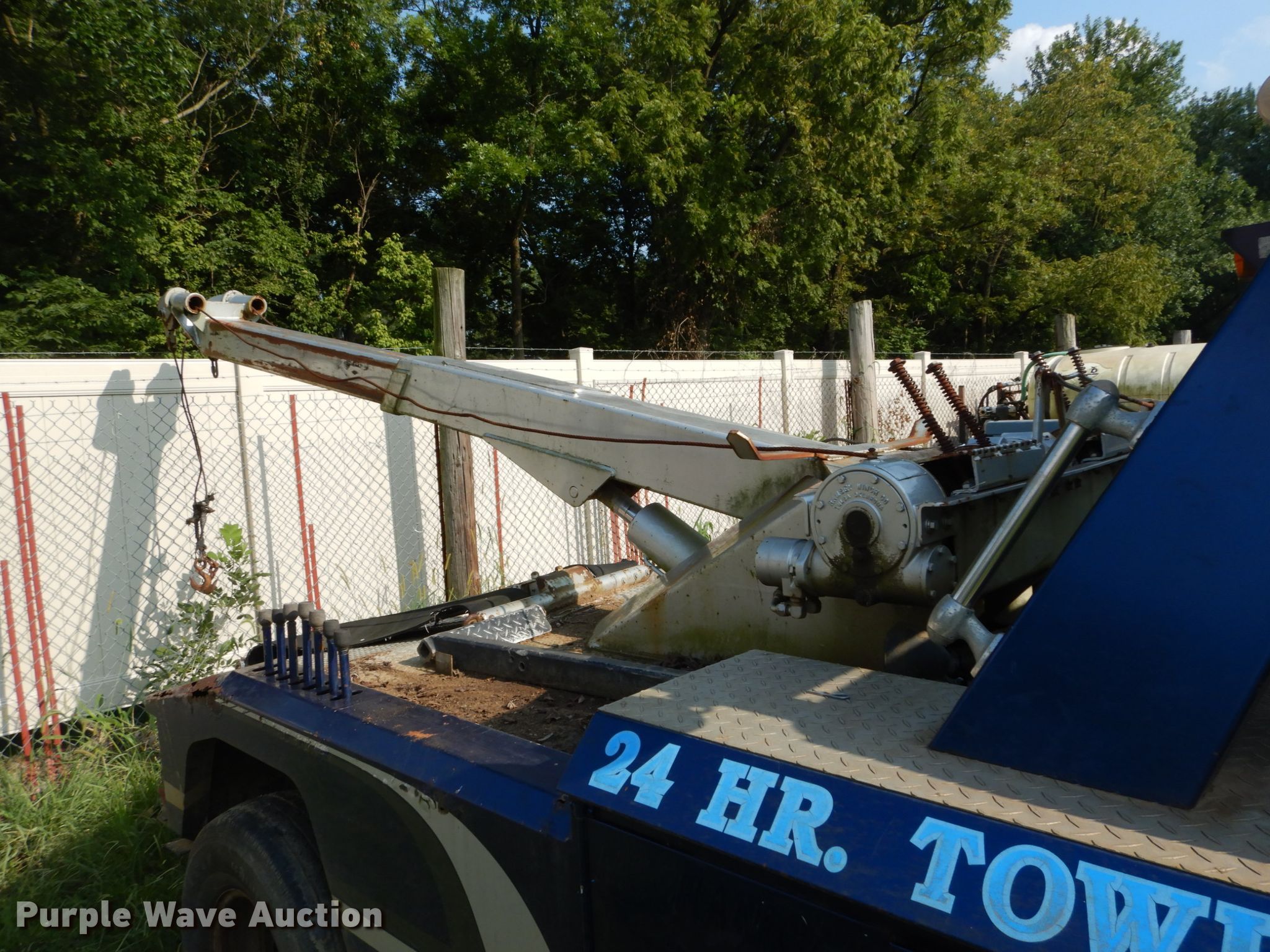 Purple Wave is selling a used Rollback or Tow Truck in Illinois. This item is a 1995 Ford F450 Super Duty tow truck with the following: 270,042 miles on odometer, 7.3L V8 OHV 16V diesel engine, Five speed manual transmission, Single axle, AC and heat, Power windows and locks, 10'L x 7'W wrecker bed, Hydraulic extendable wrecker boom, Winch, Underlift, Spring suspension, Hydraulic brakes, LT235/85R15 tires, GVWR 15,000 lbs, Non-operational unit, Unknown operating condition of AC, Non-operational power windows and locks, Drivers side wing window broken