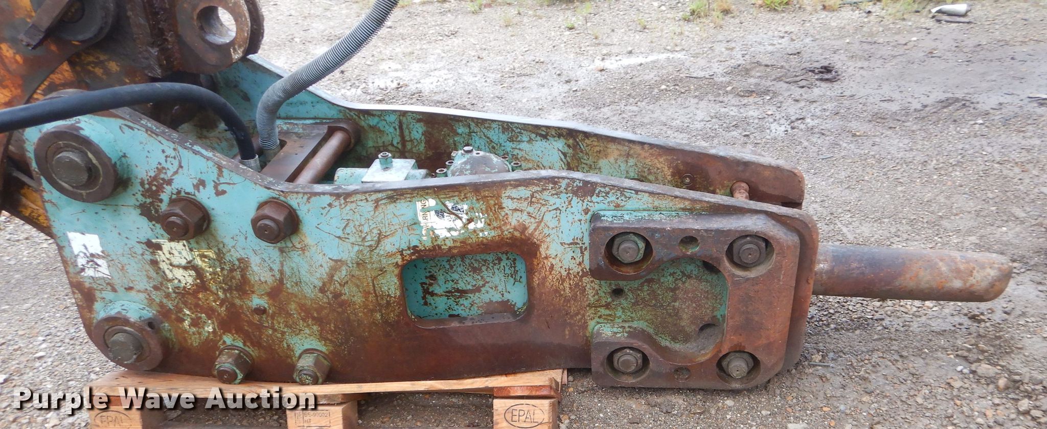 Purple Wave is selling a used Breaker or Hammer in Oklahoma. This item is a Kent KHB-20G breaker with the following: 5" hammer, Nitrogen filled, 20" pin connection, 18" inside width