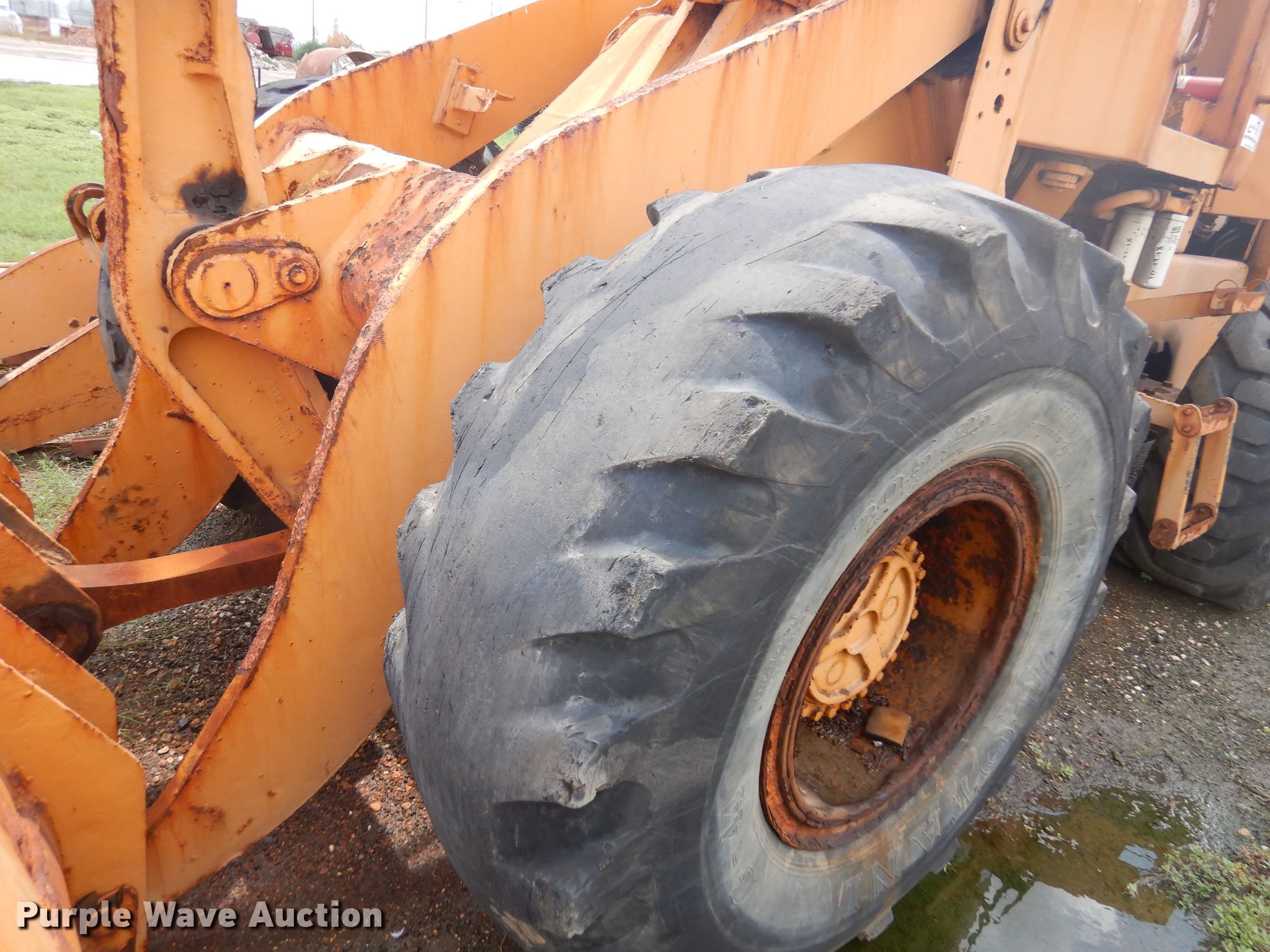Purple Wave is selling a used Wheel Loader in Texas. This item is a 1990 Case 721 wheel loader with the following: Case six cylinder diesel engine, Powershift transmission, 4F-4R gears, OROPS, Joystick bucket controls, 91"W general purpose bucket, Bolt-on cutting edge, Manual quick coupler, Auxiliary hydraulics, 20.5-25 tires, Non-operational front auxiliary hydraulics, Front axle issues, Unknown operating condition, Serial JAK0022293