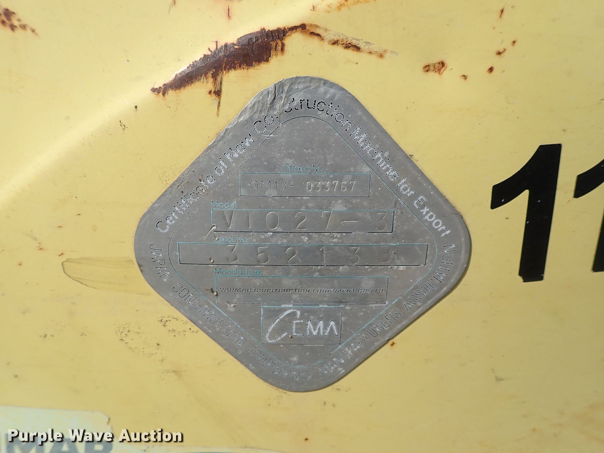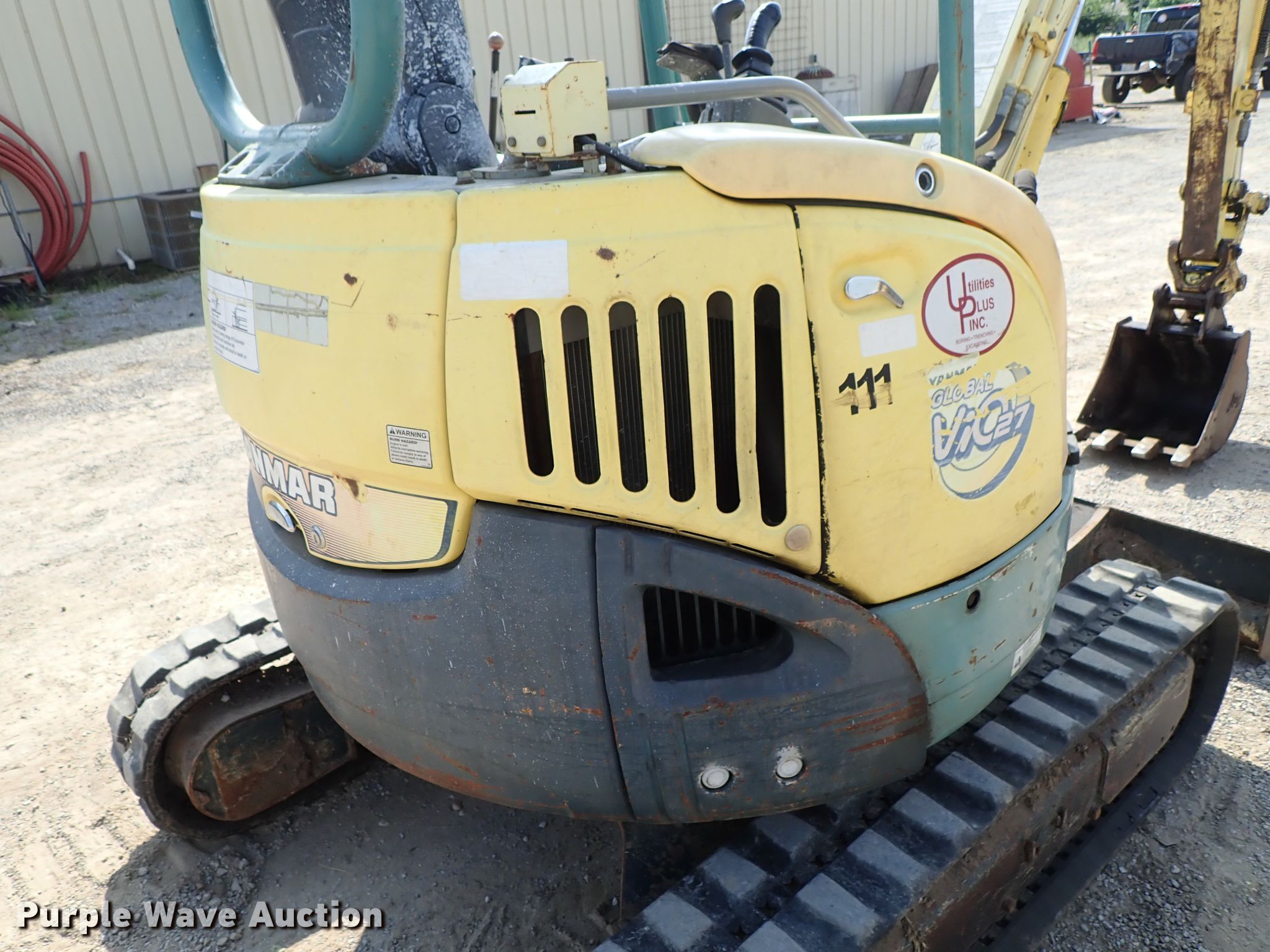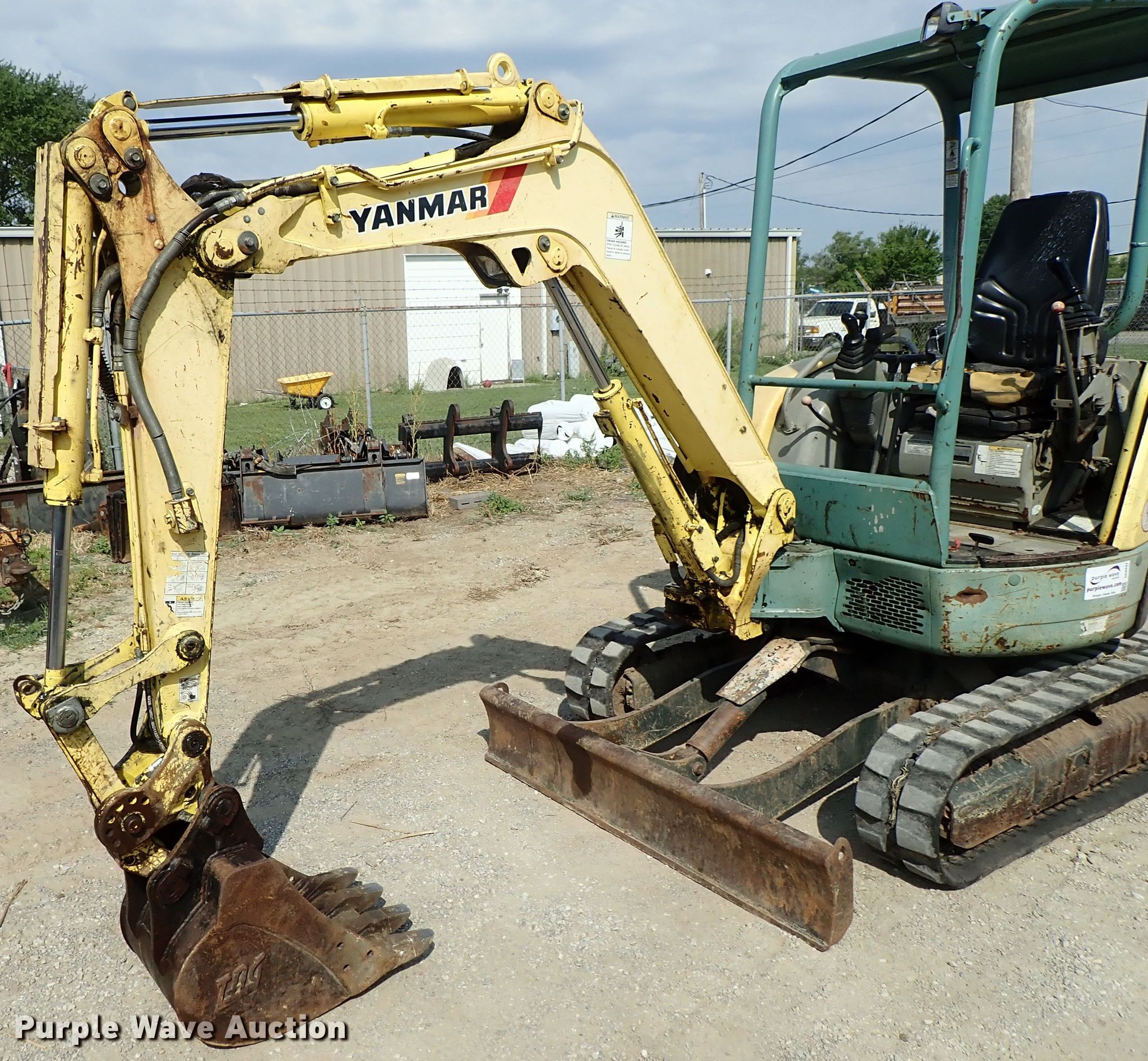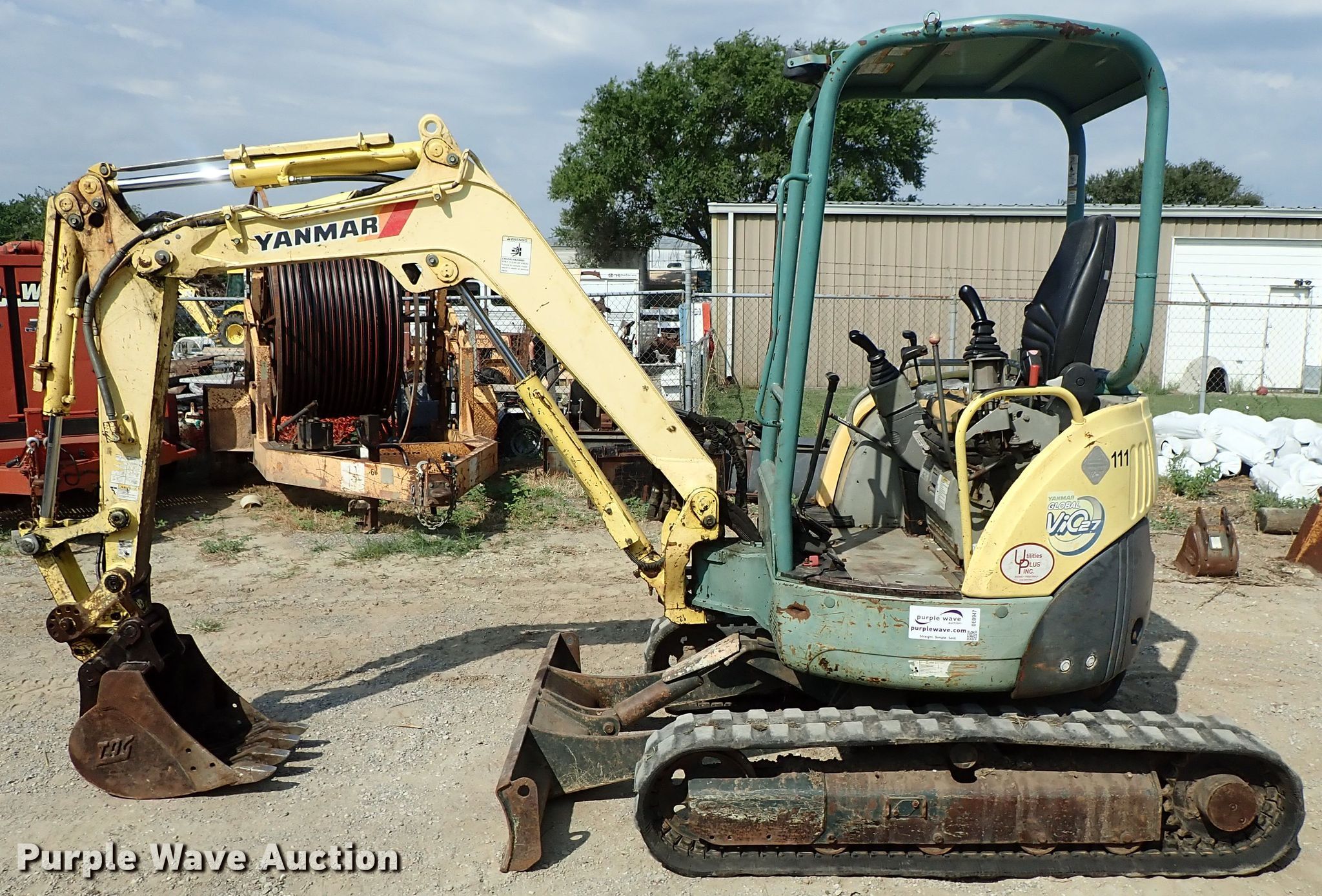 Purple Wave is selling a used Mini Excavator in Kansas. This item is a 2007 Yanmar VIO27-3 excavator with the following: 6,924 hours on meter, Diesel engine, Hydrostatic transmission, OROPS, 5'W backfill blade, Standard boom, Tag 17"W bucket, Weld-on cutting edge, (4) teeth, Auxiliary hydraulics, 10"W rubber tracks, Bucket cylinder bleeds, Serial 35213B
