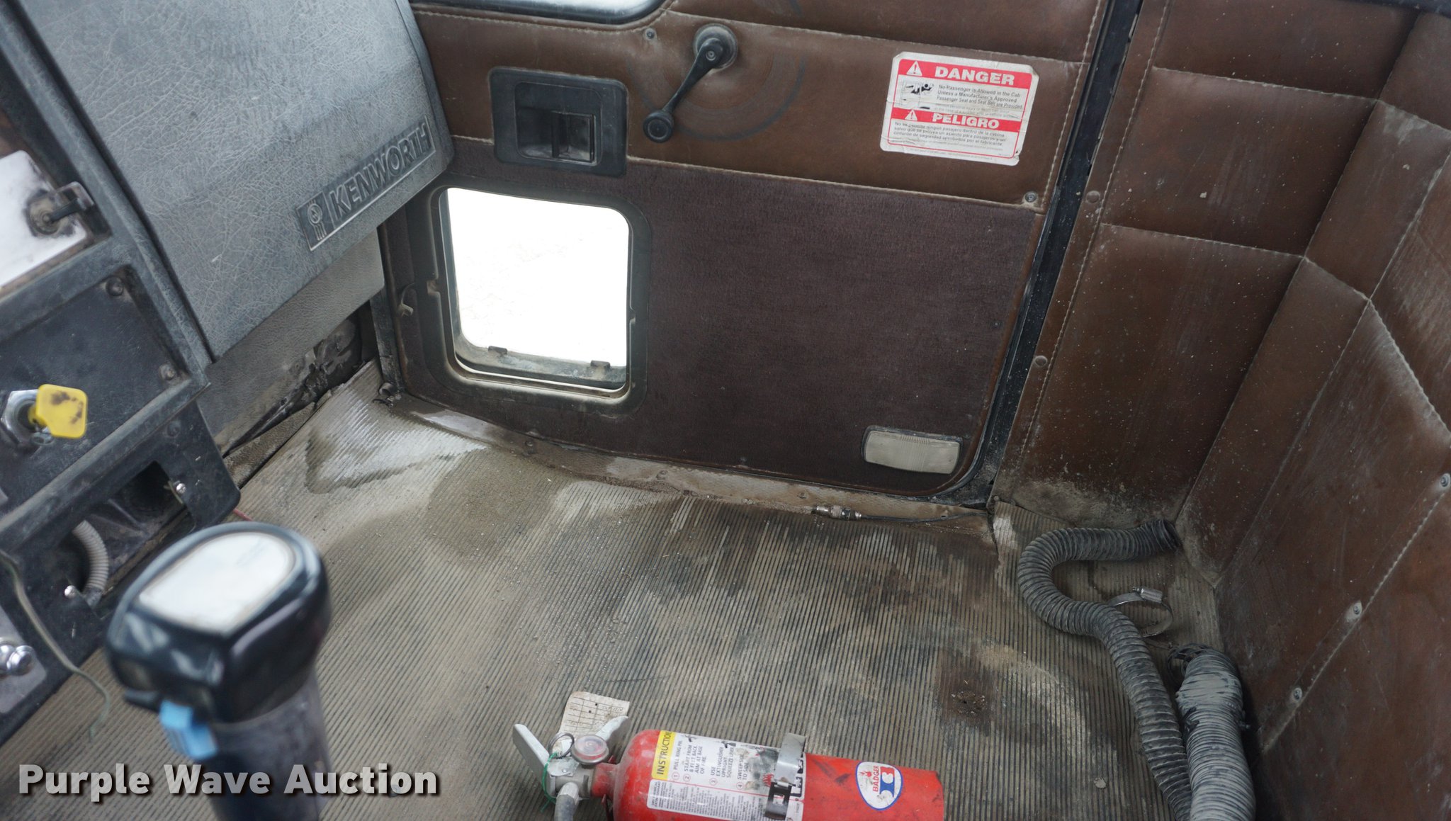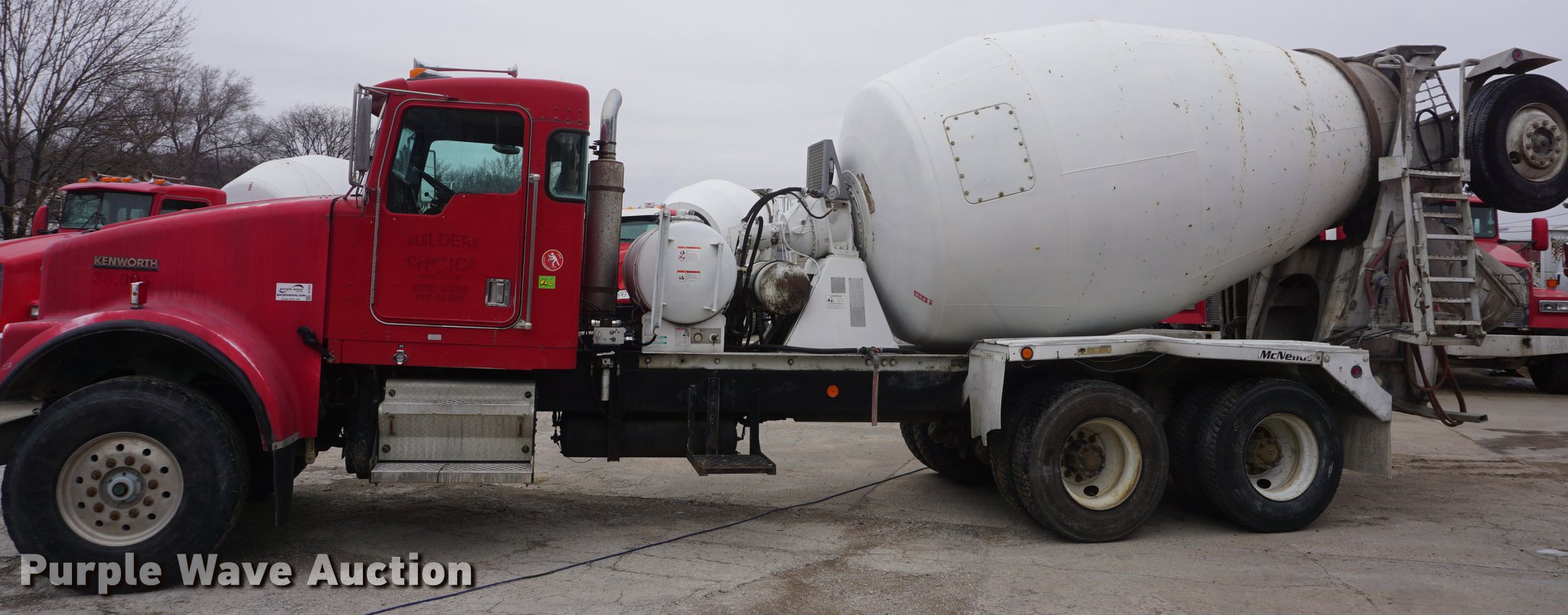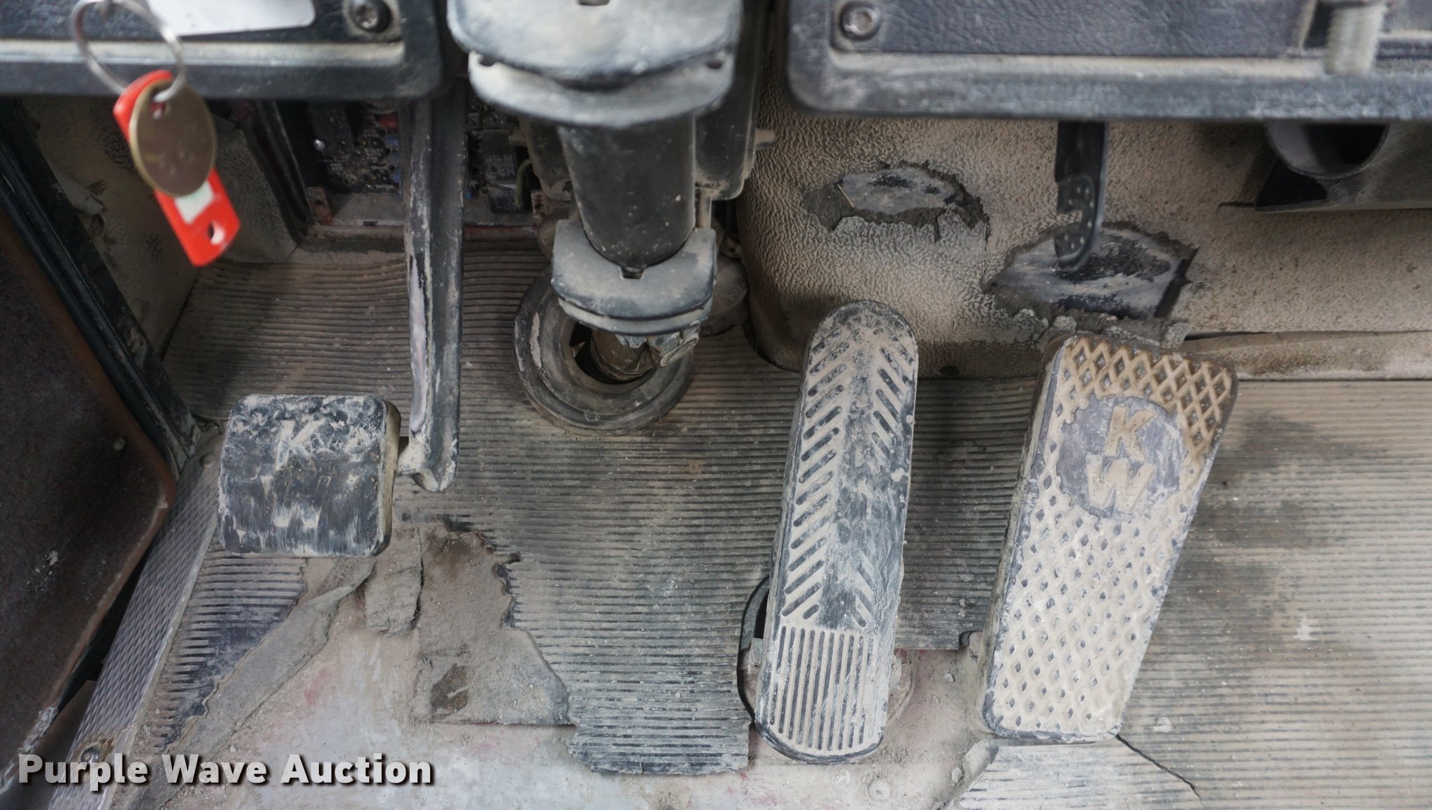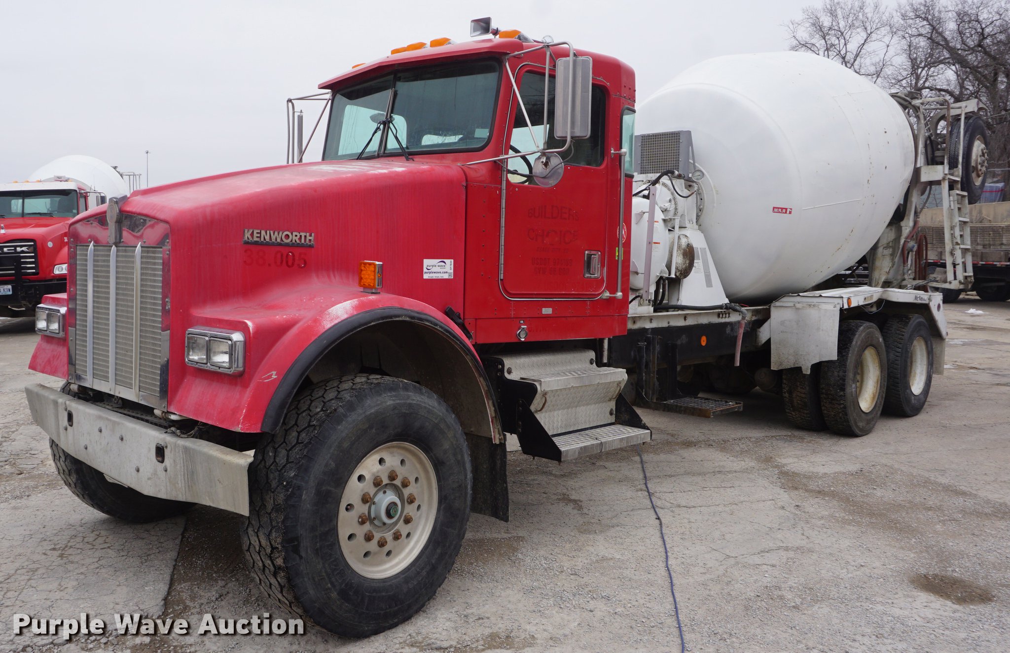 Purple Wave is selling a used Ready Mix or Pump Truck in Kansas. This item is a 1995 Kenworth W900B ready mix truck with the following: 194,151 miles on odometer, 10,252 hours on meter, Caterpillar 3306 10.5L L6 turbo diesel engine, Eaton Fuller eight speed manual transmission, Lo-Lo, Tandem axle, Full locking differential, AC and heat, Air suspension seat, Drum/axle controls, PTO, Exterior visor, Mcneilus 10 cu. yd. mixer bed, Rear drum controls, (3) steel chute extensions, 125 gallon water tank, Rear discharge, Ladder, Single fuel tank, 5:38 gear ratio, Walking beam suspension, Air brakes, 425/65R22.5 front tires, 11R22.5 rear tires, FAWR 20,000 lbs, IAWR 21,200 lbs, RAWR 21,200 lbs, Steerable lift axle GAWR 13,000 lbs