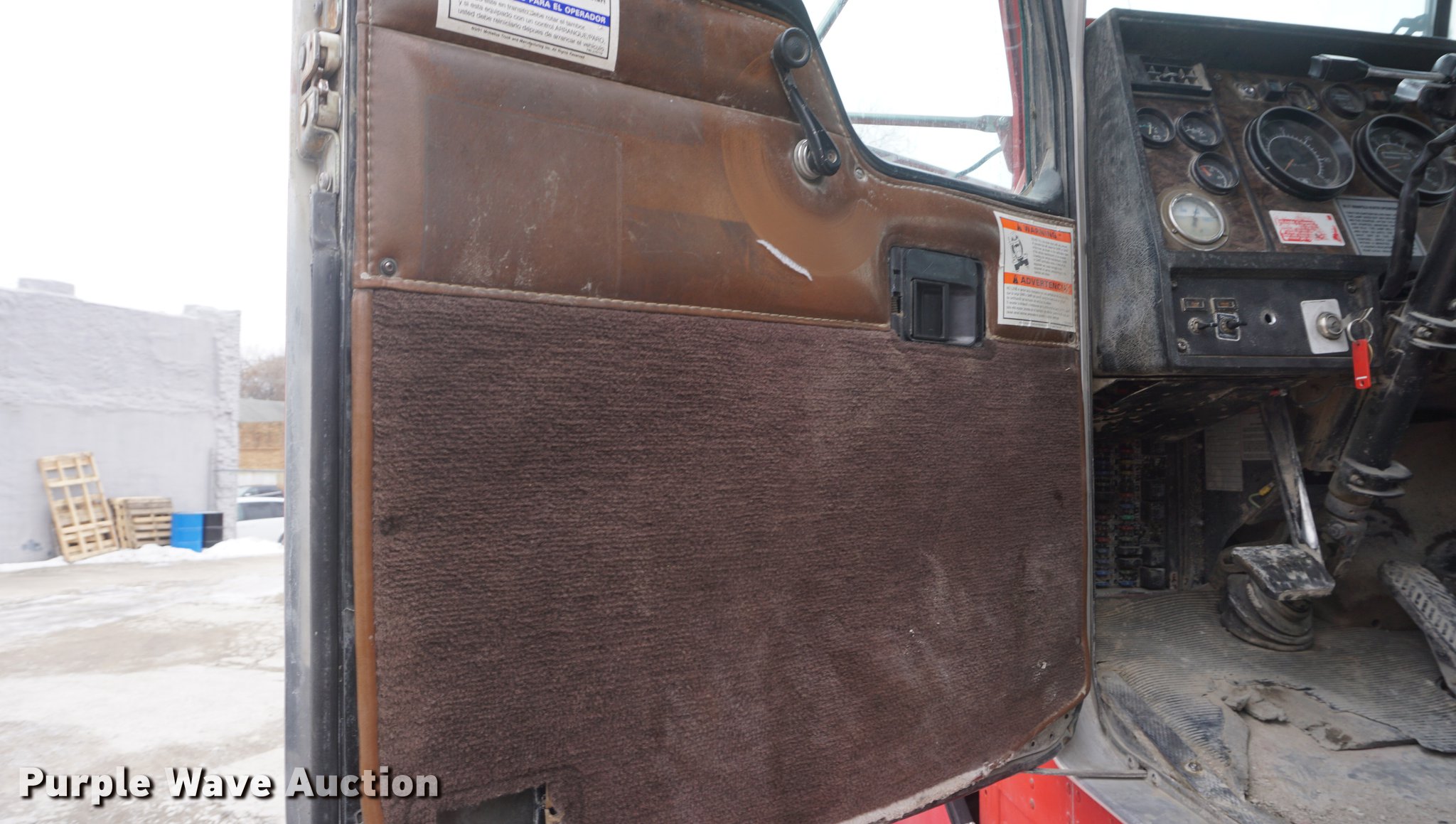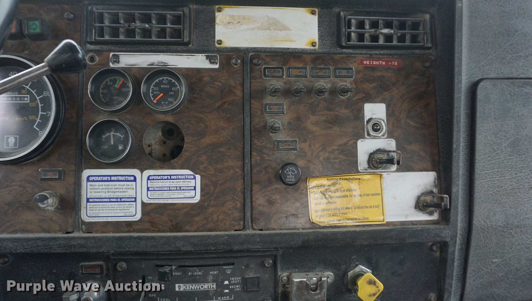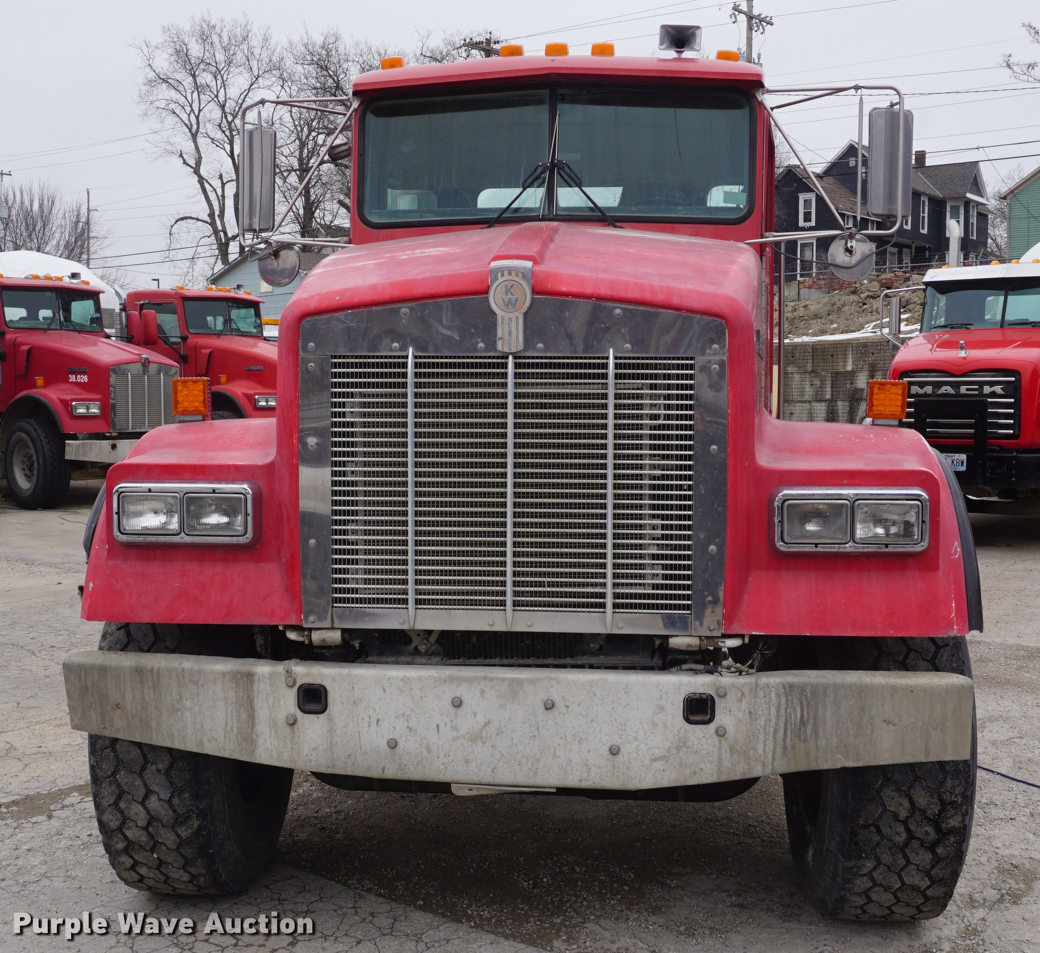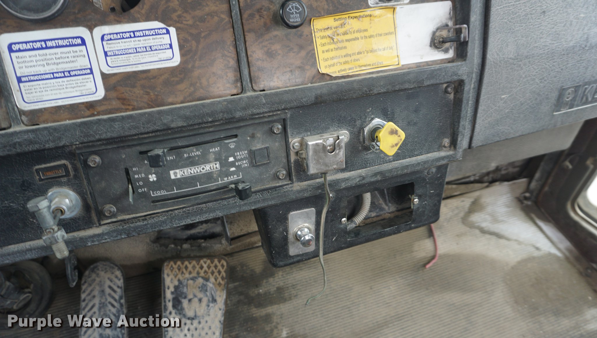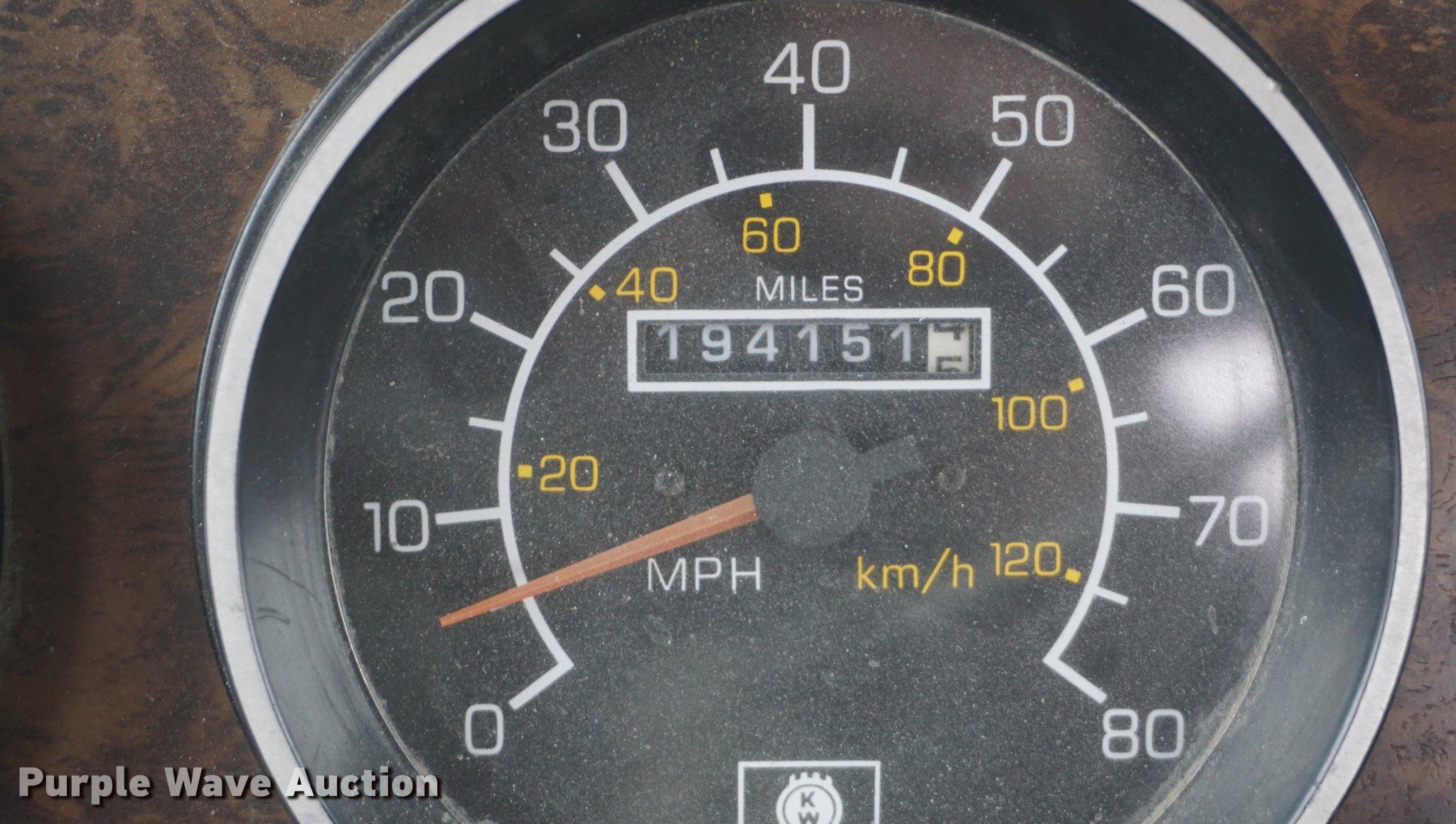 Purple Wave is selling a used Ready Mix or Pump Truck in Kansas. This item is a 1995 Kenworth W900B ready mix truck with the following: 194,151 miles on odometer, 10,252 hours on meter, Caterpillar 3306 10.5L L6 turbo diesel engine, Eaton Fuller eight speed manual transmission, Lo-Lo, Tandem axle, Full locking differential, AC and heat, Air suspension seat, Drum/axle controls, PTO, Exterior visor, Mcneilus 10 cu. yd. mixer bed, Rear drum controls, (3) steel chute extensions, 125 gallon water tank, Rear discharge, Ladder, Single fuel tank, 5:38 gear ratio, Walking beam suspension, Air brakes, 425/65R22.5 front tires, 11R22.5 rear tires, FAWR 20,000 lbs, IAWR 21,200 lbs, RAWR 21,200 lbs, Steerable lift axle GAWR 13,000 lbs