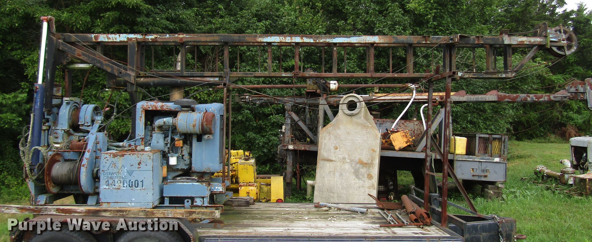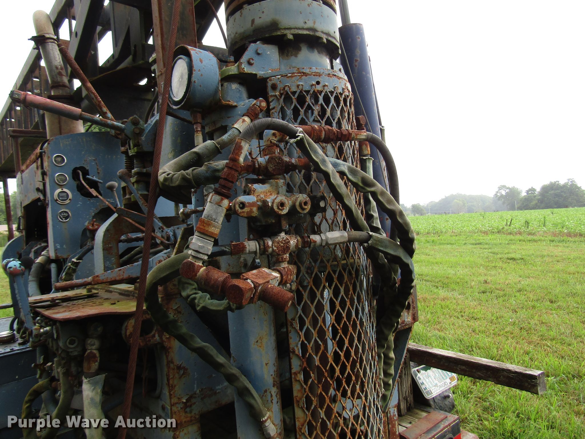 Purple Wave is selling a used Drilling Rig in Indiana. This item is a Boyles Bro DD22 deep hole core drilling rig with the following: 918 hours on meter, Detroit Diesel three cylinder diesel engine, Four speed manual transmission, Two speed rear end, Wireline winch, Main winch, Long Year hydraulic chuck, Angle hole capable, Hydraulic pole down, Trailer not included