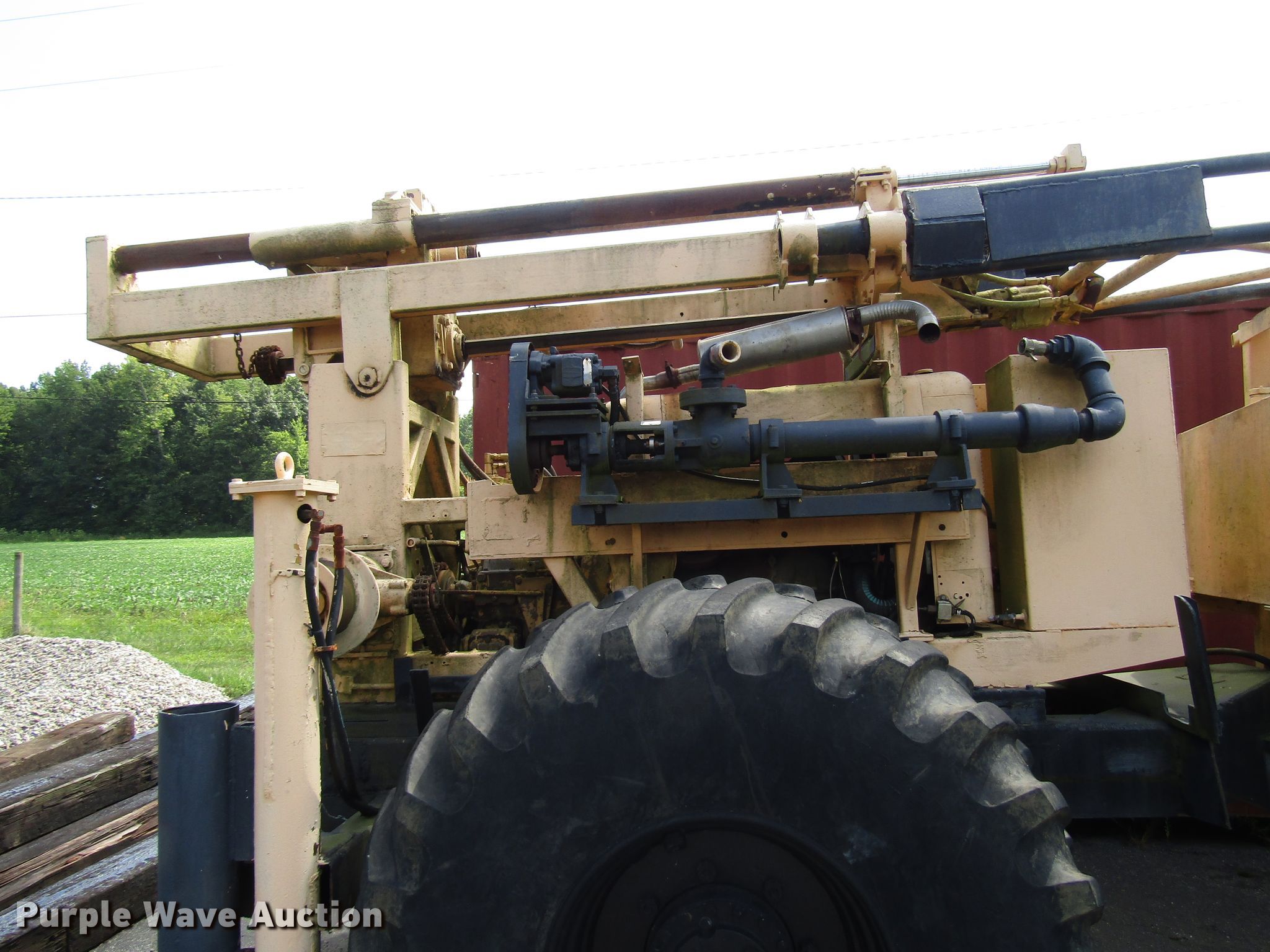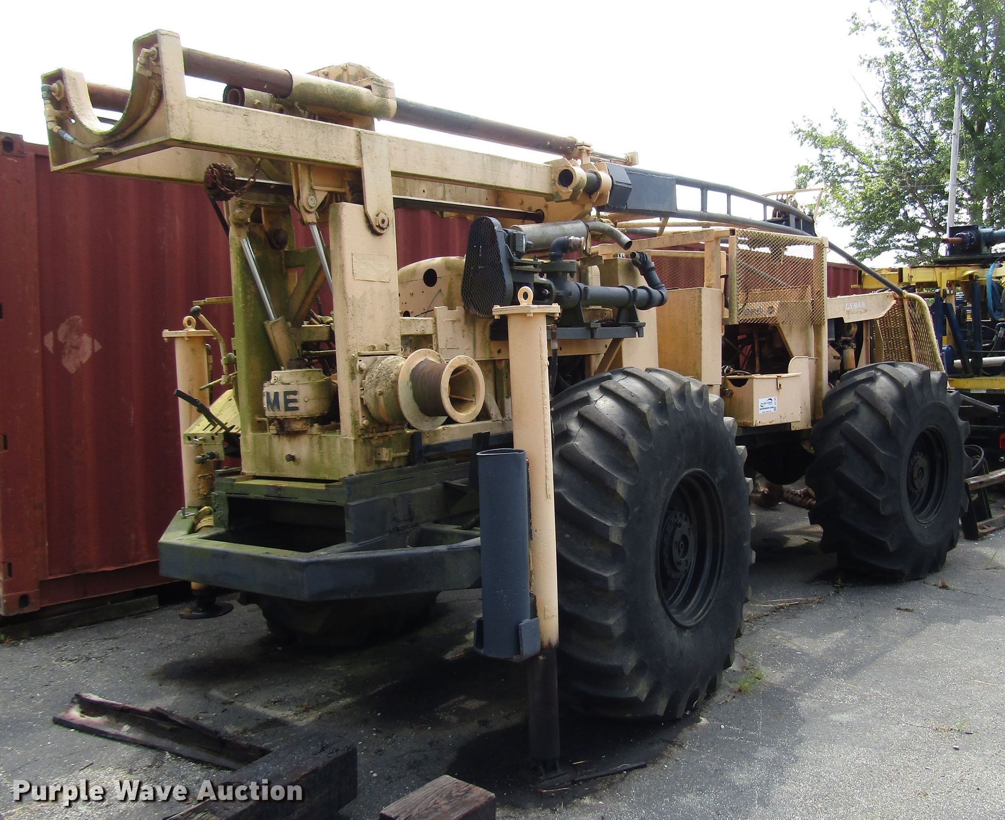 Purple Wave is selling a used Drilling Rig in Indiana. This item is a Gemco 300 drilling rig with the following: Detroit Diesel four cylinder diesel engine, Five speed manual transmission, Four wheel drive, Ramsey winch, Central Mining Equipment 75 drill, Ford 300 six cylinder gas engine, Four speed transmission, Cat head, Auxiliary hydraulic winch, L-6 Manyo pump, Outriggers, 23.1-26 tires