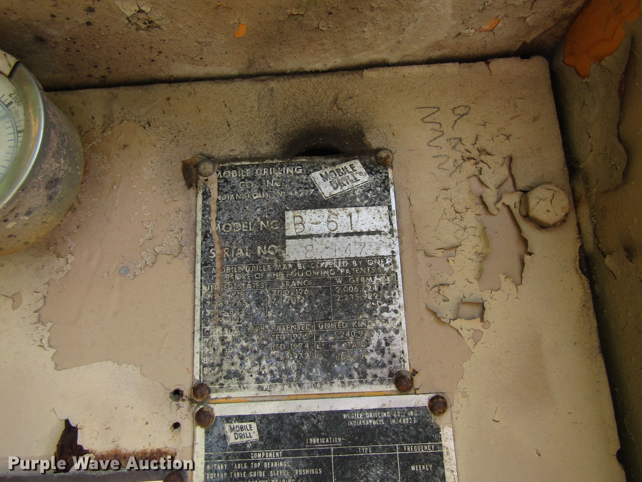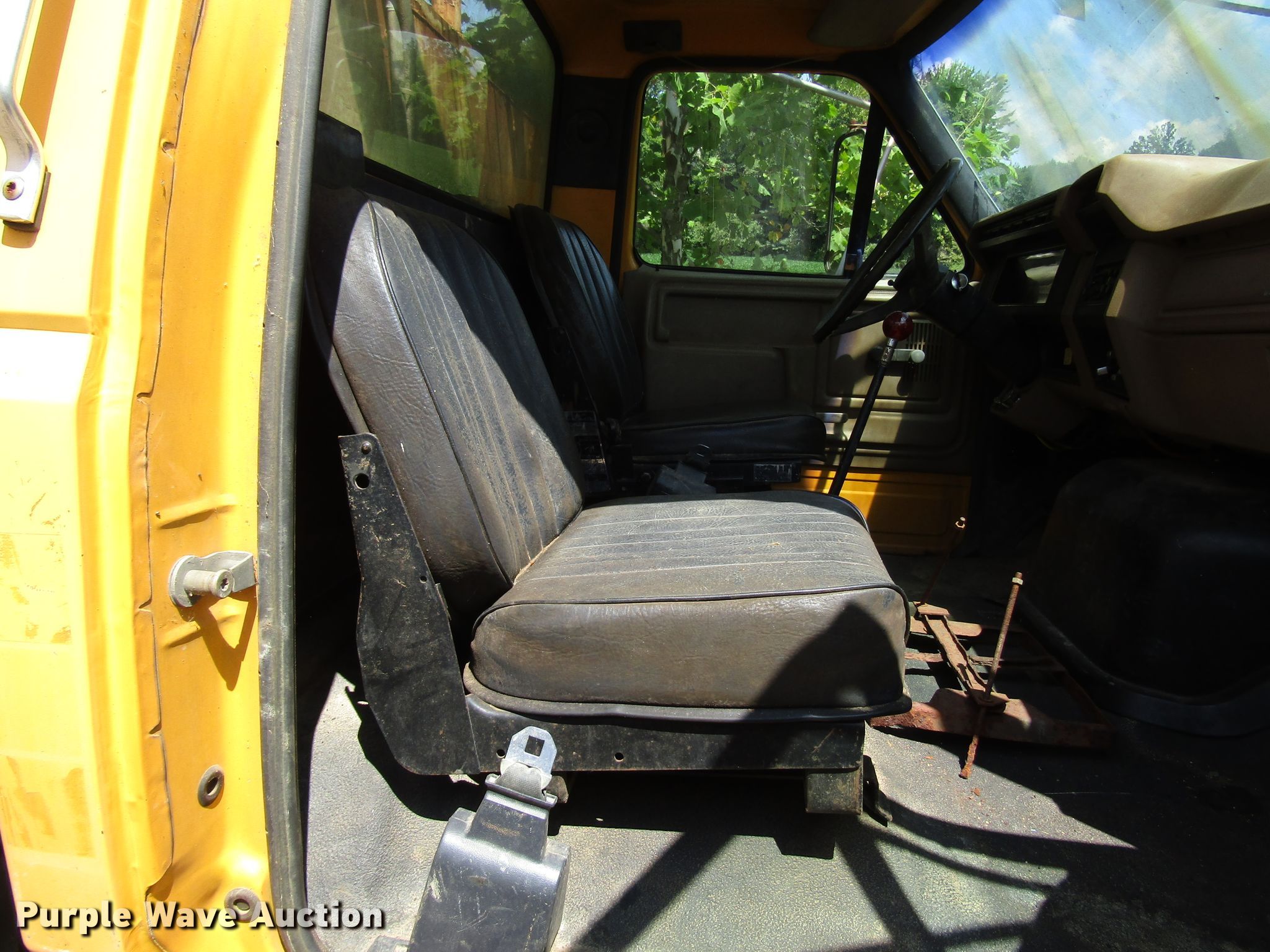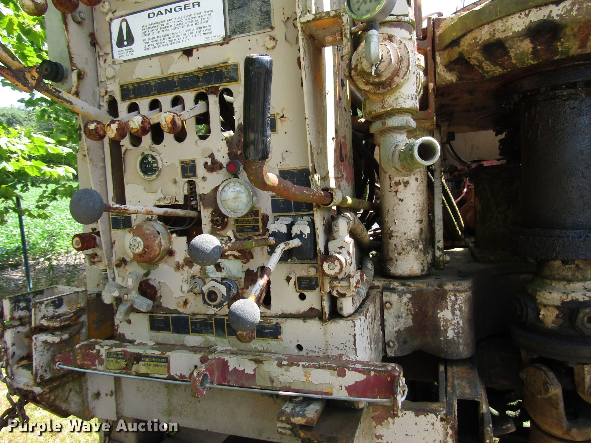 Purple Wave is selling a used Drilling Rig Truck in Indiana. This item is a 1988 Ford FT900 drilling rig truck with the following: 50,386 miles on odometer, 7.8L six cylinder diesel engine, Six speed manual transmission, Inter-axle differential lock, 1987 drilling rig, Model B61, 18'L x 96"W bed dimensions, Cummins 4BT 3.9L four cylinder diesel engine, Four speed manual transmission, Pullmaster winch, 10,000 lbs capacity, Safety driver winch, Auxiliary hydraulic winch, Wireline winch, L-8 Manyo pump, Breakout wrench, Swing-out auger rack, 300 gallon tank, Outriggers, Spring suspension, Air brakes, 214" wheelbase, 10.00-20 tires, GVWR 44,800 lbs, Serial 87147