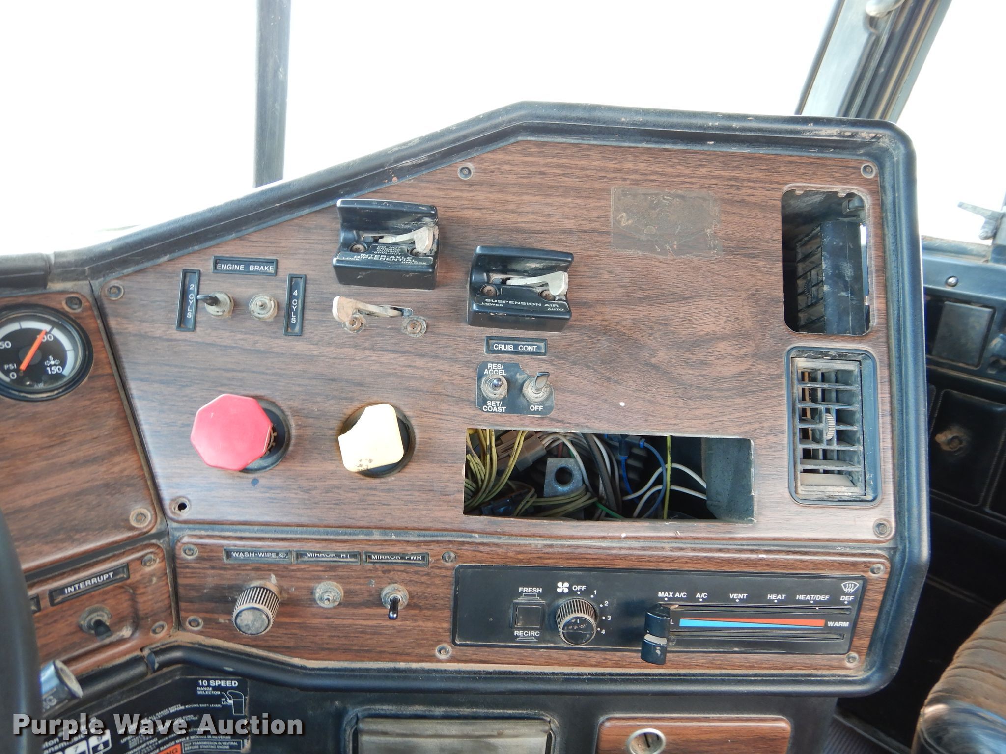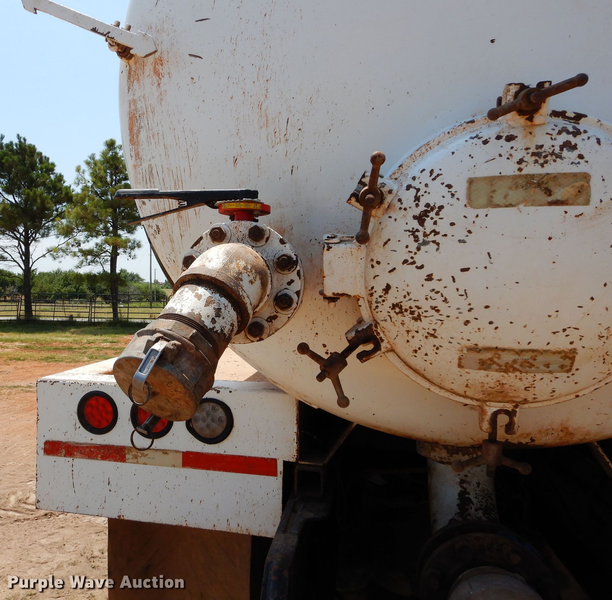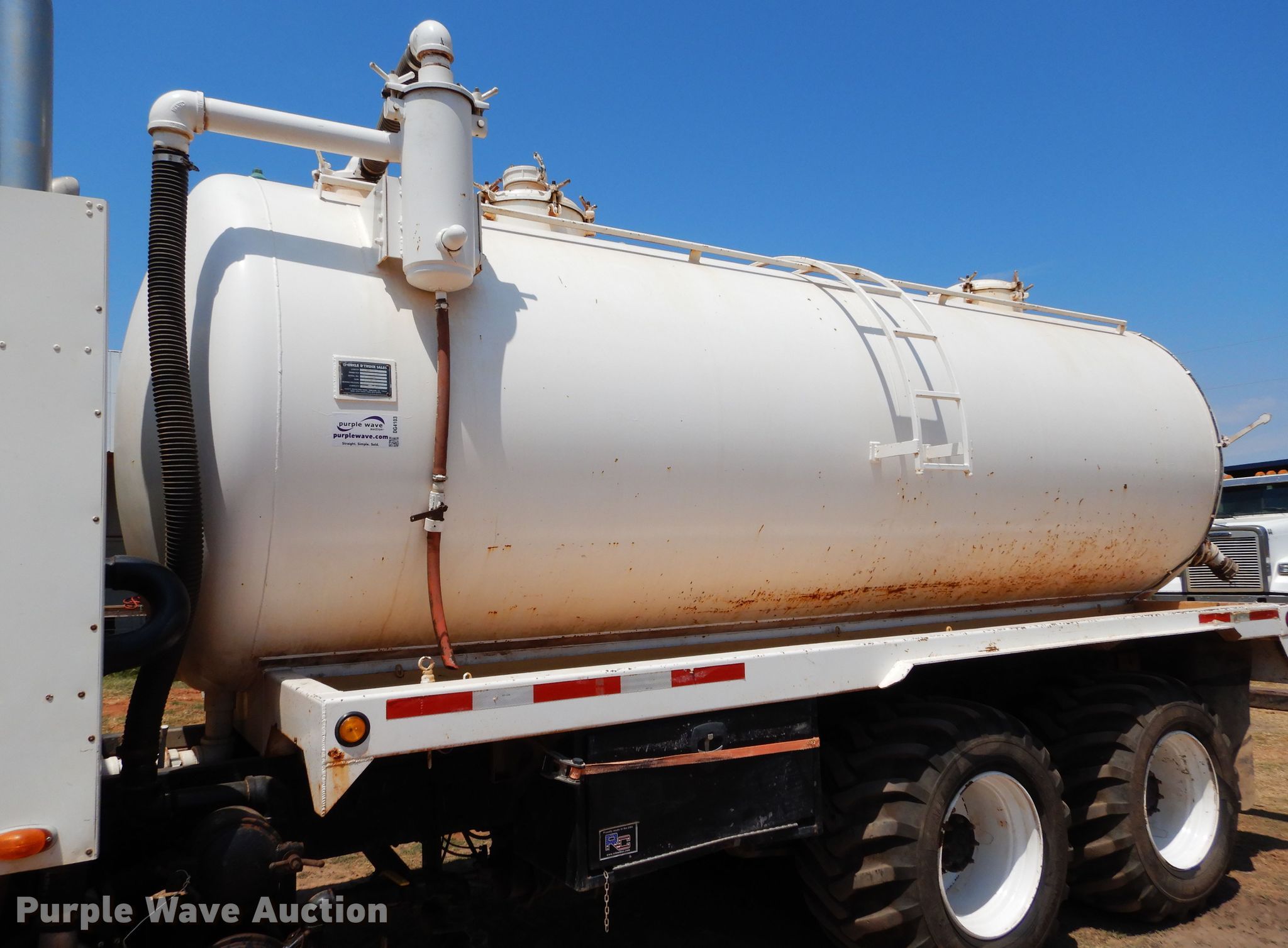 Purple Wave is selling a used Vacuum Truck in Oklahoma. This item is a 2001 Freightliner FLD vacuum truck with the following: 427,850 miles on odometer, Detroit Diesel Series 60 12.7L L6 diesel engine, Eaton Fuller 10 speed manual transmission, Tandem axle, AC and heat, Cruise, PTO, Circle D tank, 16'L, 3,300 gallon capacity, Top fill, Side discharge, 6" rear drain, 4" rear outlet, Serial AF2923, Air suspension, Air brakes, 11R24.5 front tires, 500L40-22.5 rear tires