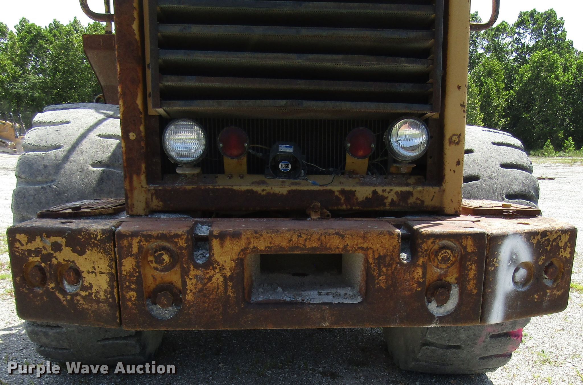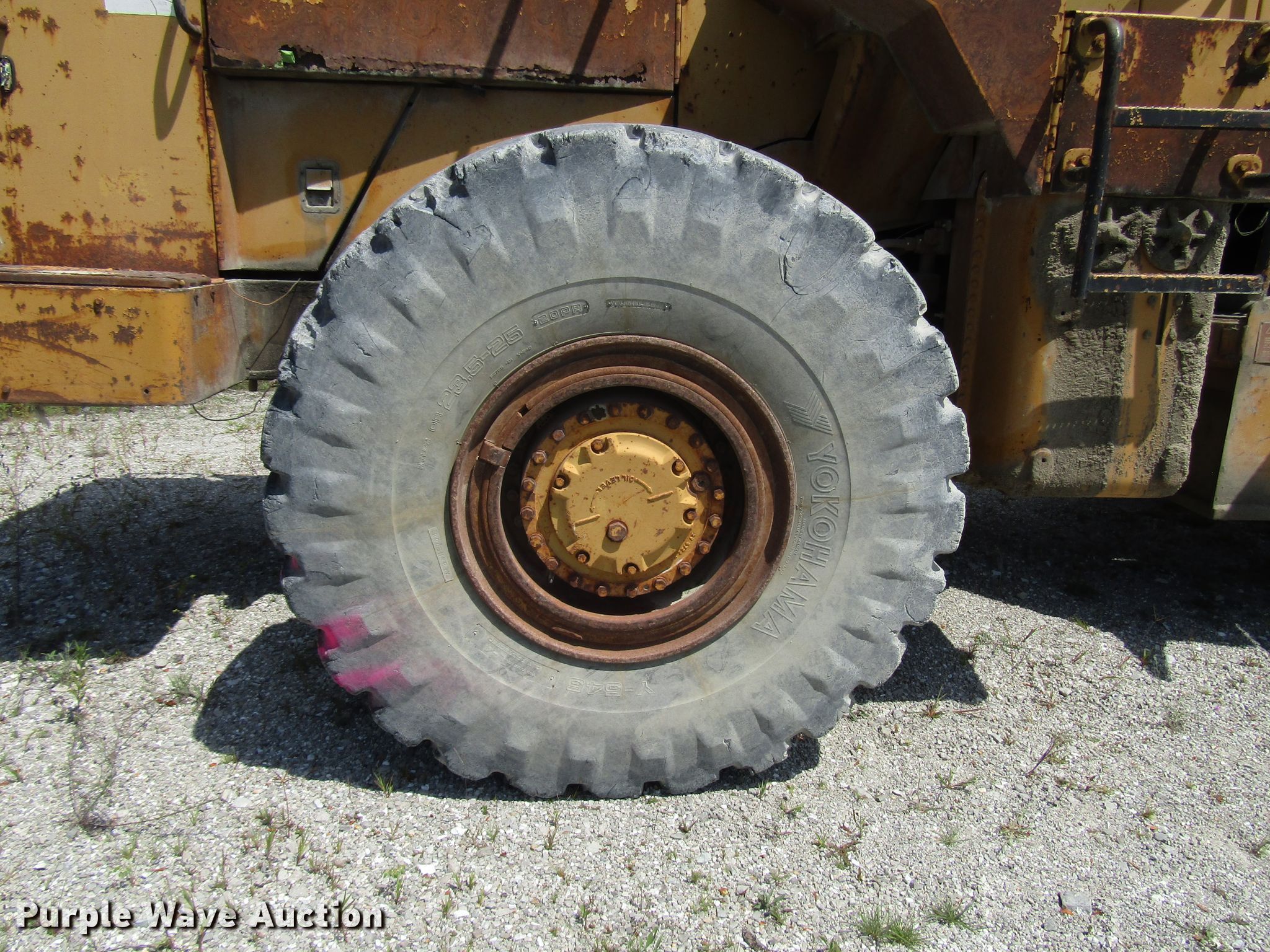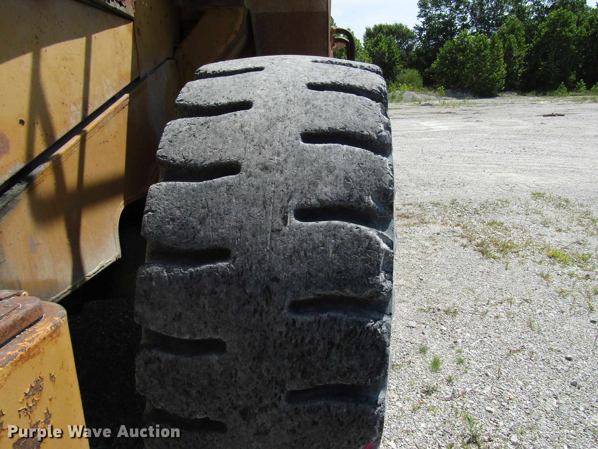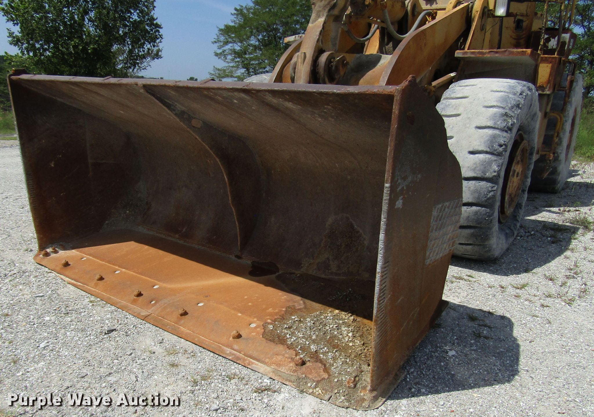 Purple Wave is selling a used Wheel Loader in Missouri. This item is a 1983 Caterpillar 966D wheel loader with the following: 9,189 hours on meter, Caterpillar six cylinder diesel engine, Powershift transmission, 4F-4R gears, Enclosed cab, Heat, Two lever bucket controls, 112"W general purpose bucket, Bolt-on cutting edge, Counter weights, 23.5R25 tires, Front left tire ruined, Serial 94X02822