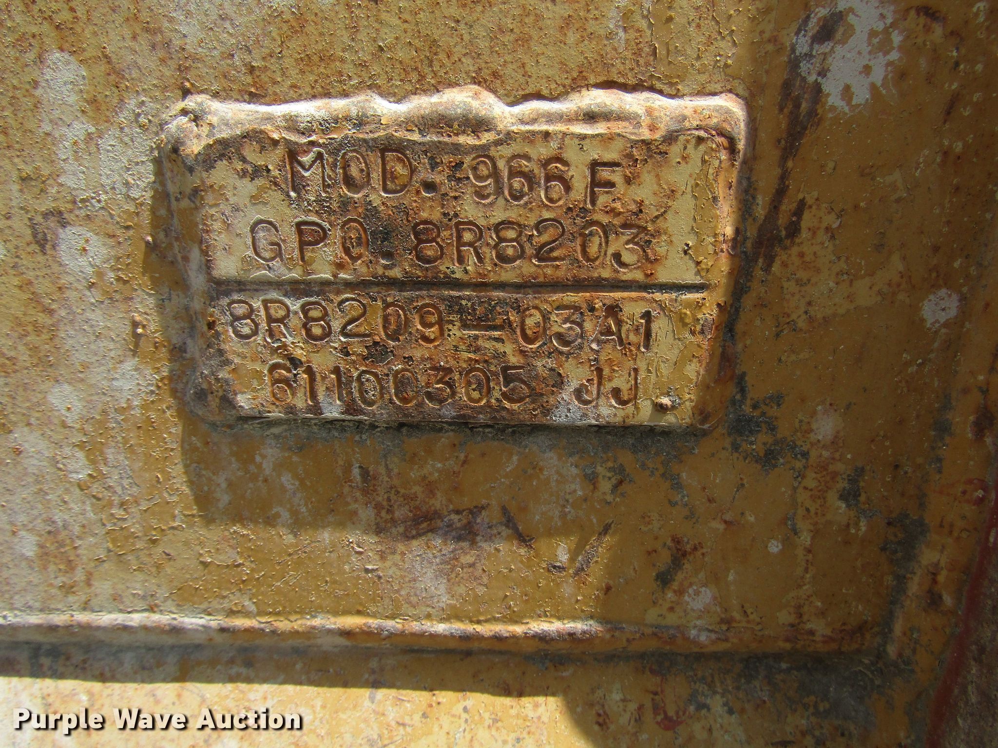 Purple Wave is selling a used Wheel Loader in Missouri. This item is a 1992 Caterpillar 966F wheel loader with the following: 9,945 hours on meter, Caterpillar C10 six cylinder diesel engine, Powershift transmission, 4F-4R gears, Enclosed cab, AC and heat, Two lever bucket controls, 121" general purpose bucket, Bolt-on cutting edge, 26.5R25 tires, Serial 8BG00752
