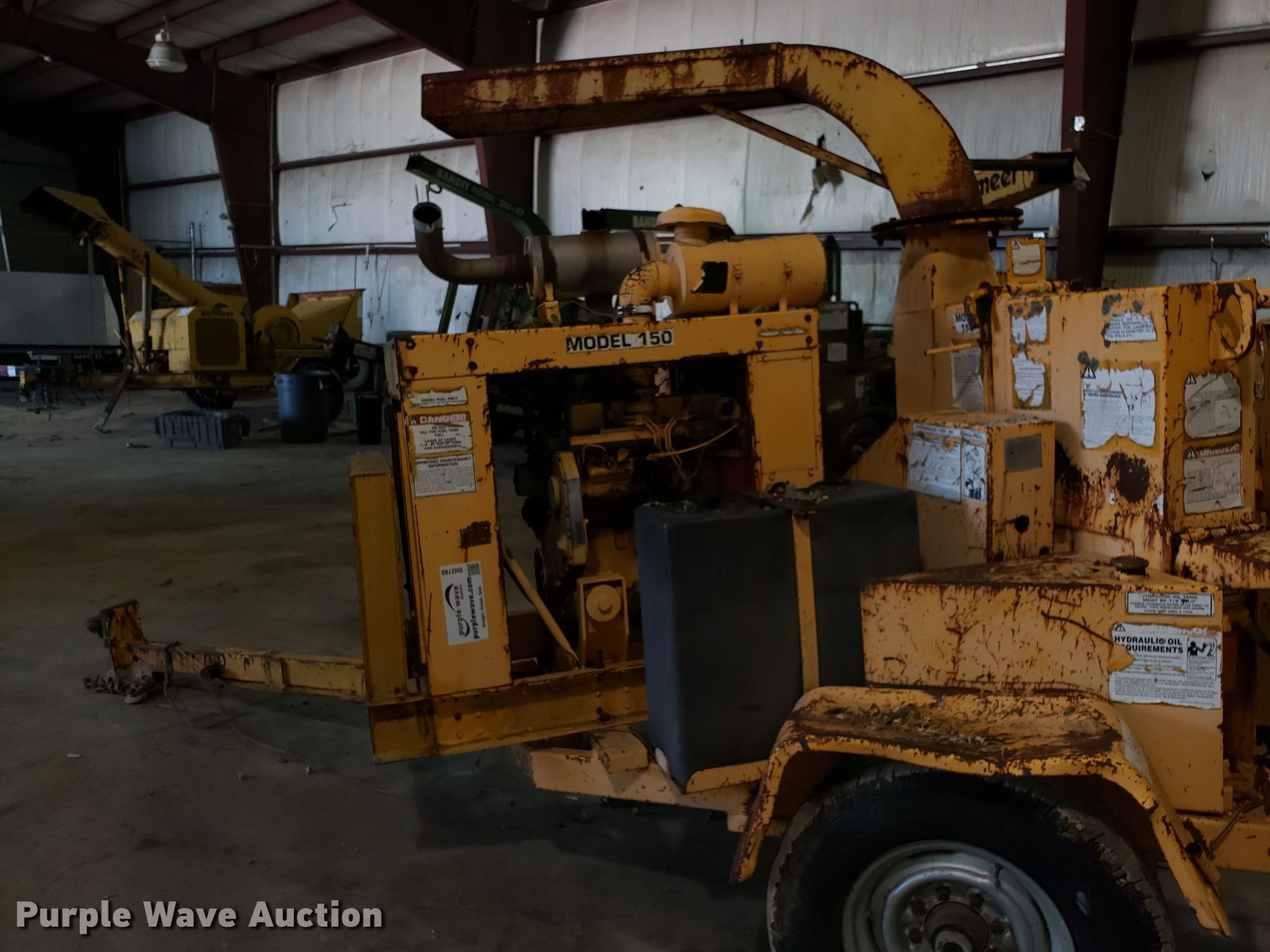 Purple Wave is selling a used Wood Chipper or Stump Grinder in Missouri. This item is a Bandit 150XP wood chipper with the following: Cummins 3.9L four cylinder diesel engine, 245/75R16 tires, Unknown operating condition, Serial 17124