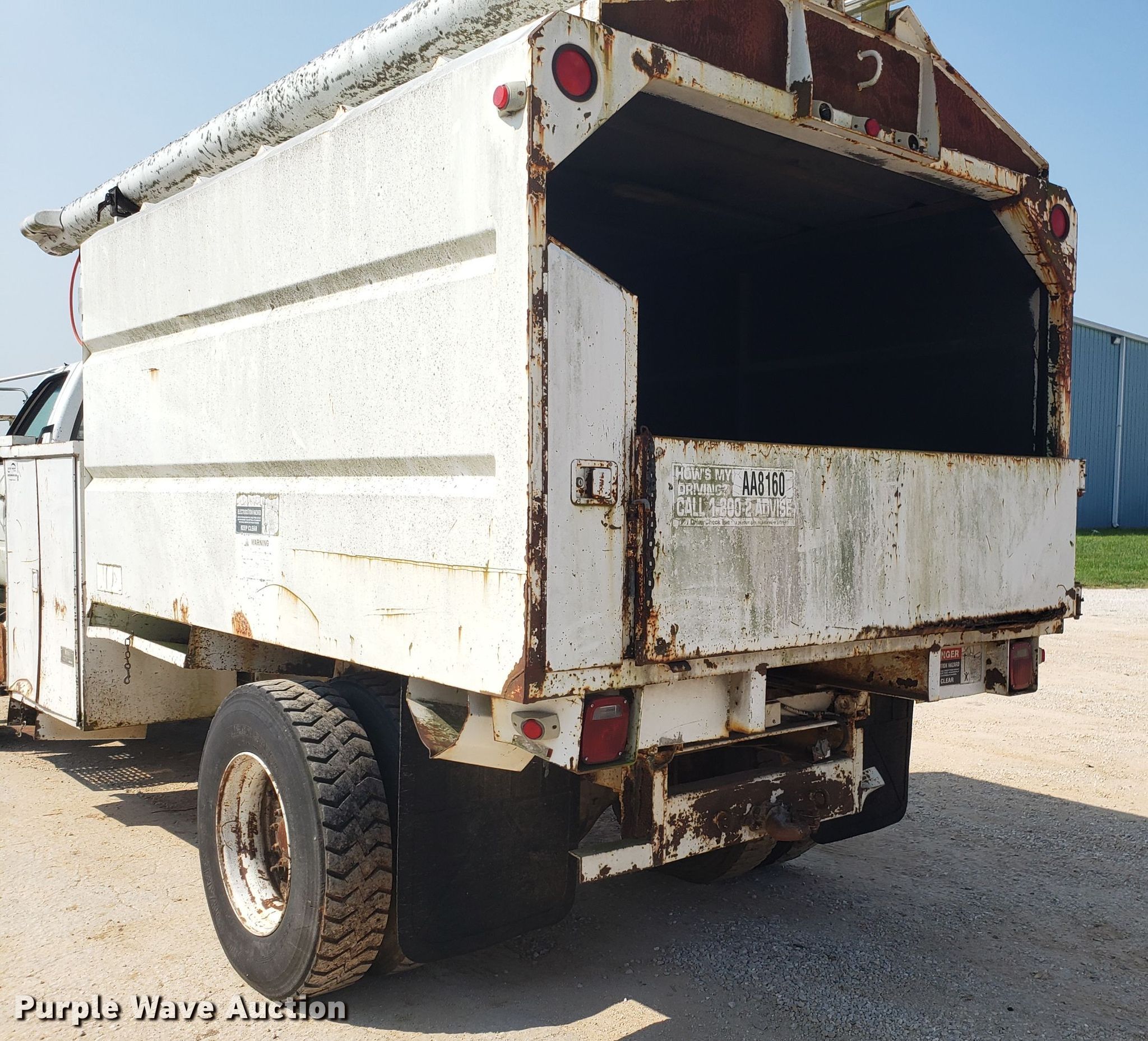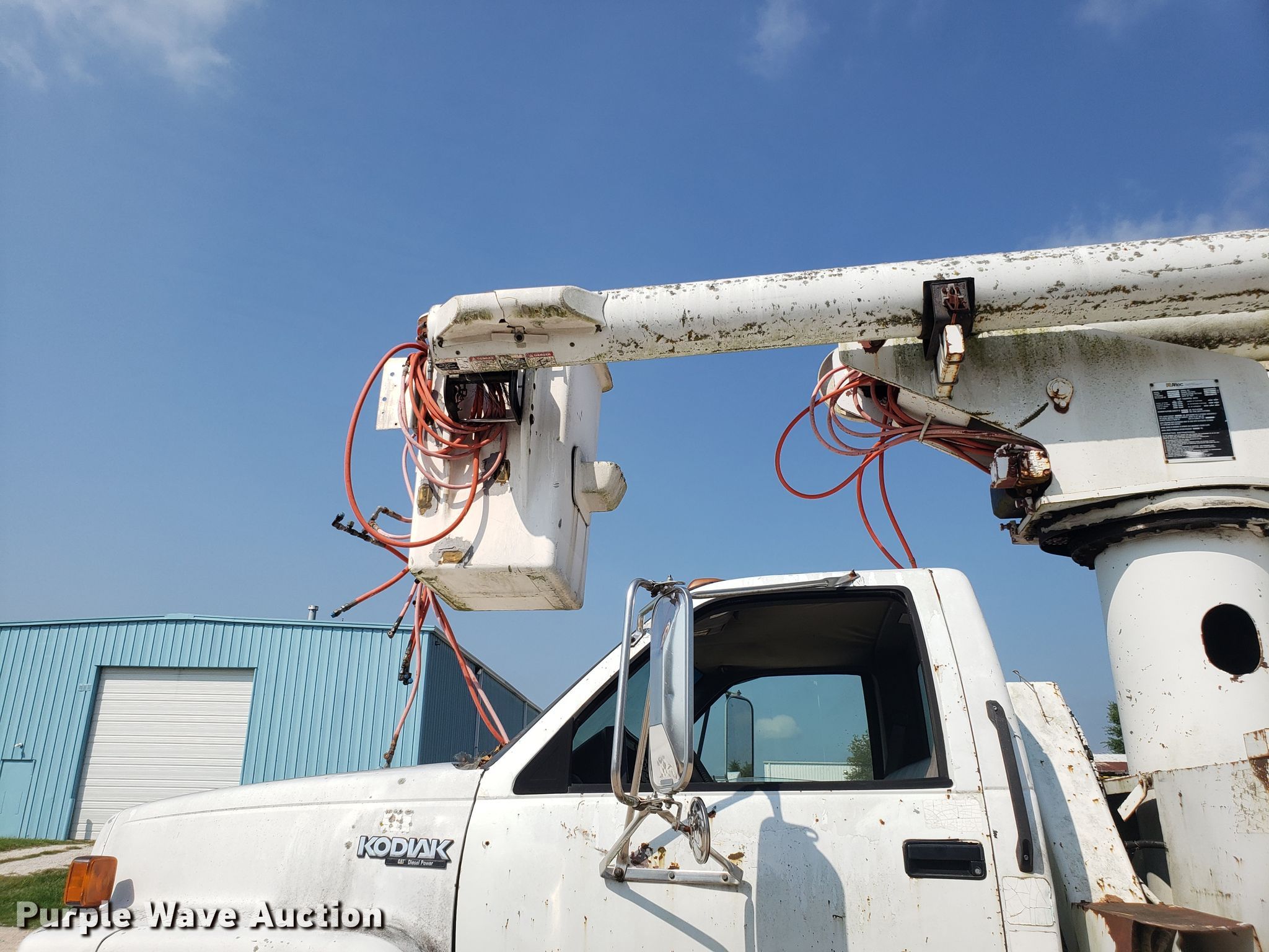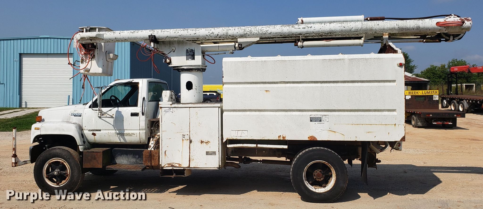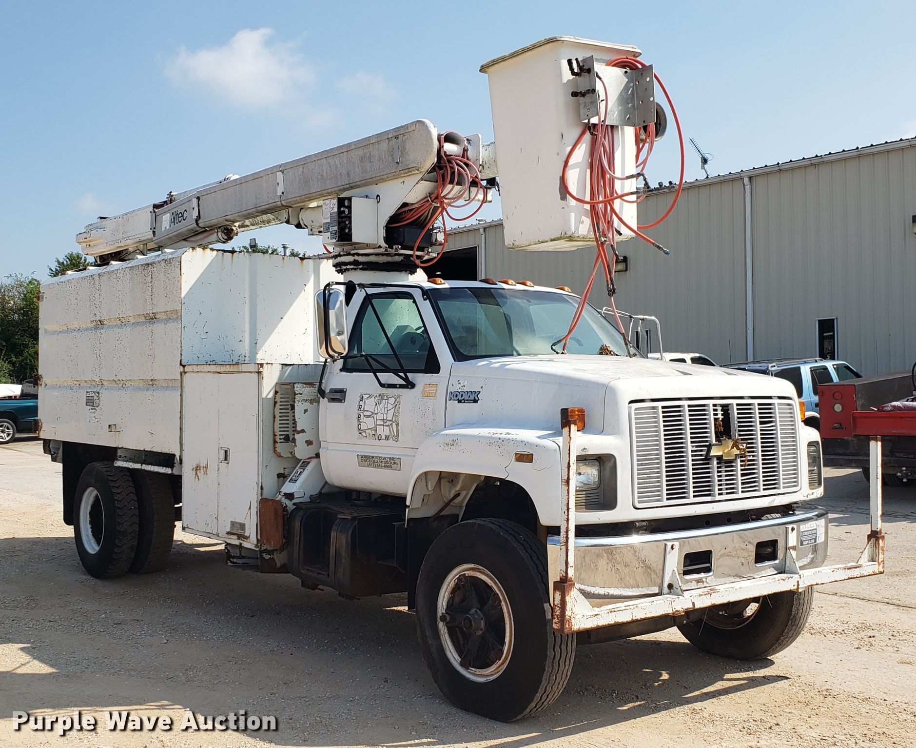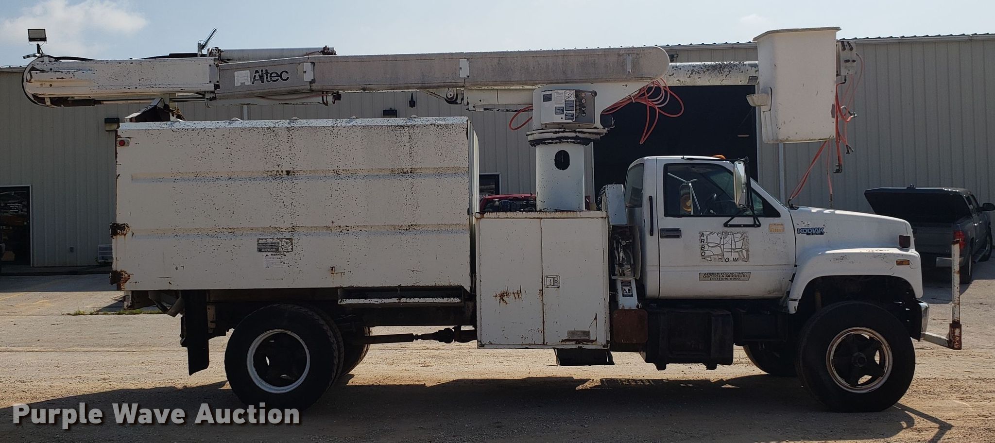 Purple Wave is selling a used Bucket Truck in Missouri. This item is a 1994 Chevrolet Kodiak C6500 bucket truck with the following: 92,659 miles on odometer, Caterpillar 3116 6.6L six cylinder diesel engine, Five speed manual transmission, Single axle, PTO, 11'L x 96"W chipper bed, 56" side height, Altec LRIII55 boom, 350 lbs maximum lift capacity, 55' maximum lift height, Man basket, Platform and ground controls, Serial 0394BH0503, Spring suspension, Hydraulic brakes, 11R22.5 tires, Non-operational boom