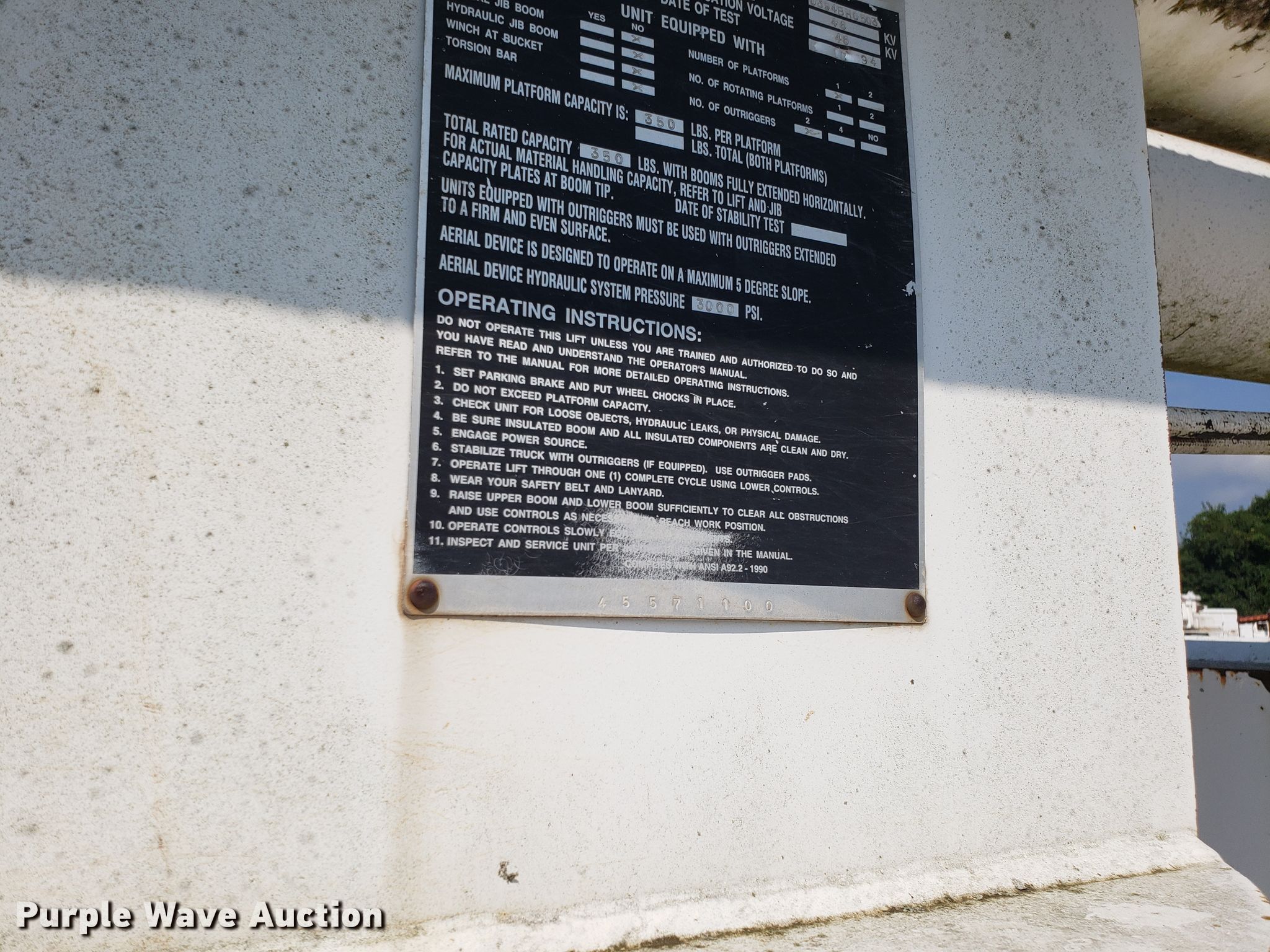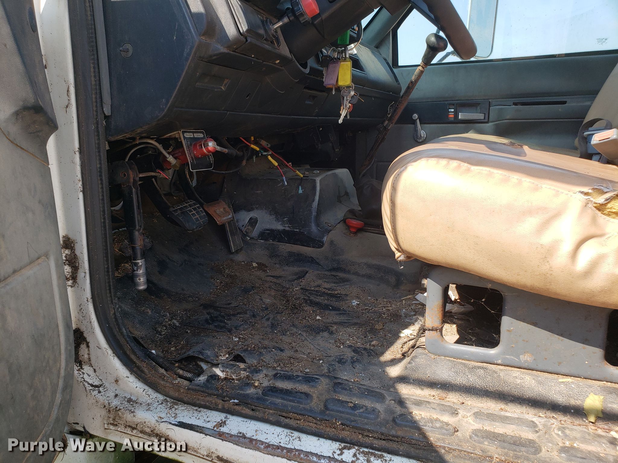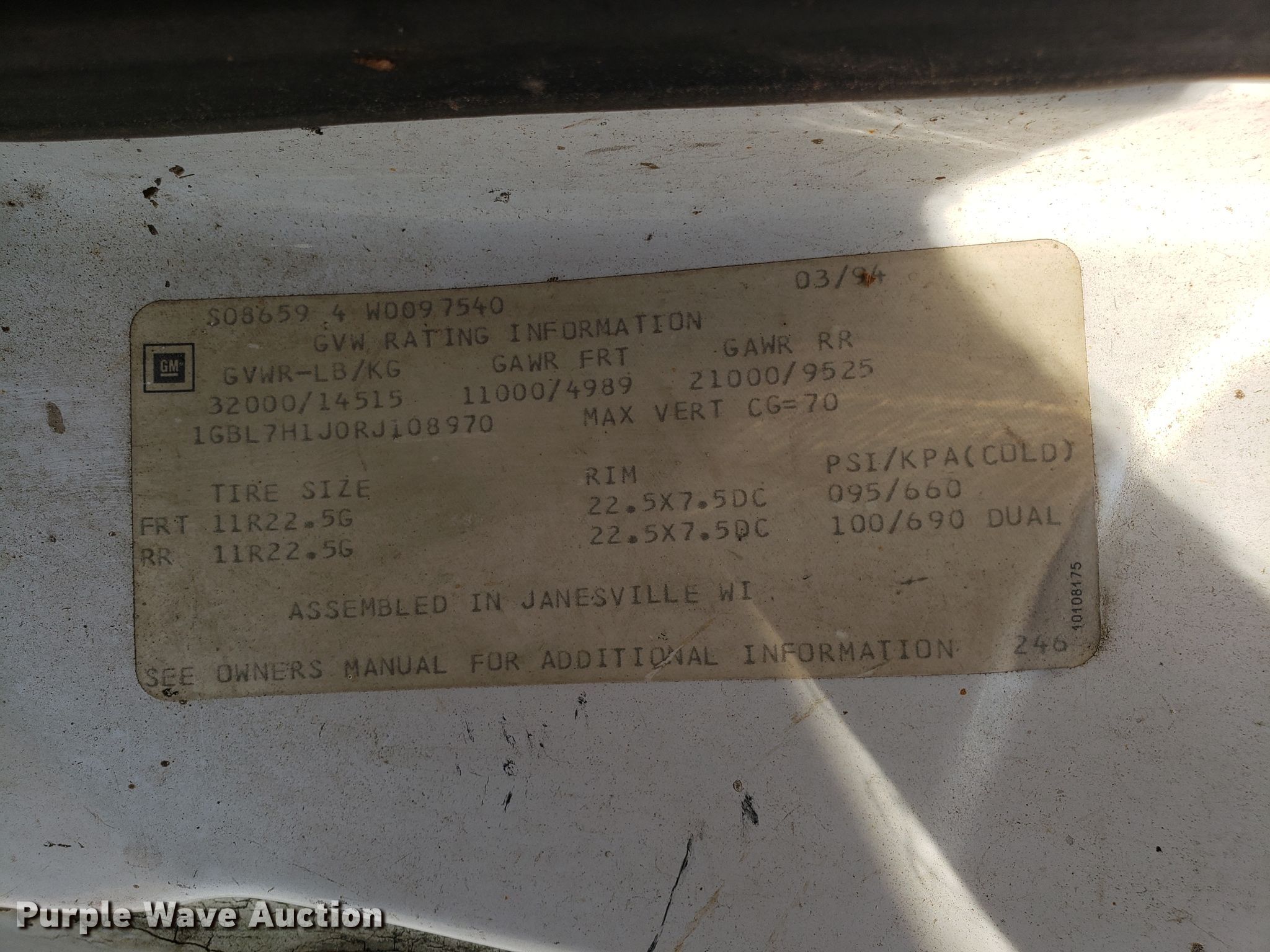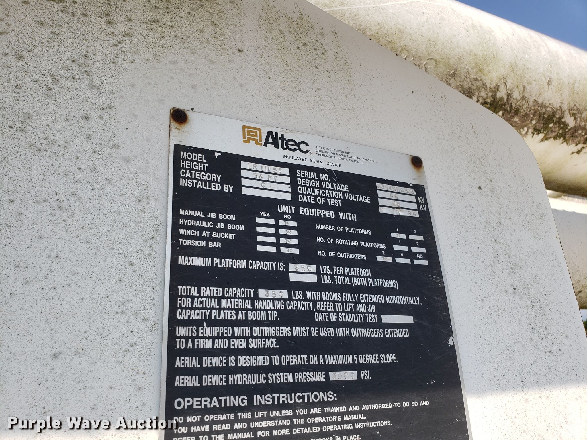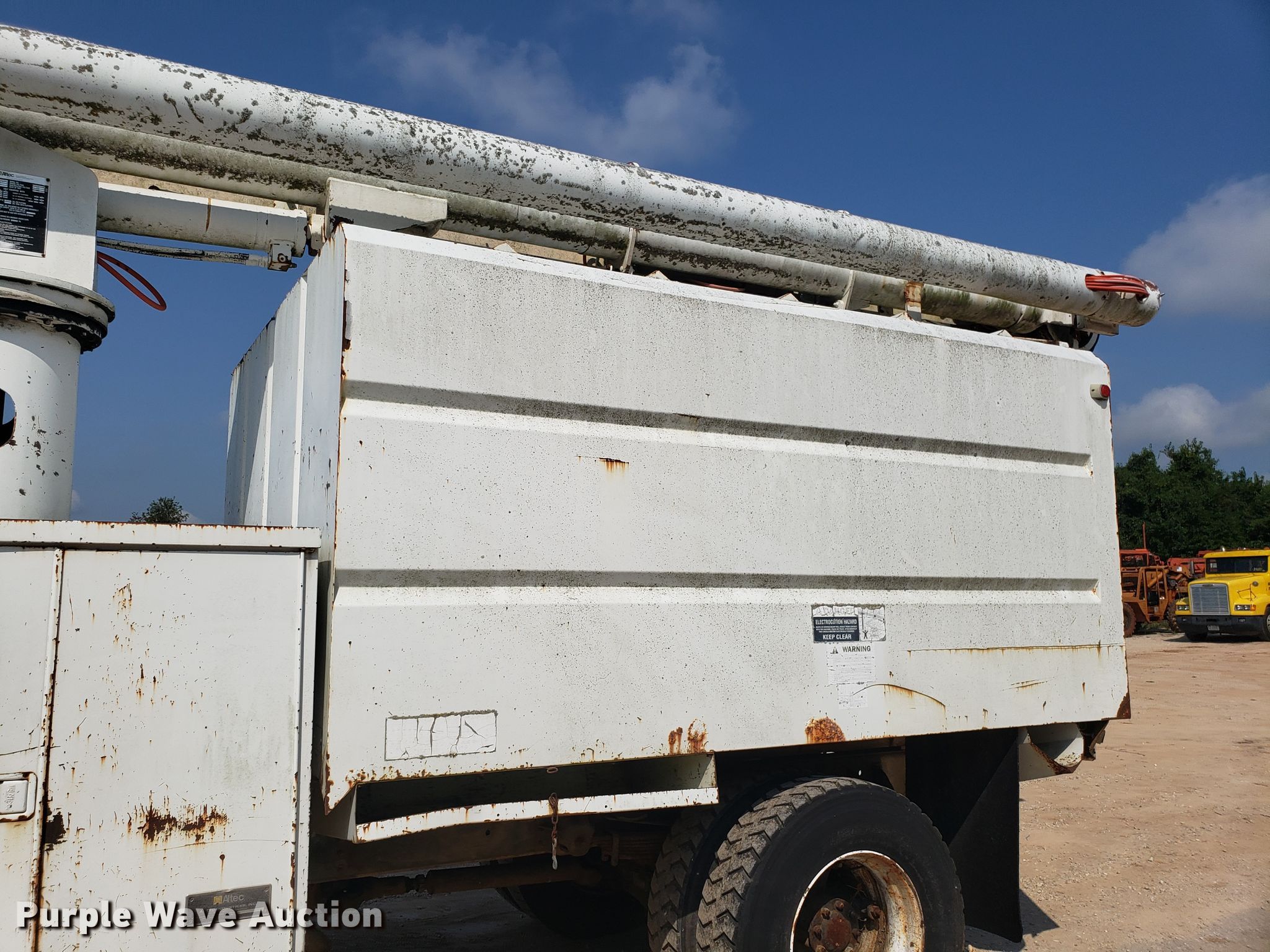 Purple Wave is selling a used Bucket Truck in Missouri. This item is a 1994 Chevrolet Kodiak C6500 bucket truck with the following: 92,659 miles on odometer, Caterpillar 3116 6.6L six cylinder diesel engine, Five speed manual transmission, Single axle, PTO, 11'L x 96"W chipper bed, 56" side height, Altec LRIII55 boom, 350 lbs maximum lift capacity, 55' maximum lift height, Man basket, Platform and ground controls, Serial 0394BH0503, Spring suspension, Hydraulic brakes, 11R22.5 tires, Non-operational boom