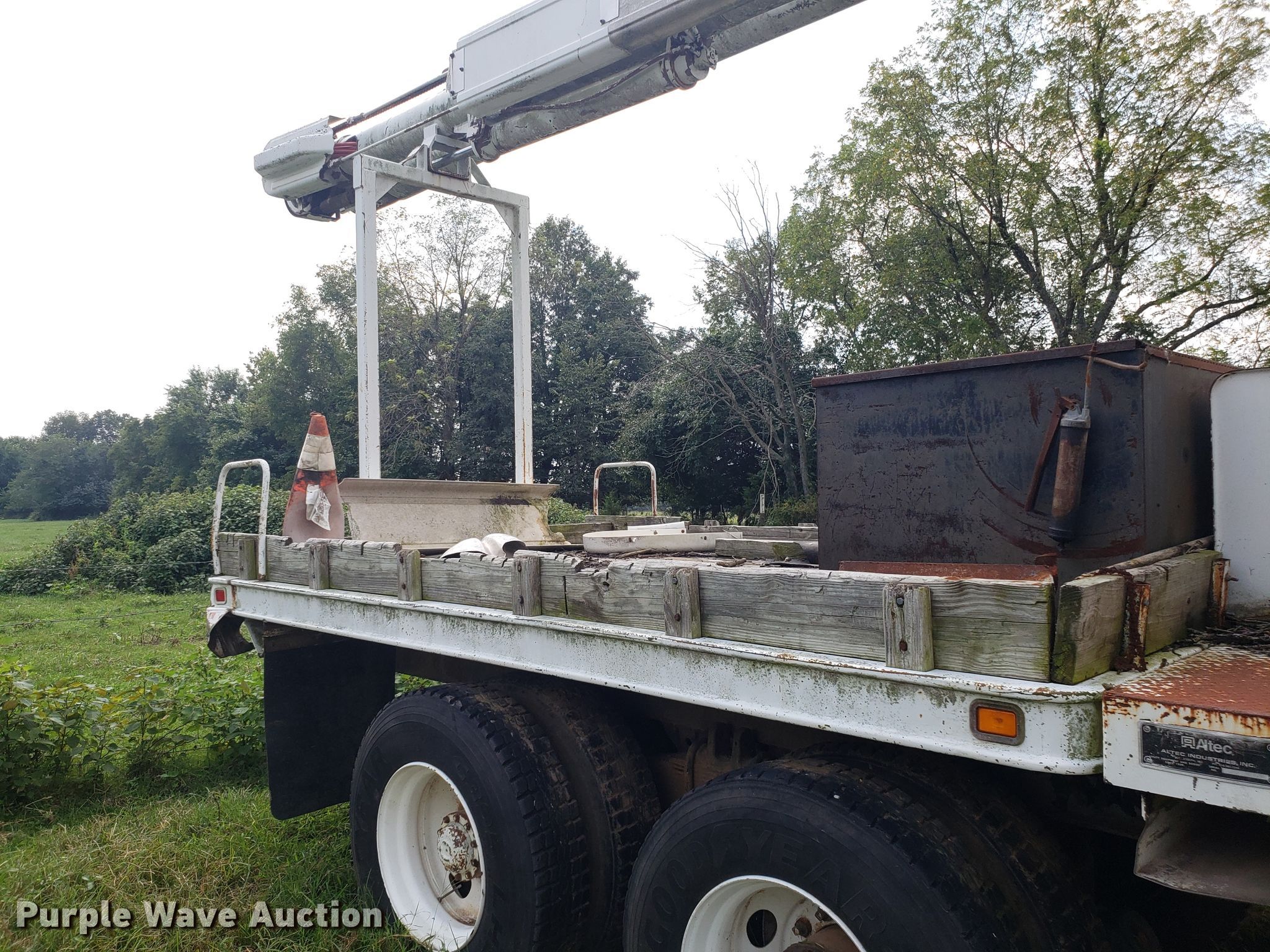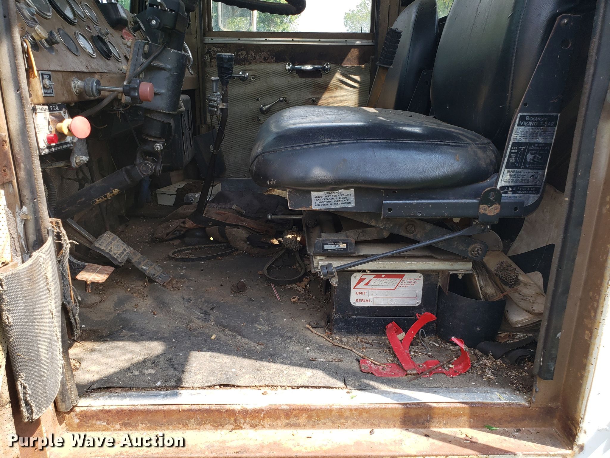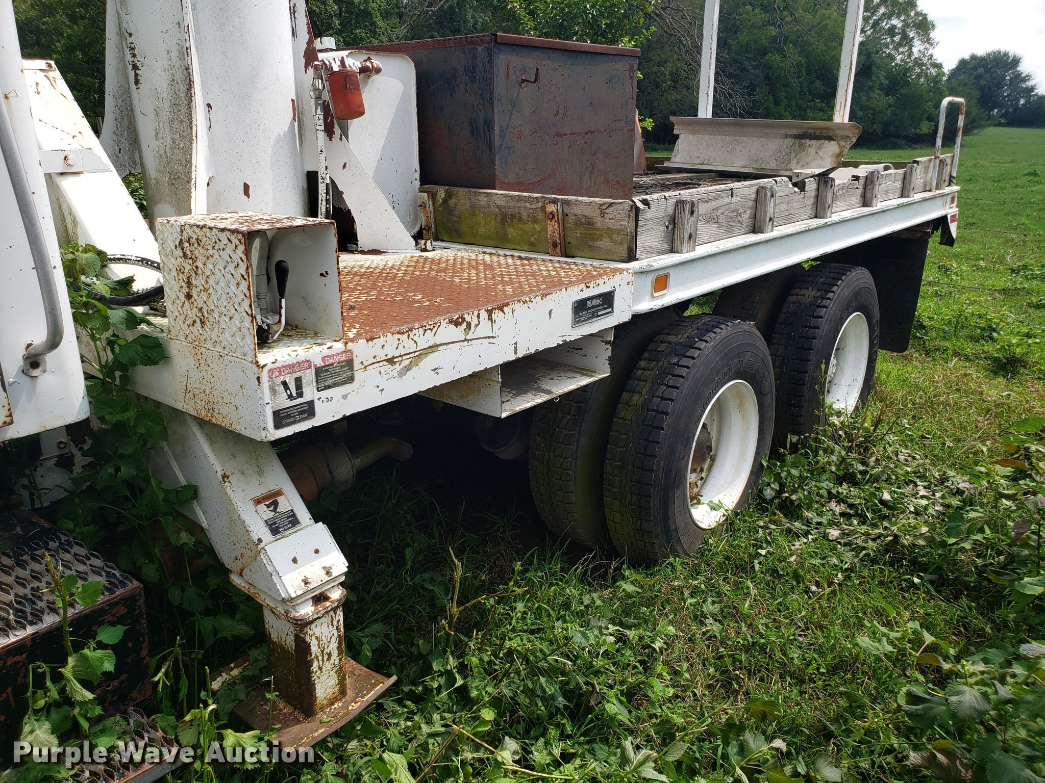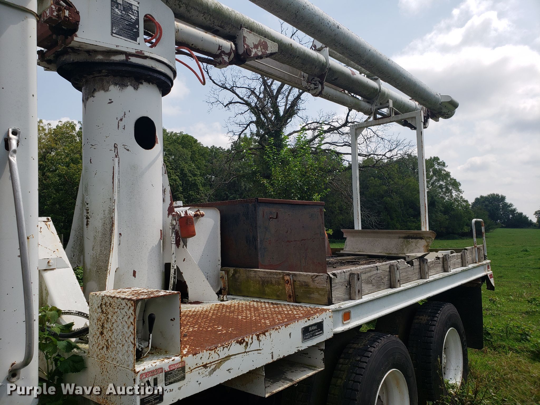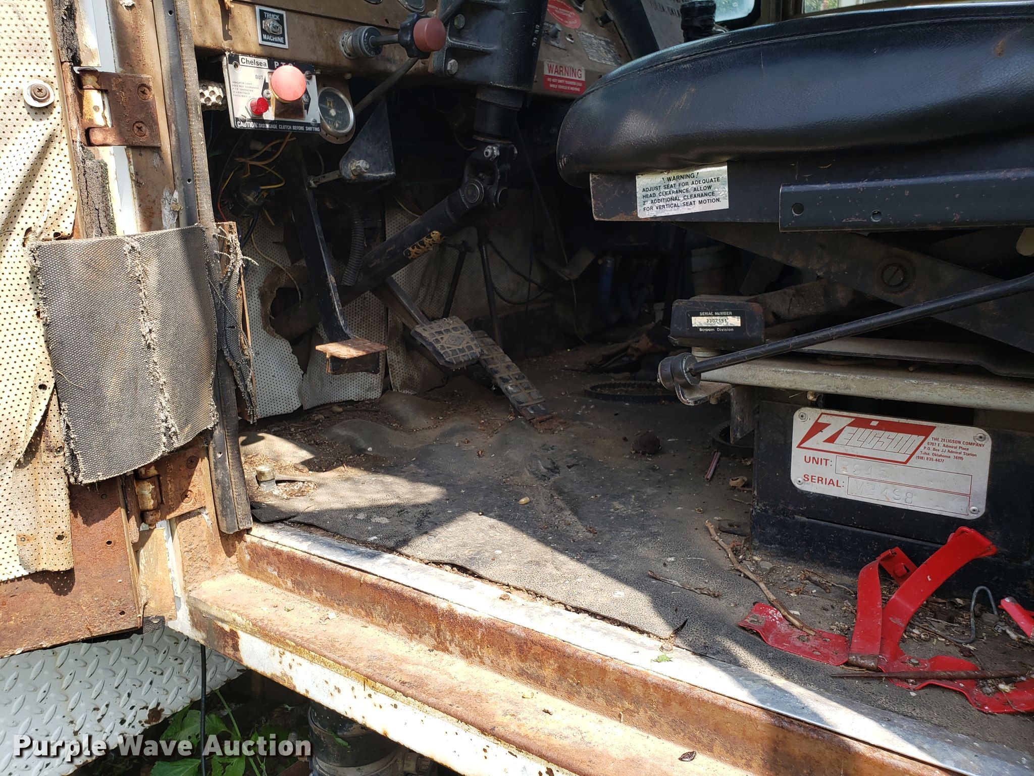 Purple Wave is selling a used Digger Derrick Truck in Missouri. This item is a 1965 Zeligson digger derrick truck with the following: Caterpillar 3208 eight cylinder diesel engine, Eaton Fuller Road Ranger 10 speed manual transmission, Tandem axle, Inter-axle differential lock, PTO, 12'L x 101"W flatbed, Altec boom, Serial 0695H0914, Winch, Spring over walking beam suspension, Air brakes, 11R22.5 tires, Unknown operating condition