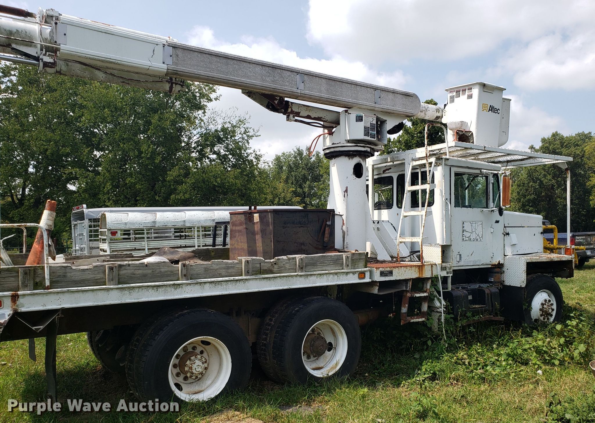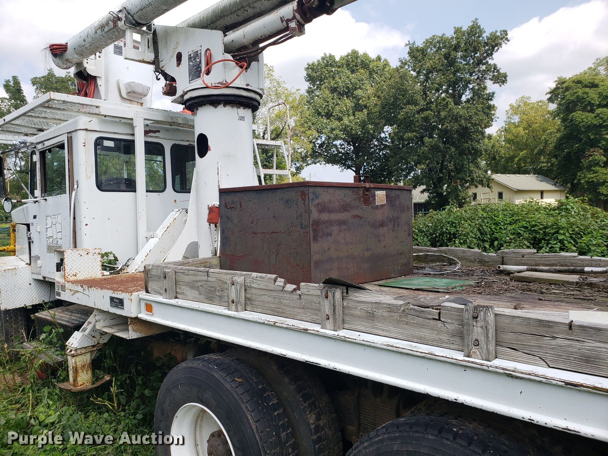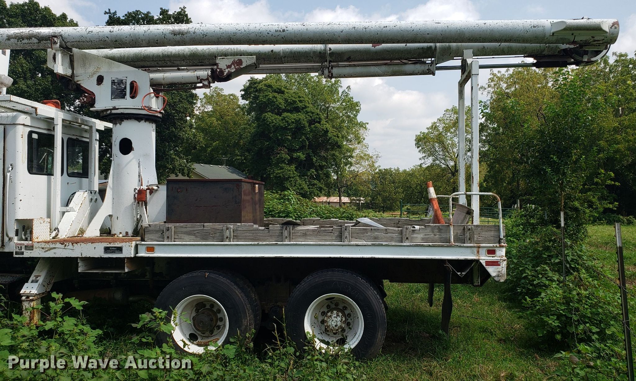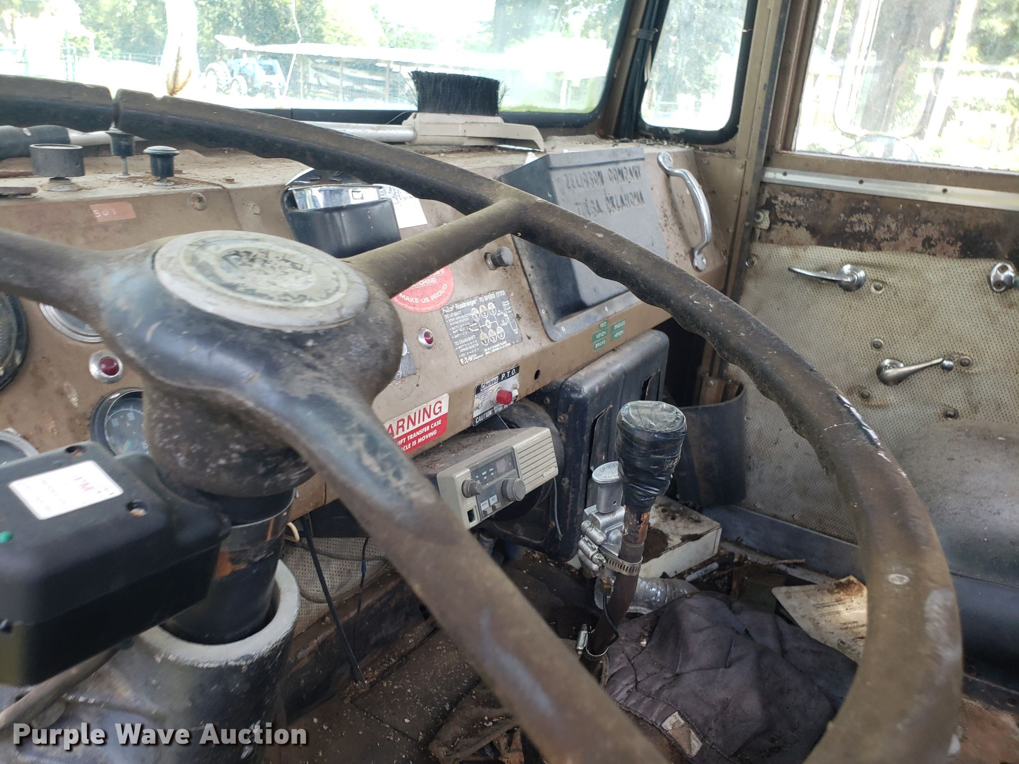 Purple Wave is selling a used Digger Derrick Truck in Missouri. This item is a 1965 Zeligson digger derrick truck with the following: Caterpillar 3208 eight cylinder diesel engine, Eaton Fuller Road Ranger 10 speed manual transmission, Tandem axle, Inter-axle differential lock, PTO, 12'L x 101"W flatbed, Altec boom, Serial 0695H0914, Winch, Spring over walking beam suspension, Air brakes, 11R22.5 tires, Unknown operating condition