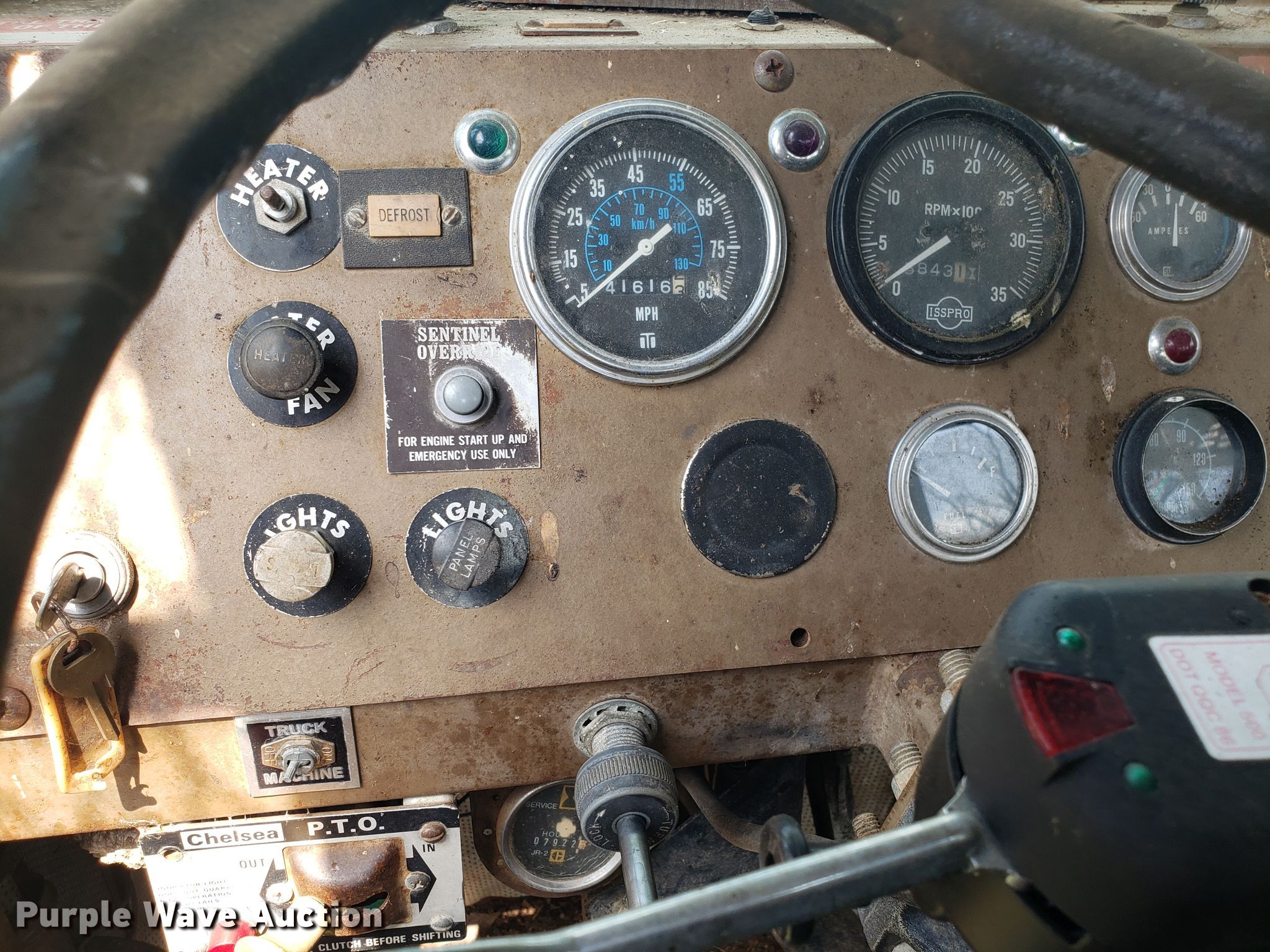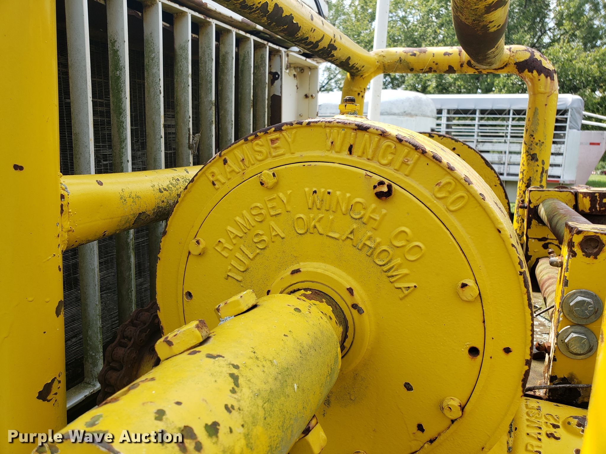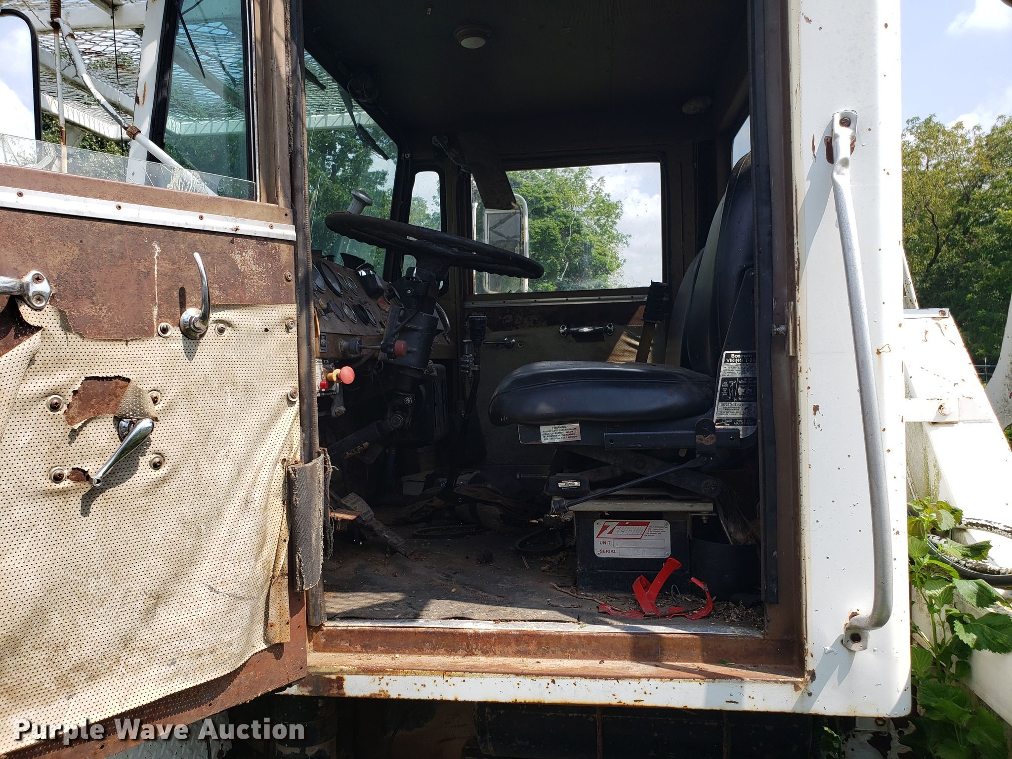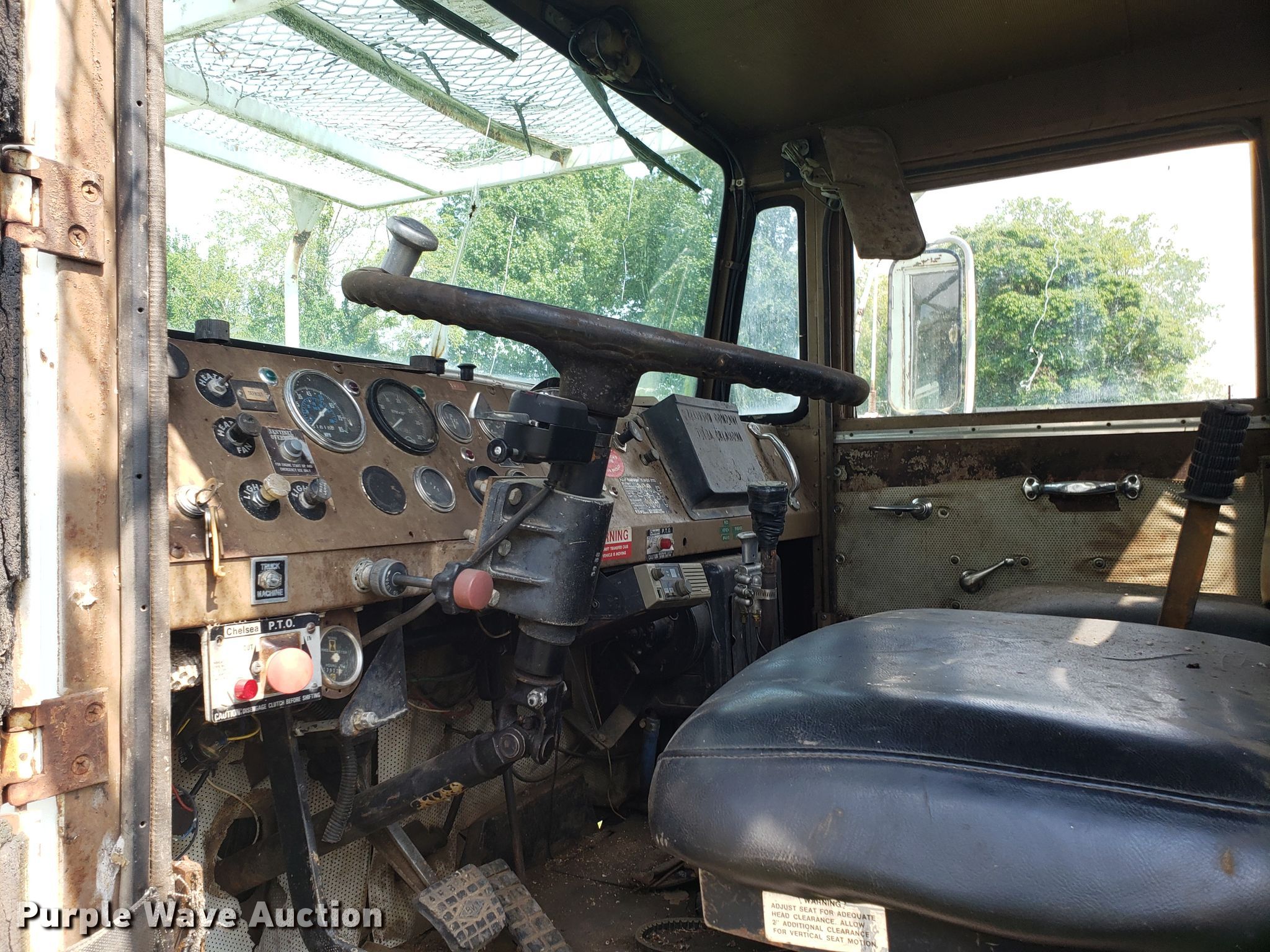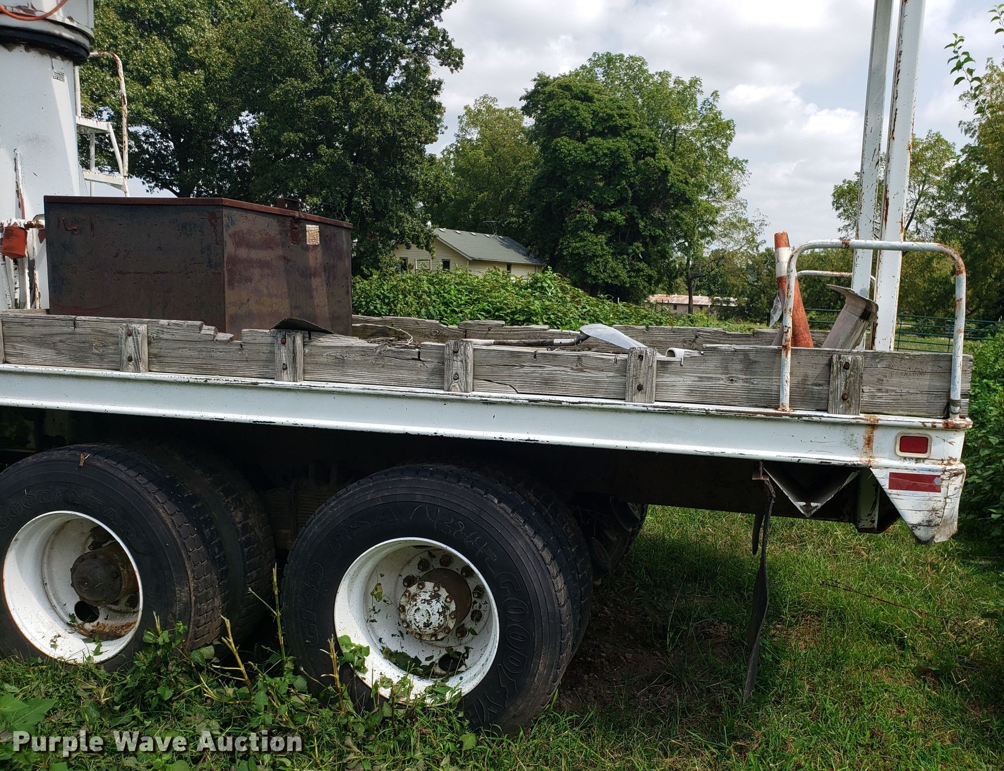 Purple Wave is selling a used Digger Derrick Truck in Missouri. This item is a 1965 Zeligson digger derrick truck with the following: Caterpillar 3208 eight cylinder diesel engine, Eaton Fuller Road Ranger 10 speed manual transmission, Tandem axle, Inter-axle differential lock, PTO, 12'L x 101"W flatbed, Altec boom, Serial 0695H0914, Winch, Spring over walking beam suspension, Air brakes, 11R22.5 tires, Unknown operating condition