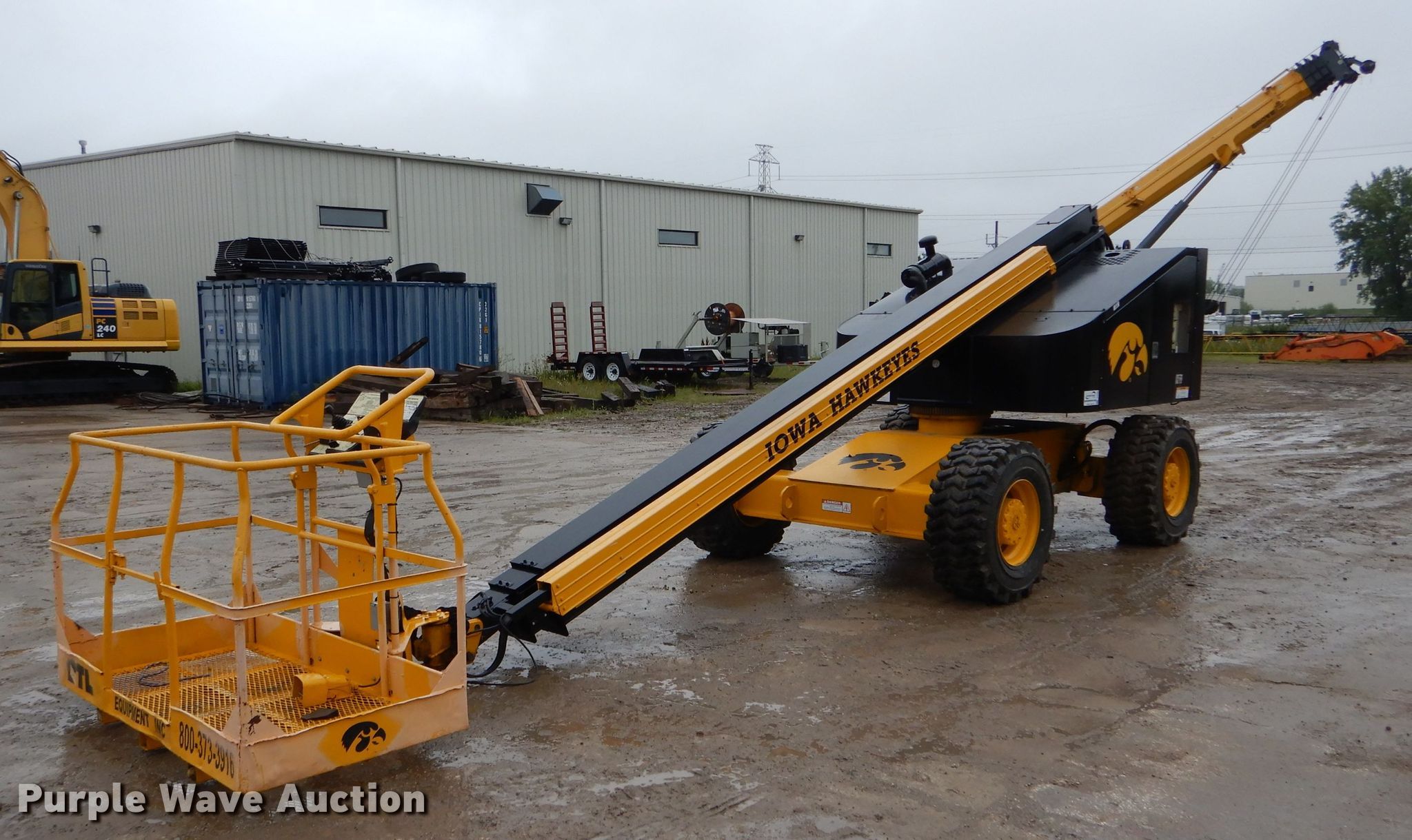 Purple Wave is selling a used Boom Lift in Iowa. This item is a Terex TB60 boom lift with the following: 6,235 hours on meter, Cummins 4B3.9 four cylinder diesel engine, 76 HP, Serial 45819291, Four wheel drive, Articulating boom, 650 lbs maximum lift capacity, 51' maximum reach, 60' maximum lift height, Hydraulic leveling, 6'L x 3'W platform, AC power outlet, Platform and ground controls, Power platform extensions, Platform rotation, Three mph travel speed, 315-19.5 tires