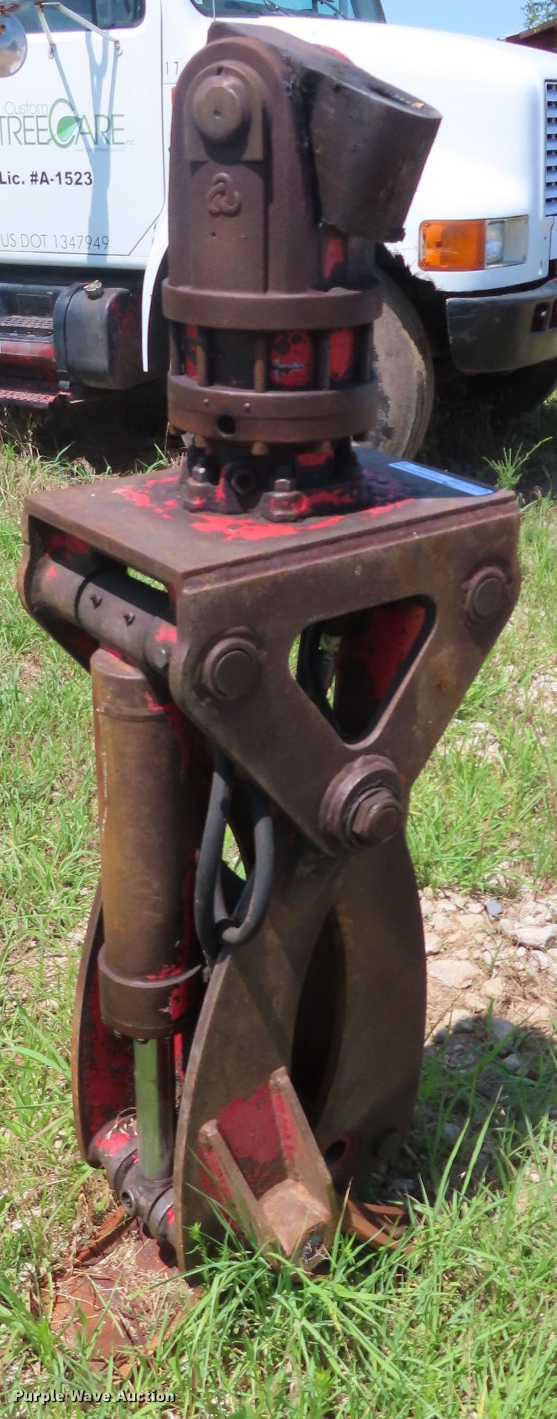 Purple Wave is selling a used Crane Attach. in Kansas. This item is a 14"W log grapple with the following: 1 3/4" pin diameter on block