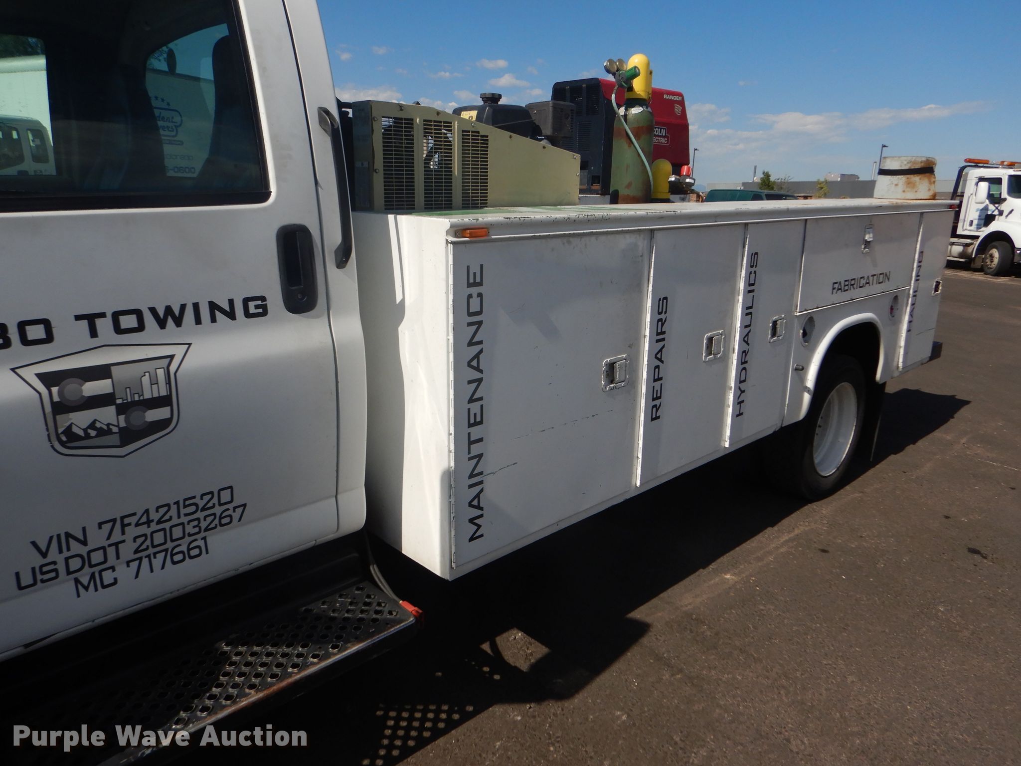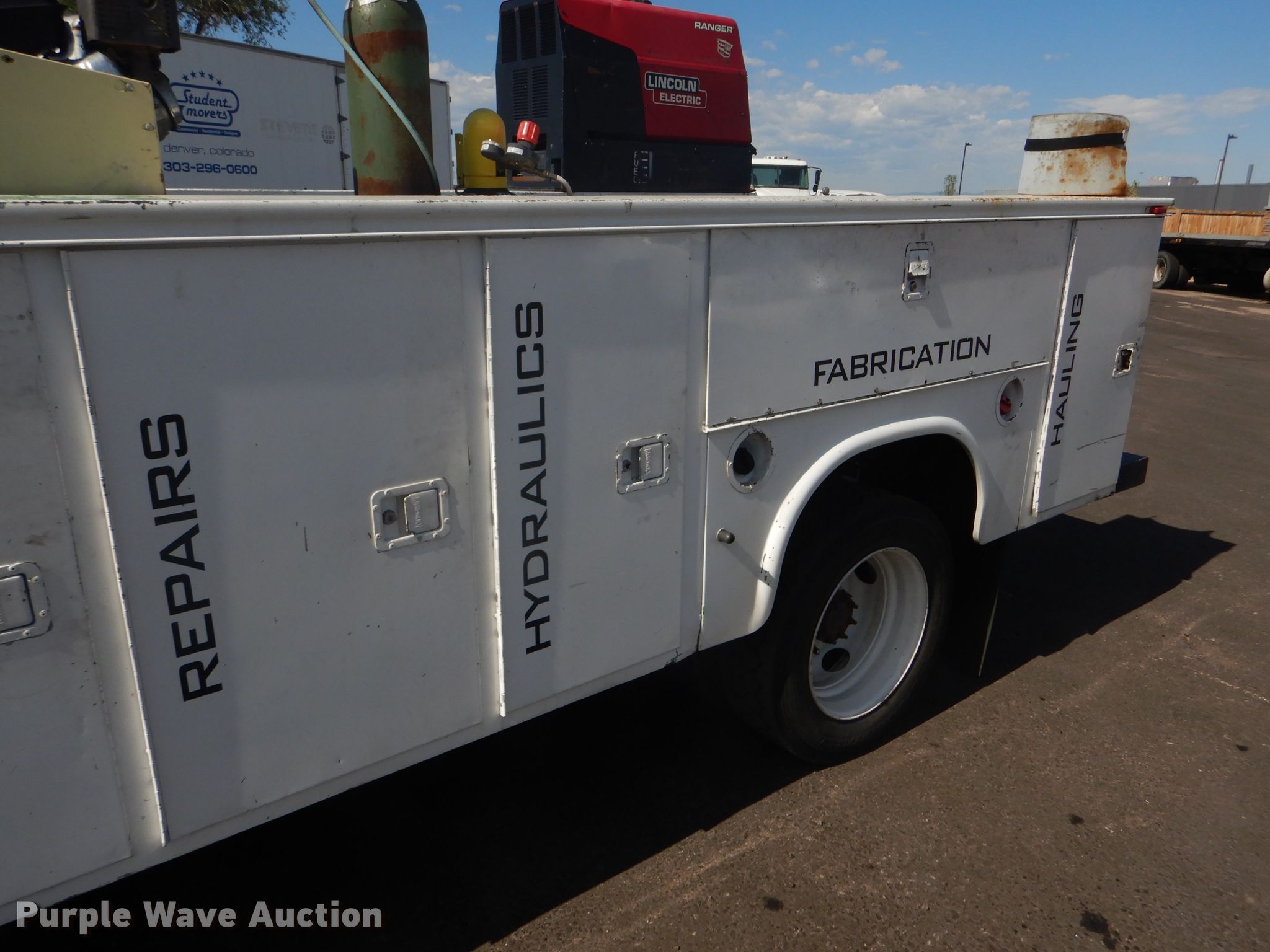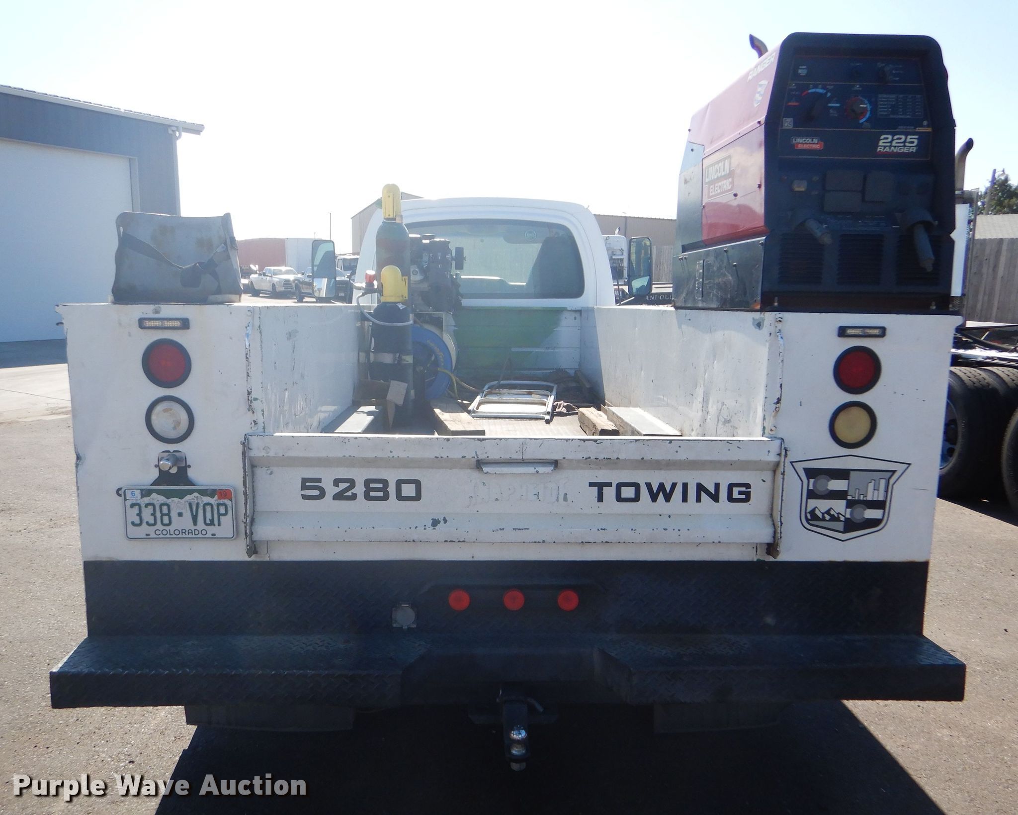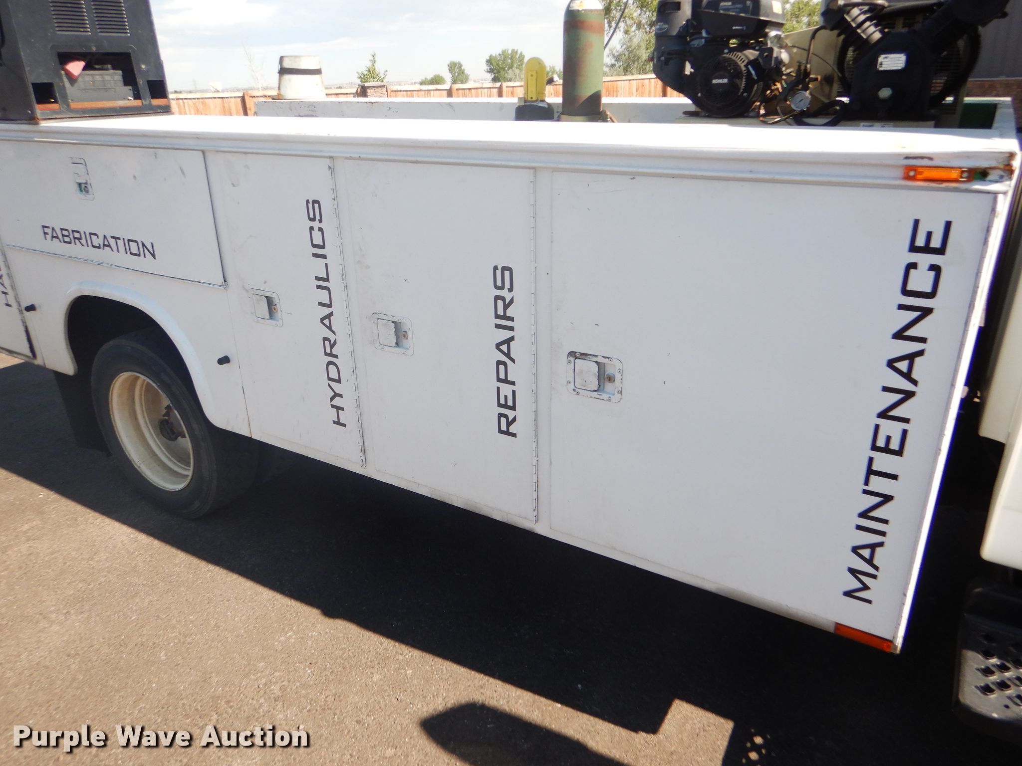 Purple Wave is selling a used Service Truck in Colorado. This item is a 2007 GMC C5500 service truck with the following: 274,559 miles on odometer, 6.6L V8 diesel engine, Allison automatic transmission, Single axle, AC and heat, Brake controller, Knapheide 6157D54J utility bed, 13'L, Torch bottle rack, Lincoln 225 Ranger welder/generator, 229 hours on meter, Gas engine, 240V outlet, (4) 120V outlets, Leads, AC/DC, Ingersoll Rand 2475F14G air compressor, Kohler Command Pro 14 gas engine, Oxygen and acetylene torch, Tools included, Spring suspension, Hydraulic brakes, 225/70R19.5 tires, GVWR 19,500 lbs