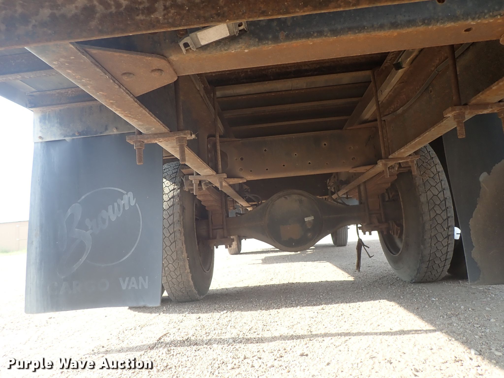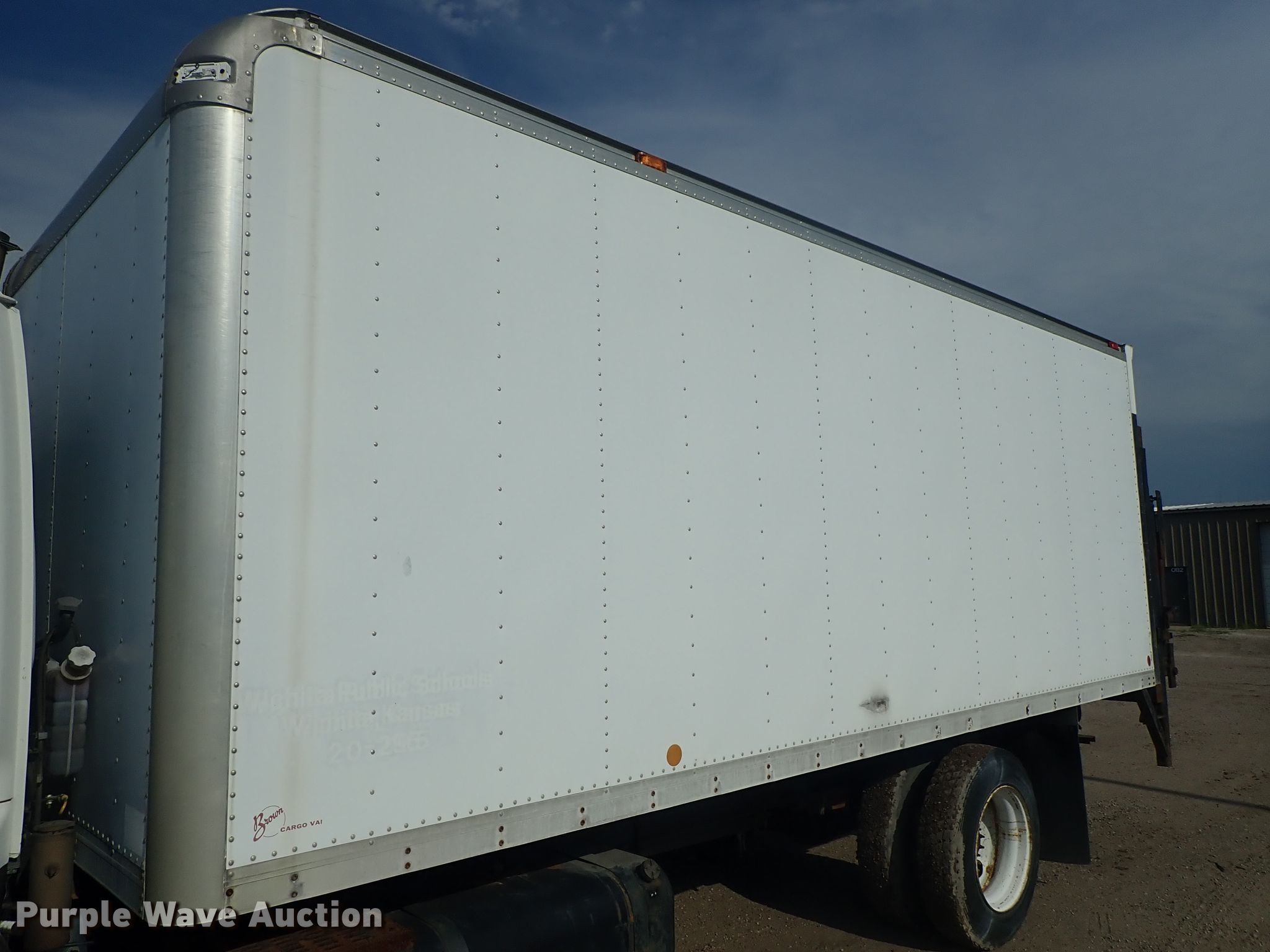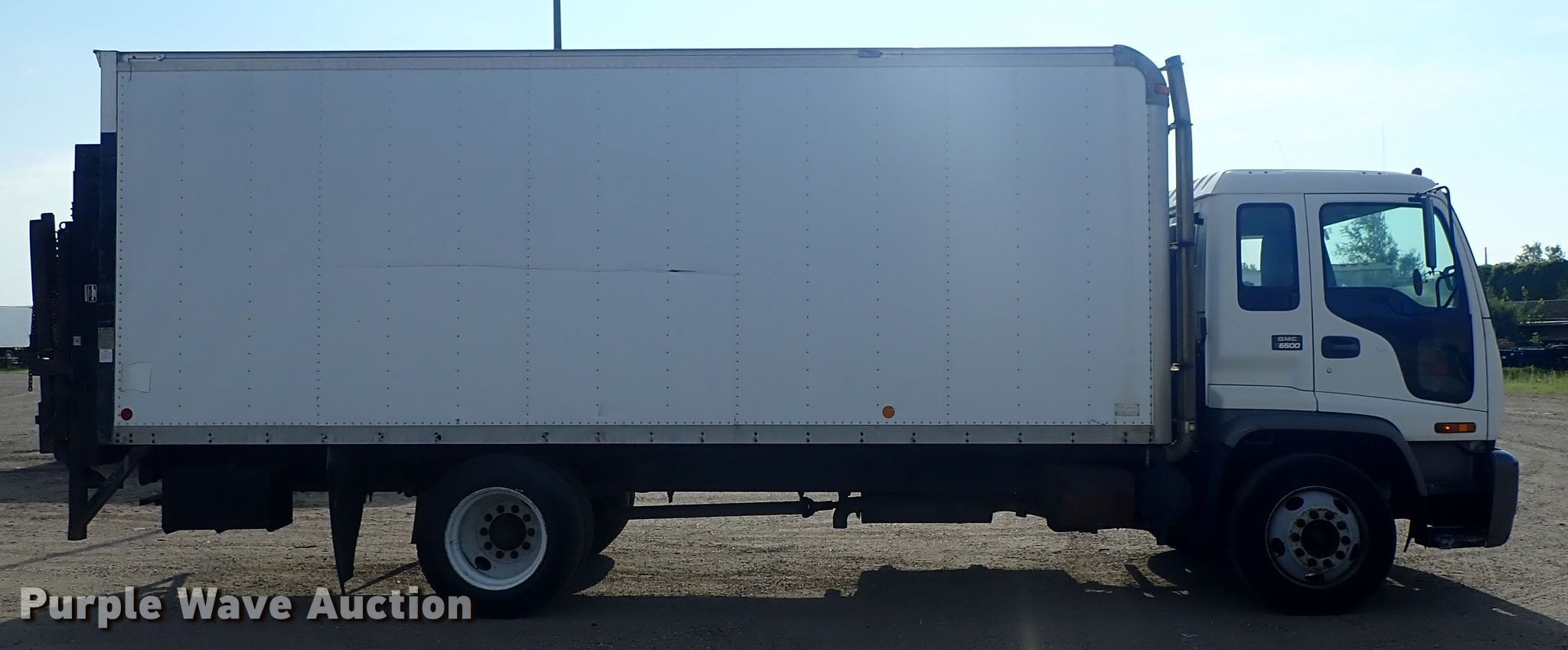 Purple Wave is selling a used Box Truck in Kansas. This item is a 1999 GMC T6500 box truck with the following: 224,851 miles on odometer, Caterpillar 3126 7.2L six cylinder diesel engine, Automatic transmission, Single axle, AC and heat, Brown box bed, 20'L x 96"W, Maxon RG-3B end gate lift, 3,000 lbs capacity,, Spring suspension, Hydraulic brakes, 9R22.5 tires, GVWR 23,100 lbs, Weak battery, Drivers door shuts hard