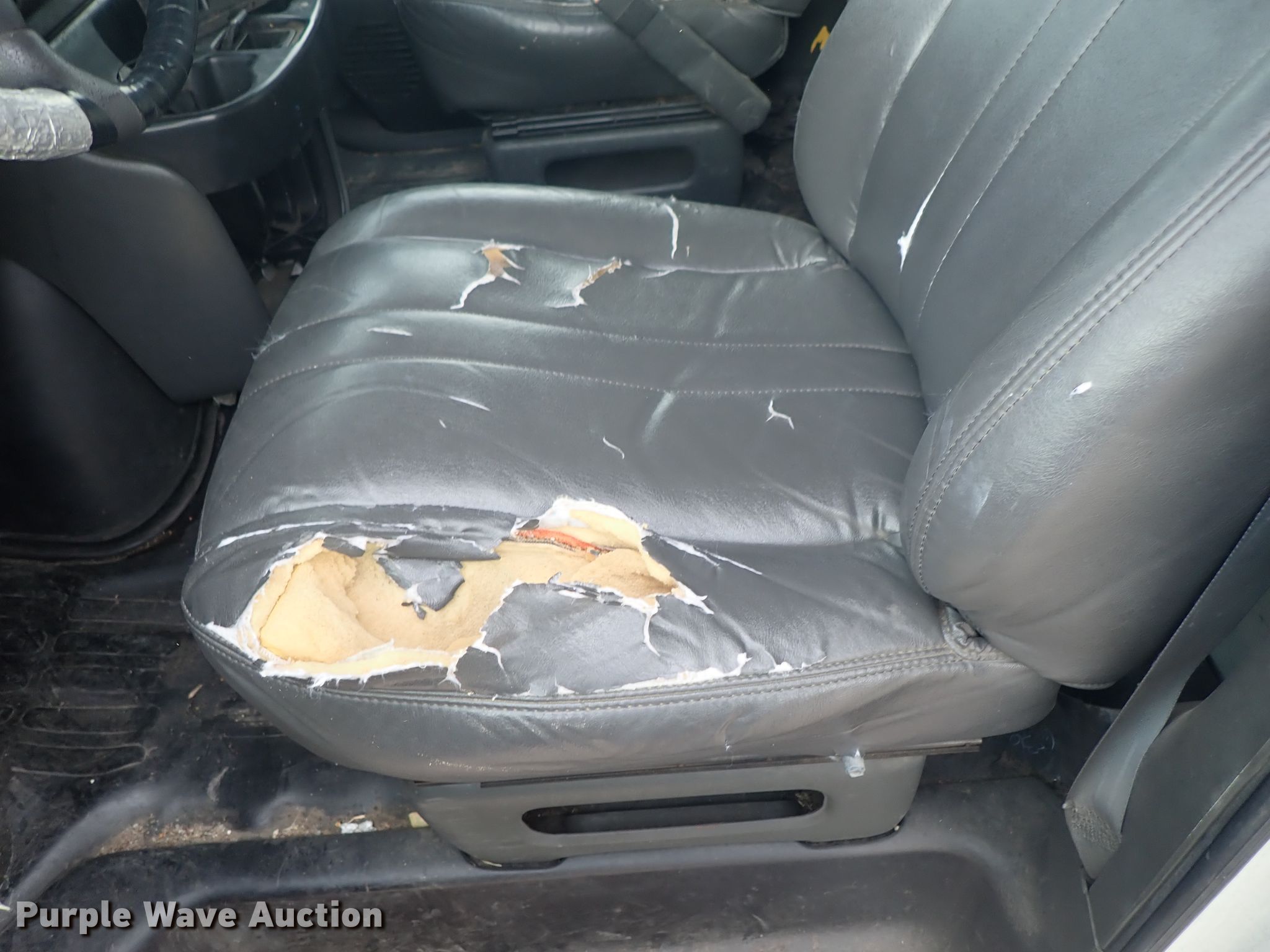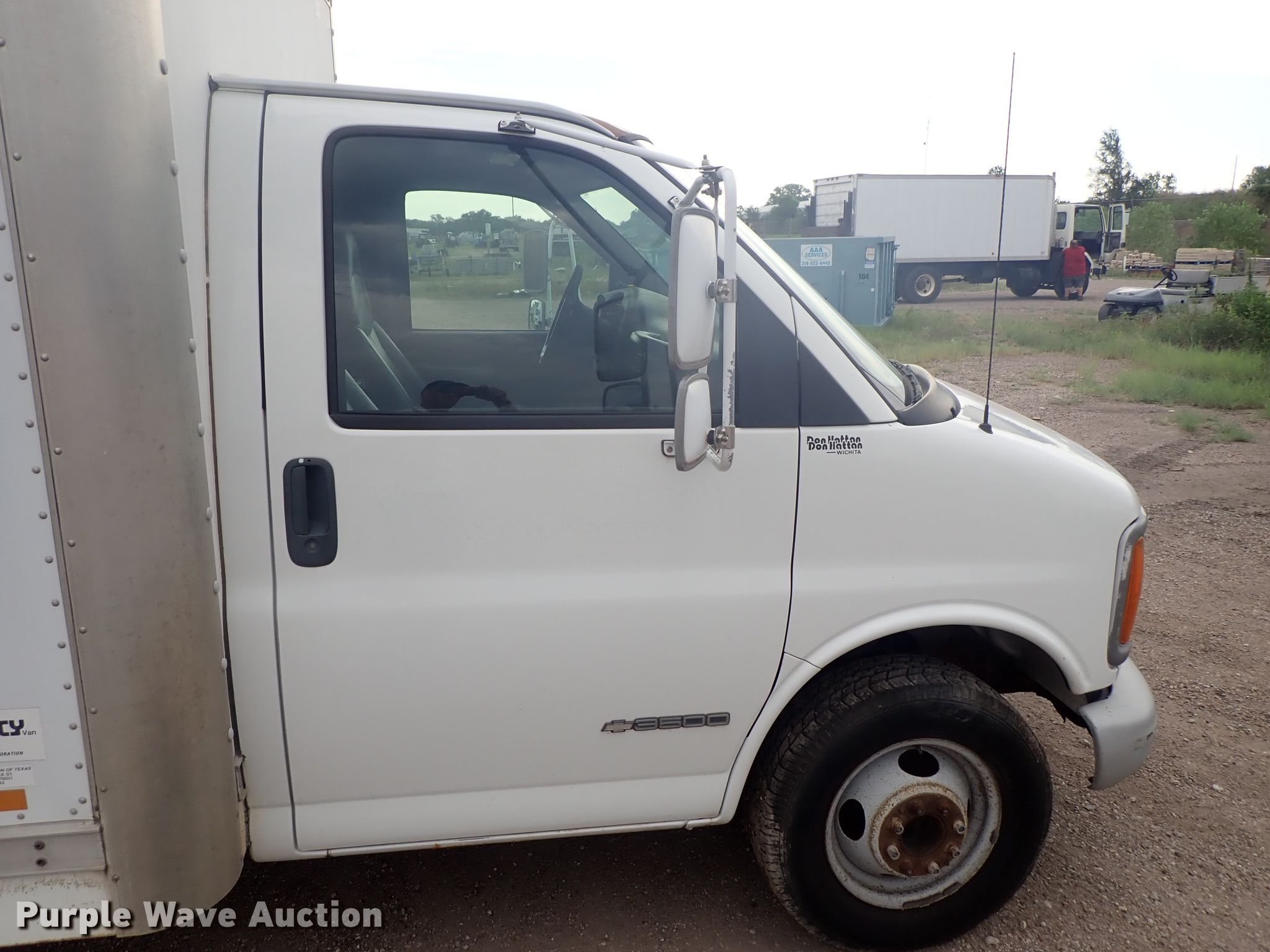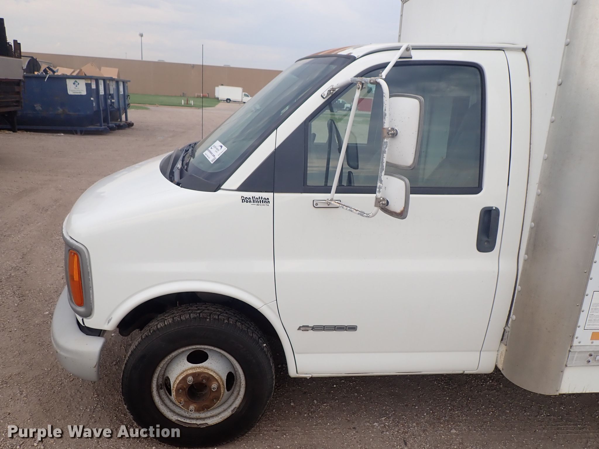 Purple Wave is selling a used Box Truck in Kansas. This item is a 2001 Chevrolet Express 3500 box truck with the following: 162,787 miles on odometer, 5.7L V8 OHV 16V gas engine, Automatic transmission, Single axle, AC and heat, Supreme box bed, 12'L x 96"W, Spring suspension, Hydraulic brakes, 225/75R16 tires, Weak battery