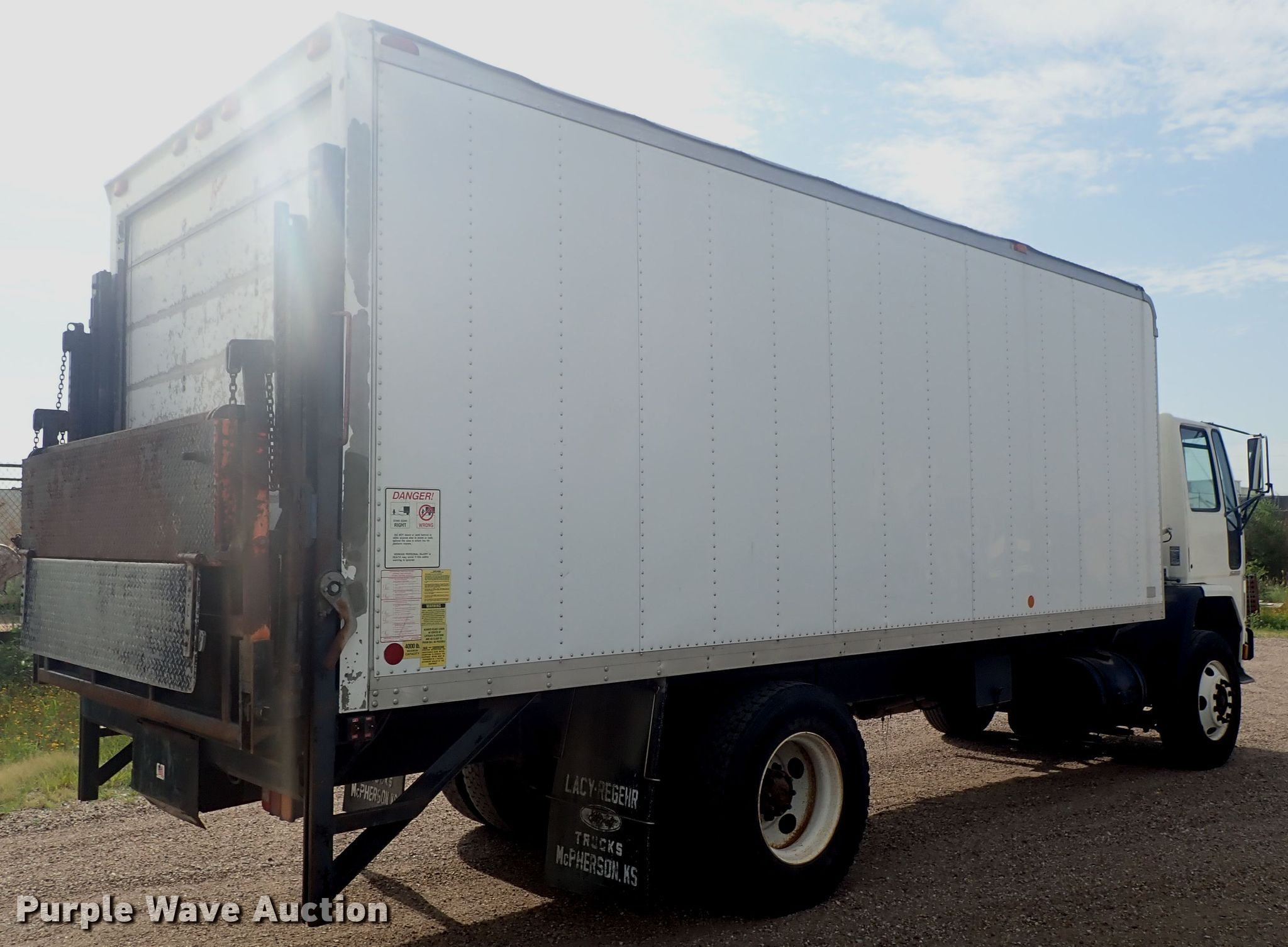 Purple Wave is selling a used Box Truck in Kansas. This item is a 1994 Ford CF7000 box truck with the following: 118,825 miles on odometer, Cummins 5.9L L6 diesel engine, Automatic transmission, Single axle, AC and heat, PTO, Brown box bed, 20'L x 96"W, End gate lift, 4,000 lbs capacity,, Spring suspension, Air brakes, 189" wheelbase, 11R22.5 tires, GVWR 30,000 lbs, Cracked windshield, Weak battery