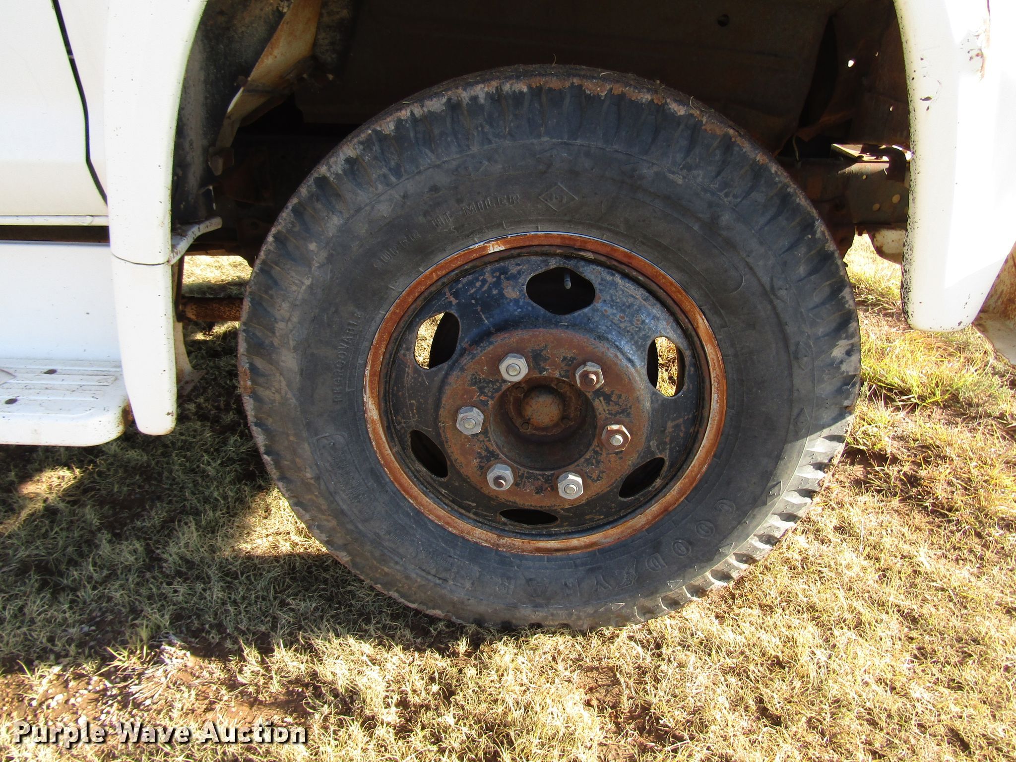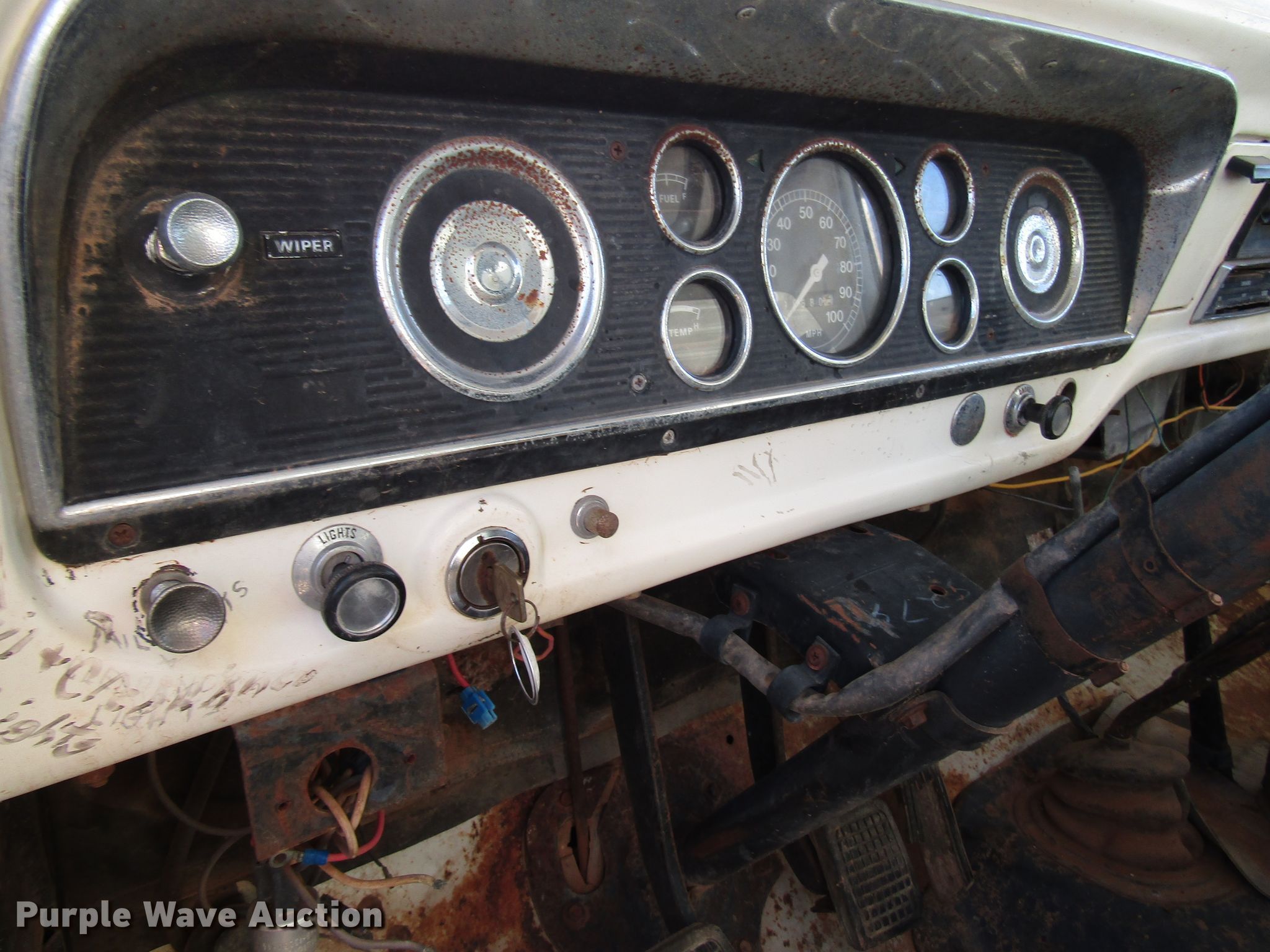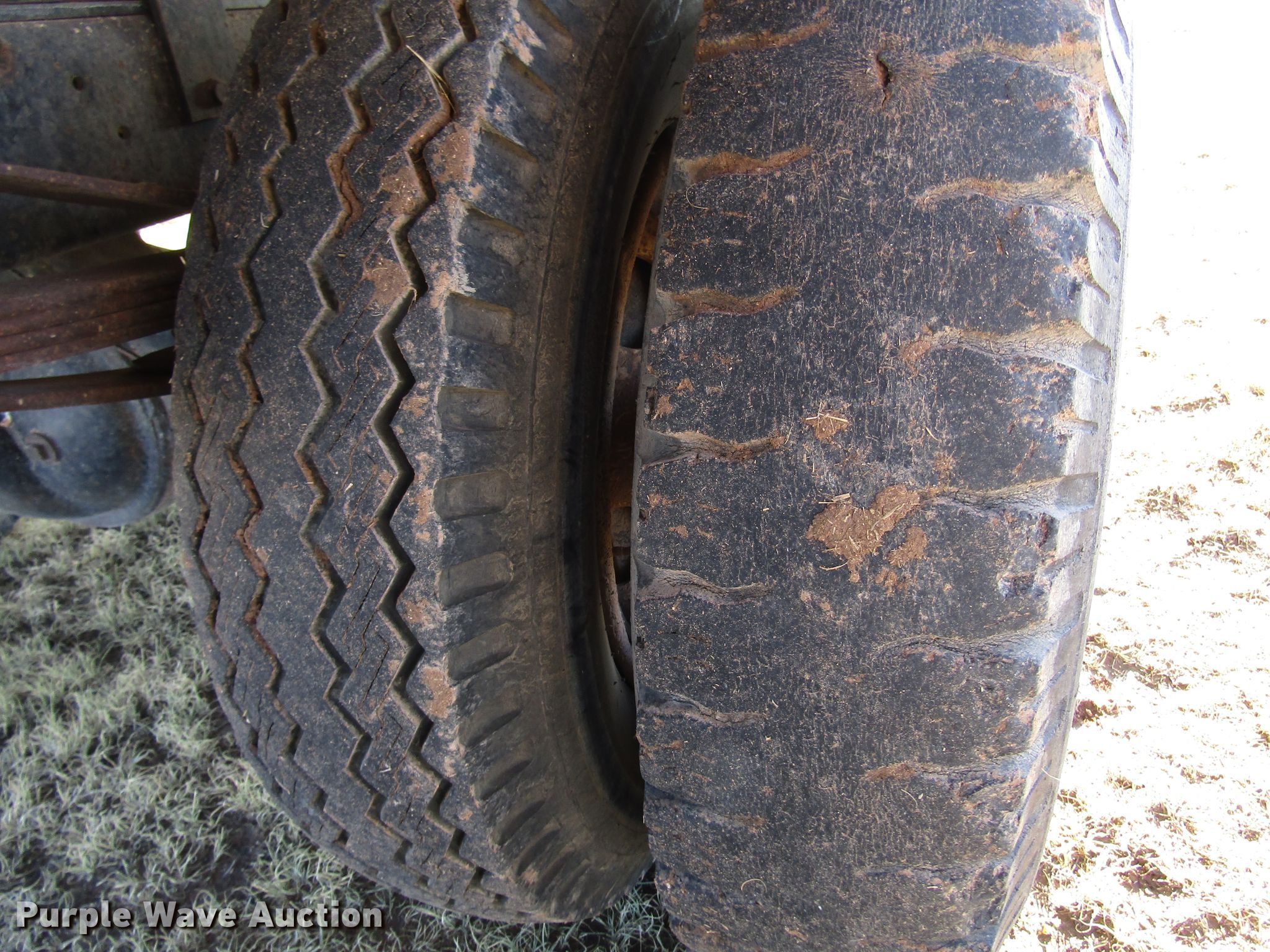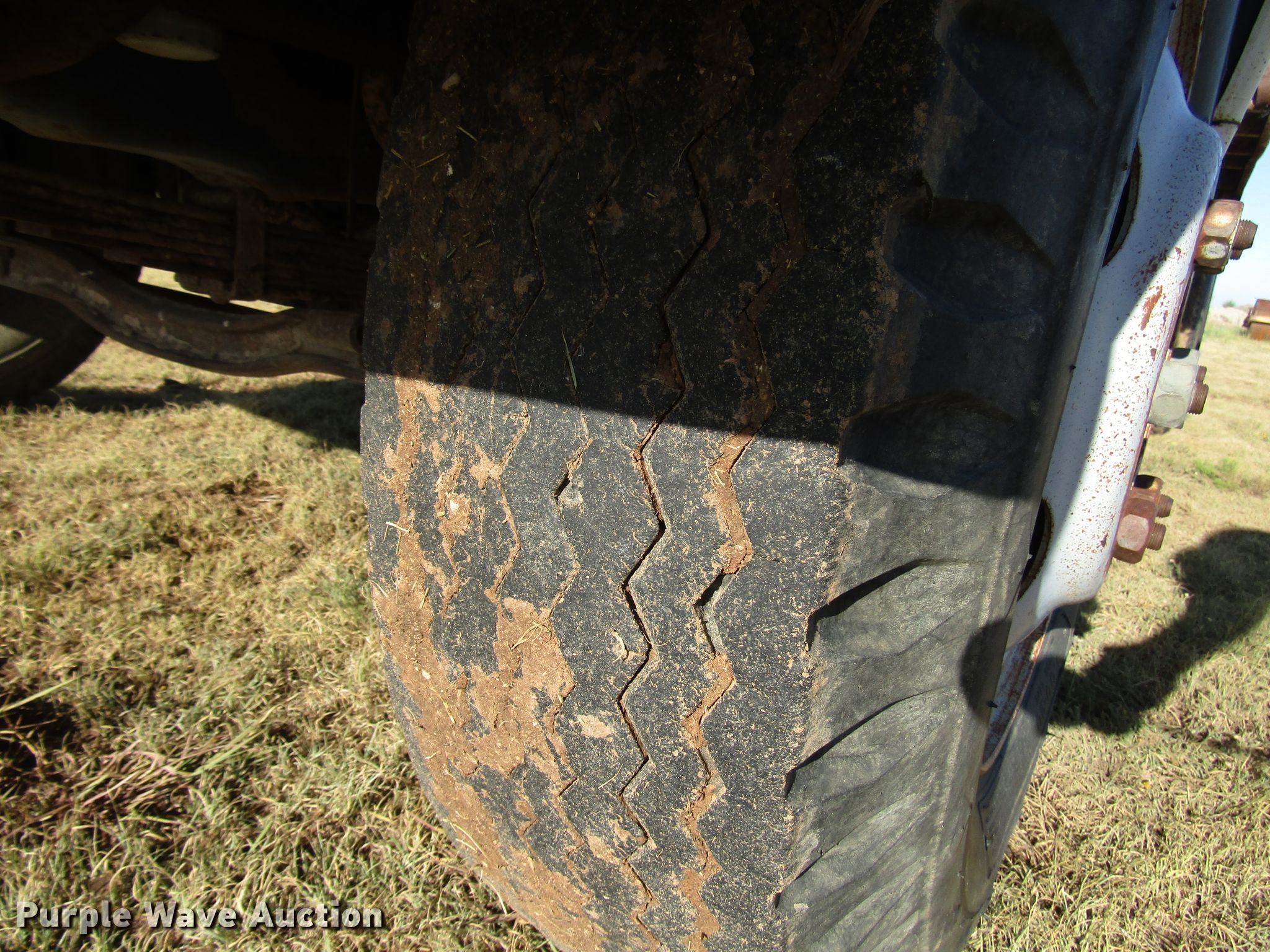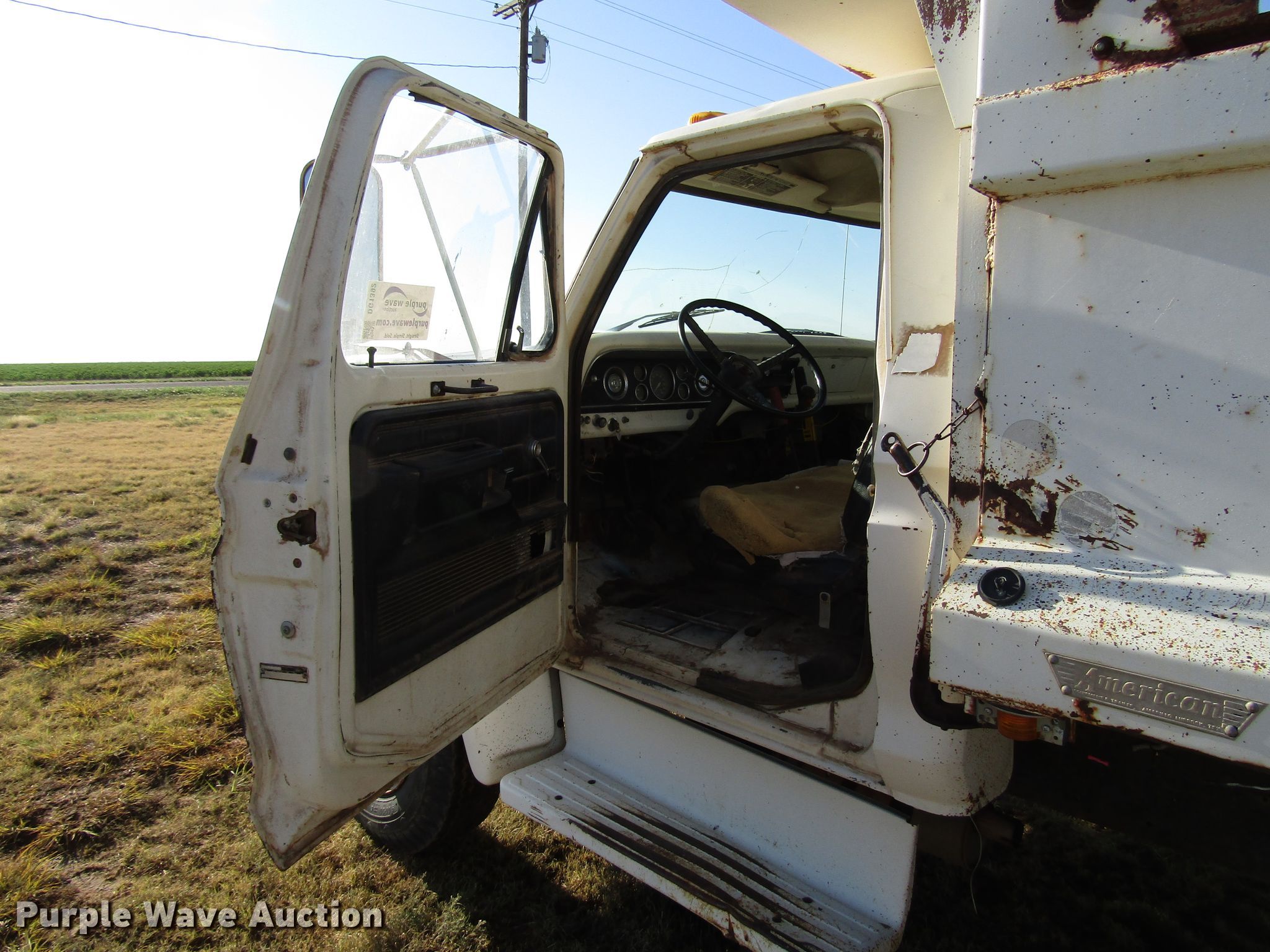 Purple Wave is selling a used Construction Dump Truck in Texas. This item is a 1977 Ford F600 dump truck with the following: 98,580 miles on odometer, Eight cylinder gas engine, Eight speed manual transmission, Single axle, Peabody 402F steel dump bed, 10'L x 96"W, 27" side height, 6" side board height, Single ram hoist, Manual end gate, Spring suspension, Hydraulic brakes, 194" wheelbase, 9.00-20 tires, GVWR 19,200 lbs, Cracked windshield