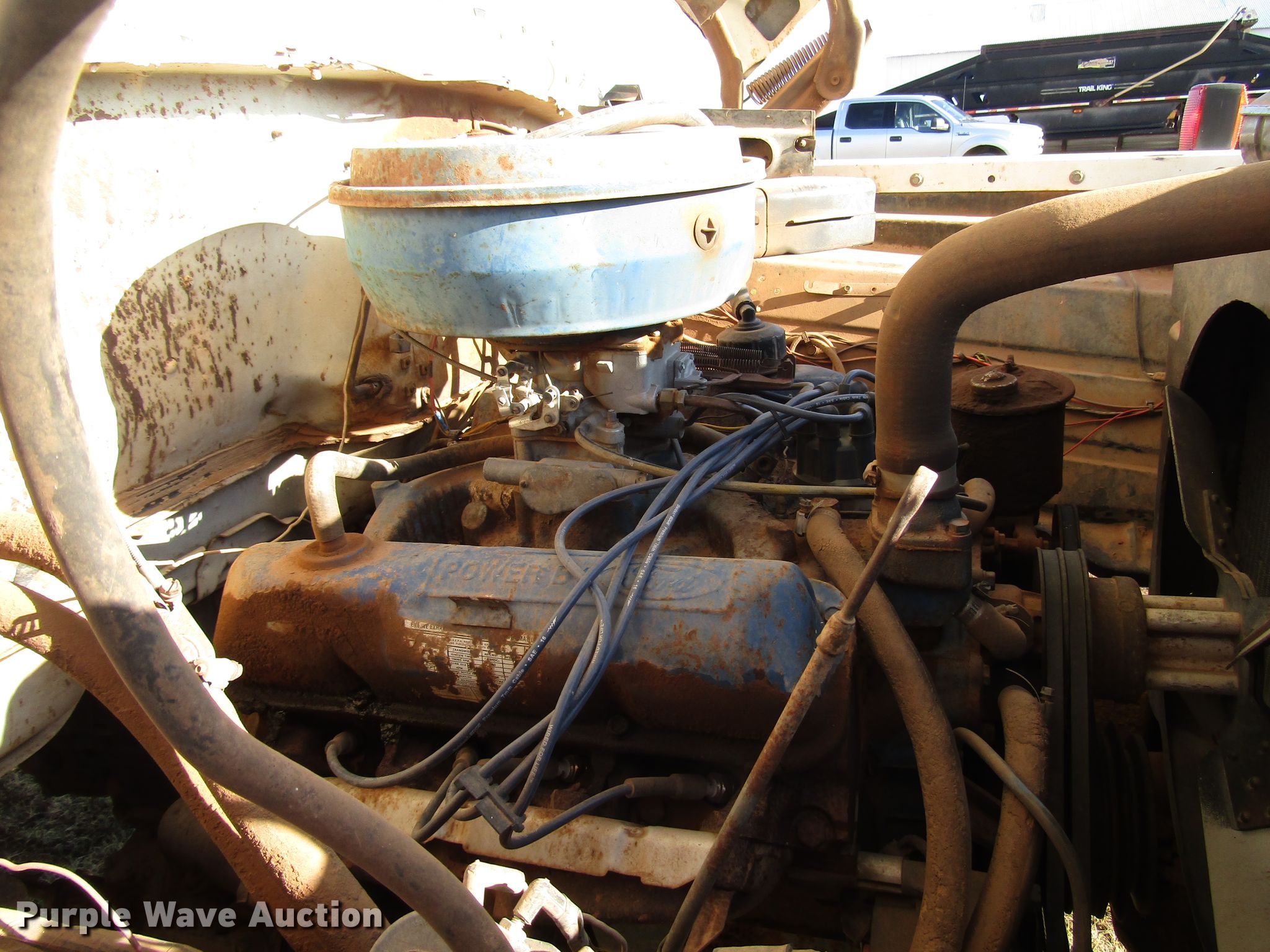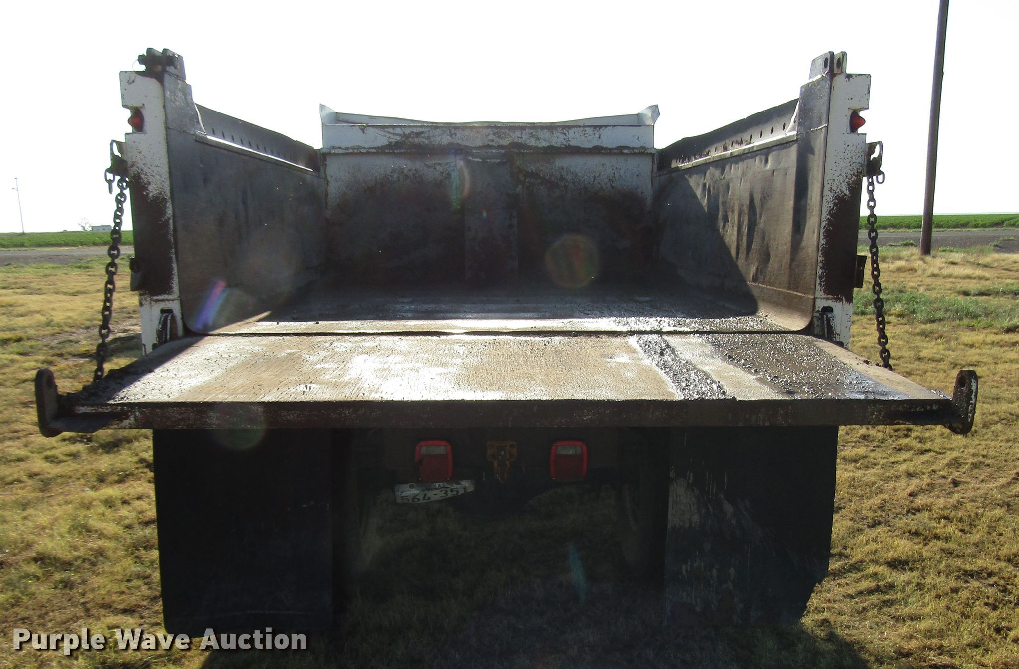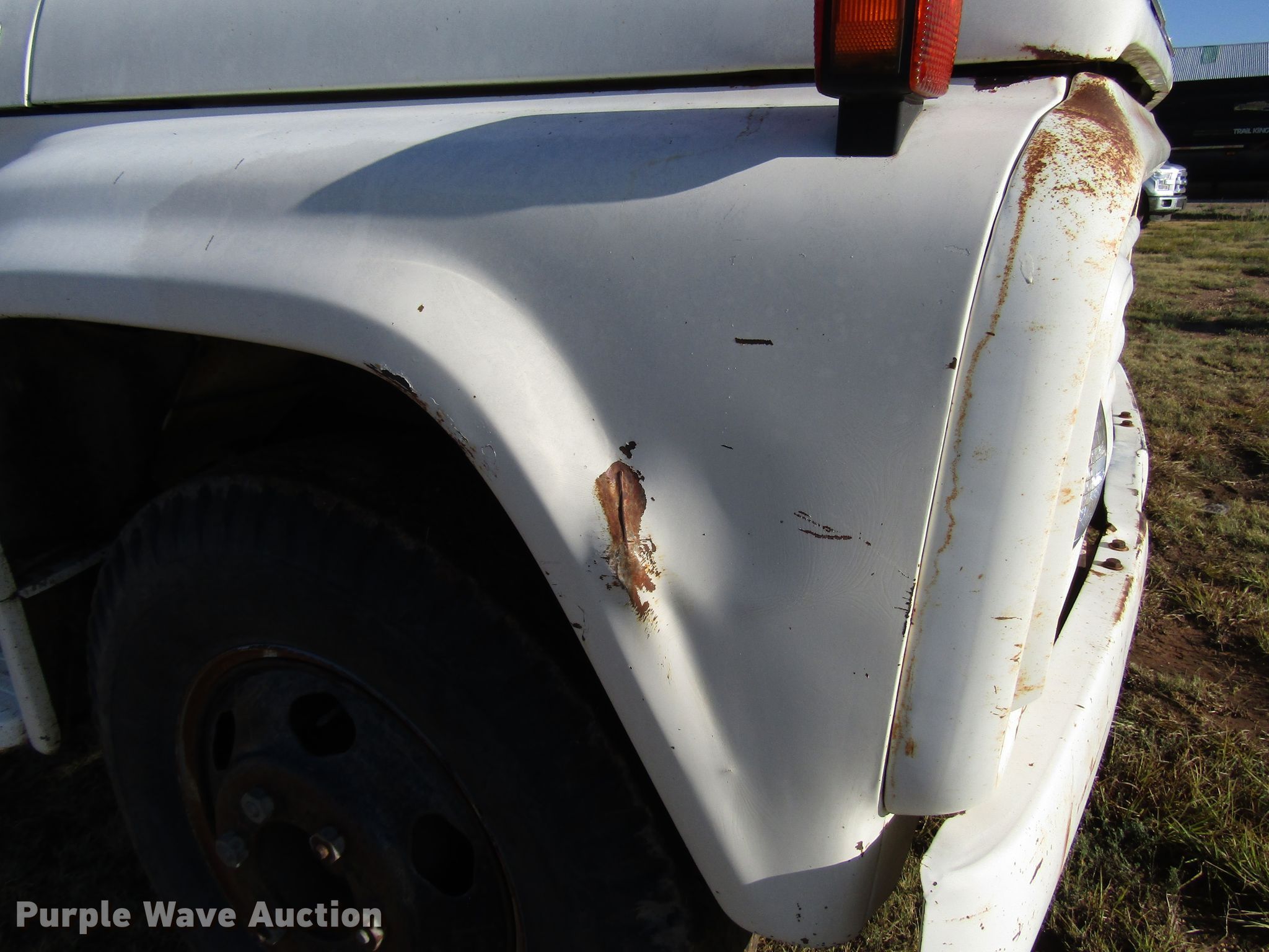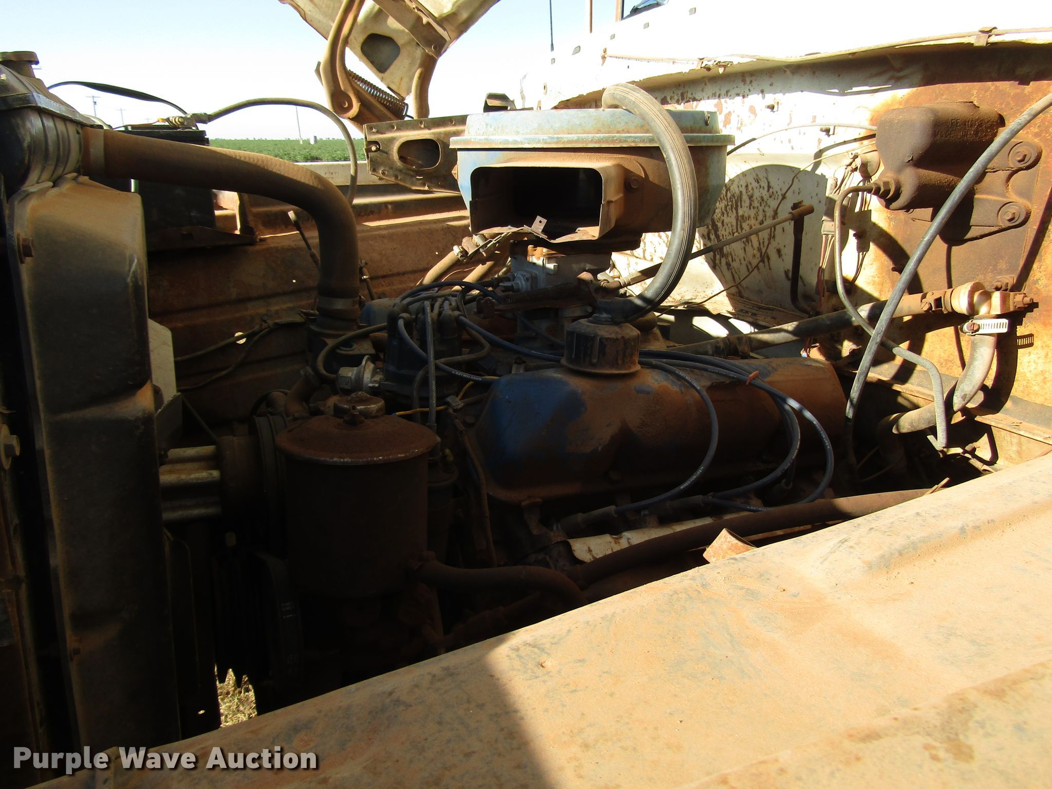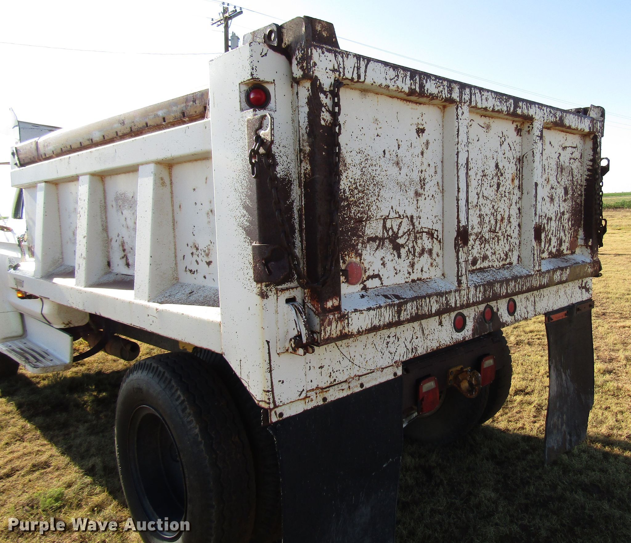Purple Wave is selling a used Construction Dump Truck in Texas. This item is a 1977 Ford F600 dump truck with the following: 98,580 miles on odometer, Eight cylinder gas engine, Eight speed manual transmission, Single axle, Peabody 402F steel dump bed, 10'L x 96"W, 27" side height, 6" side board height, Single ram hoist, Manual end gate, Spring suspension, Hydraulic brakes, 194" wheelbase, 9.00-20 tires, GVWR 19,200 lbs, Cracked windshield