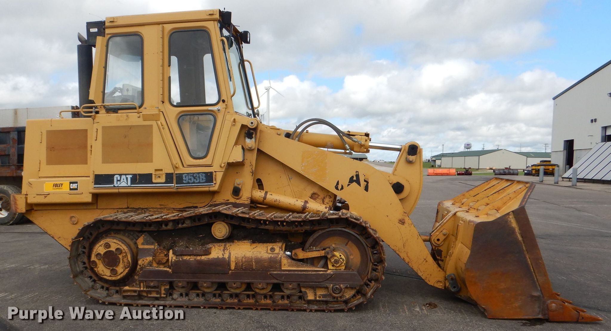 Purple Wave is selling a used Crawler Loader in Kansas. This item is a 1995 Caterpillar 953B track loader with the following: Caterpillar 3116 diesel engine, Serial 4TF19750, Hydrostatic transmission, Enclosed cab, 94"W general purpose bucket, Bolt-on cutting edge, (8) teeth, Five bottom rollers, 20"W double grouser track pads, Serial 5MK02163, Unit# 653
