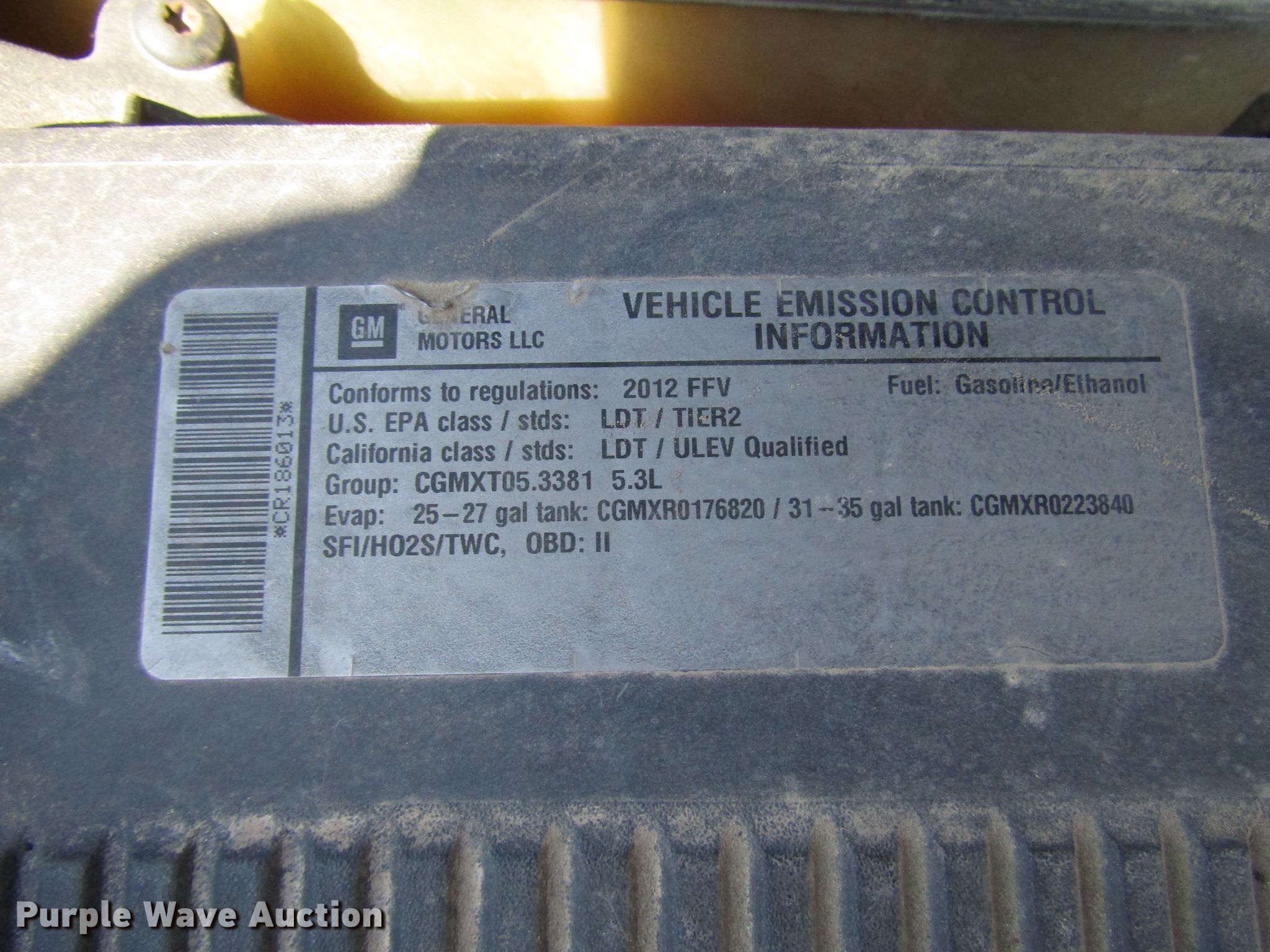 Purple Wave is selling a used Passenger Vehicle in Texas. This item is a 2012 Chevrolet Tahoe Police SUV with the following: 150,083 miles on odometer, 5.3L V8 OHV 16V FFV gas engine, Automatic transmission, AC and heat, Cruise, Power windows, locks, and seats, 265/60R17 tires, Dead battery, TPMS light on