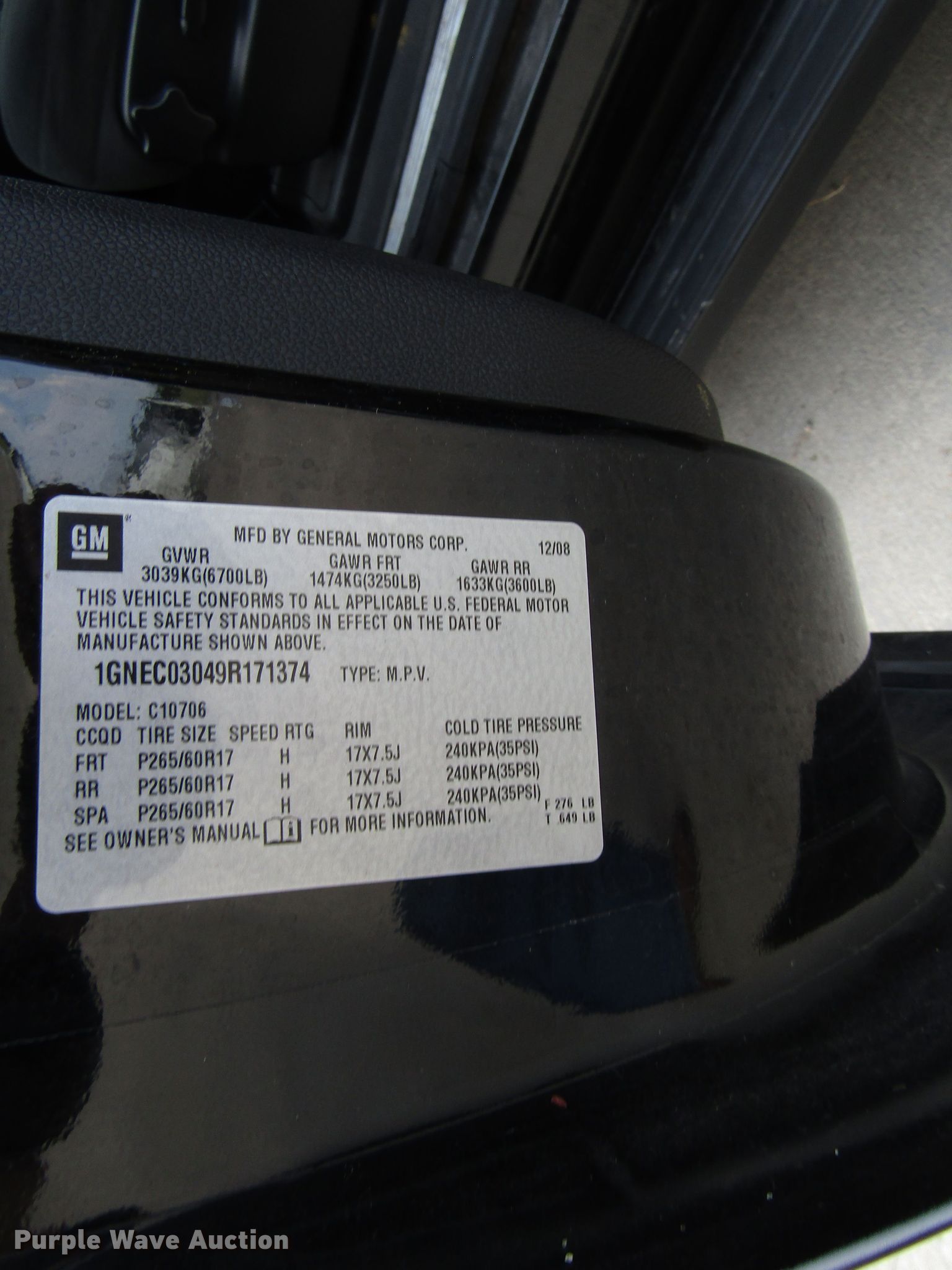 Purple Wave is selling a used Passenger Vehicle in Texas. This item is a 2009 Chevrolet Tahoe Police SUV with the following: 114,650 miles on odometer, 5.3L V8 OHV 16V FFV gas engine, Automatic transmission, AC and heat, Cruise, Power windows, locks, and seats, 265/60R17 tires, Dead batteries, ABS light on, TPMS light on