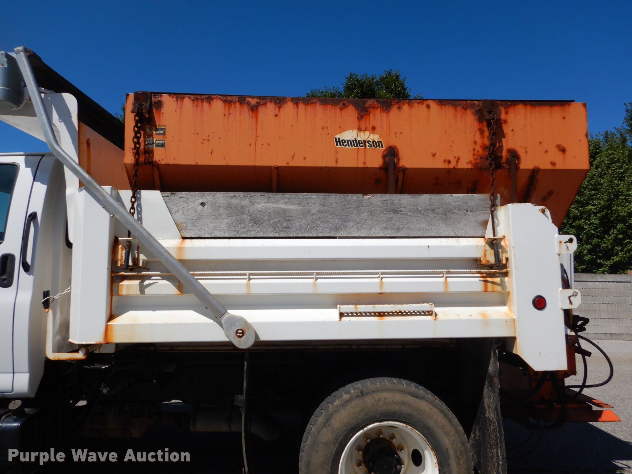 2009 Chevrolet C8500 dump truck. 41,023 miles on odometer, Isuzu 6HK1-TC 7.8L L6 diesel engine, Allison automatic transmission, Single axle, AC and heat, PTO, 10'L x 84" steel dump bed 24" side height, 12" side board height, Electric roll tarp, Single ram hoist, Manual end gate, Henderson 10x36 plow 10'W, Henderson FSHx10x60 spreader, Spring suspension, Air brakes, 153" wheelbase, 11R22.5 tires, GVWR 35,350 lbs, FAWR 12,350 lbs, RAWR 23,000 lbs, End gate included. Missouri title. 1GBP8C1B99F408360. City of Chesterfield. Chesterfield, MO 63017