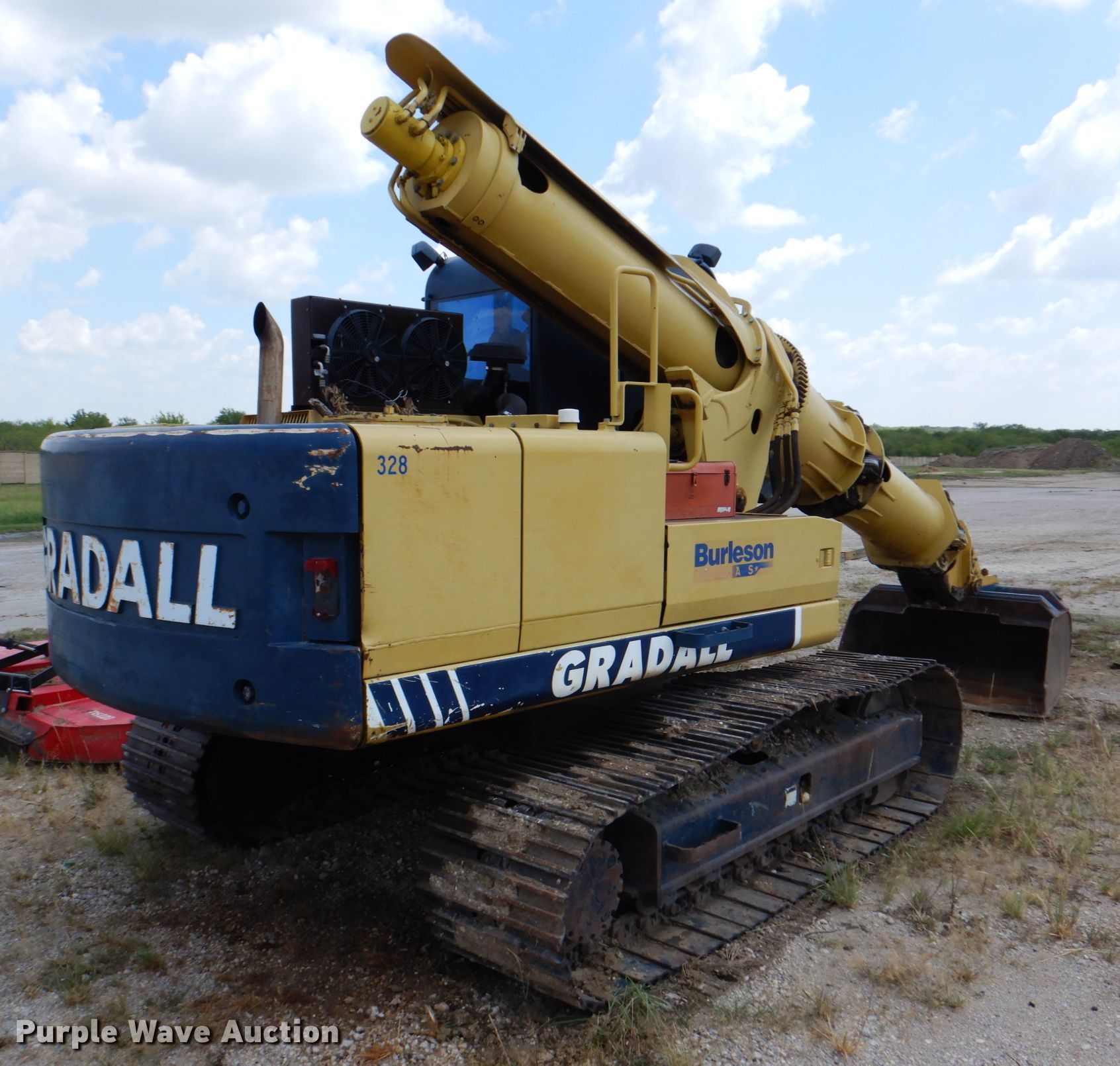 2000 Gradall XL2200 excavator. Cummins 4BT3.9-C 3.9L four cylinder diesel engine Serial 46646367, Hydrostatic transmission, Enclosed cab, 60"W bucket Weld-on cutting edge, Counter weights, 24"W steel triple grouser track pads, Glass cracked, Hydraulic leak, Track rails and rollers worn, Fire damage to engine compartment Batteries caught fire, Serial 0221419. City Of Burleson. 725 SE John Jones Dr. Burleson, TX 76028