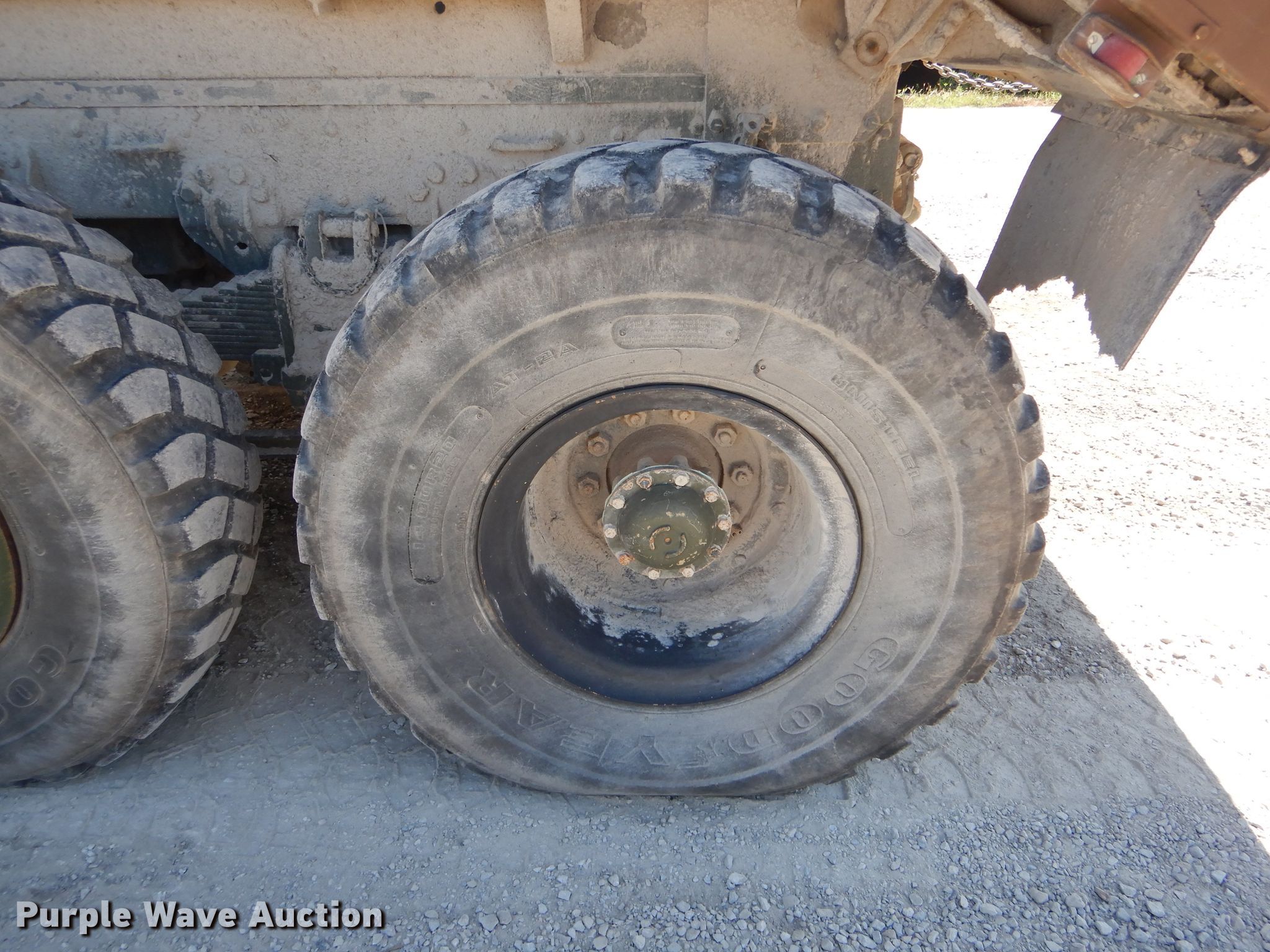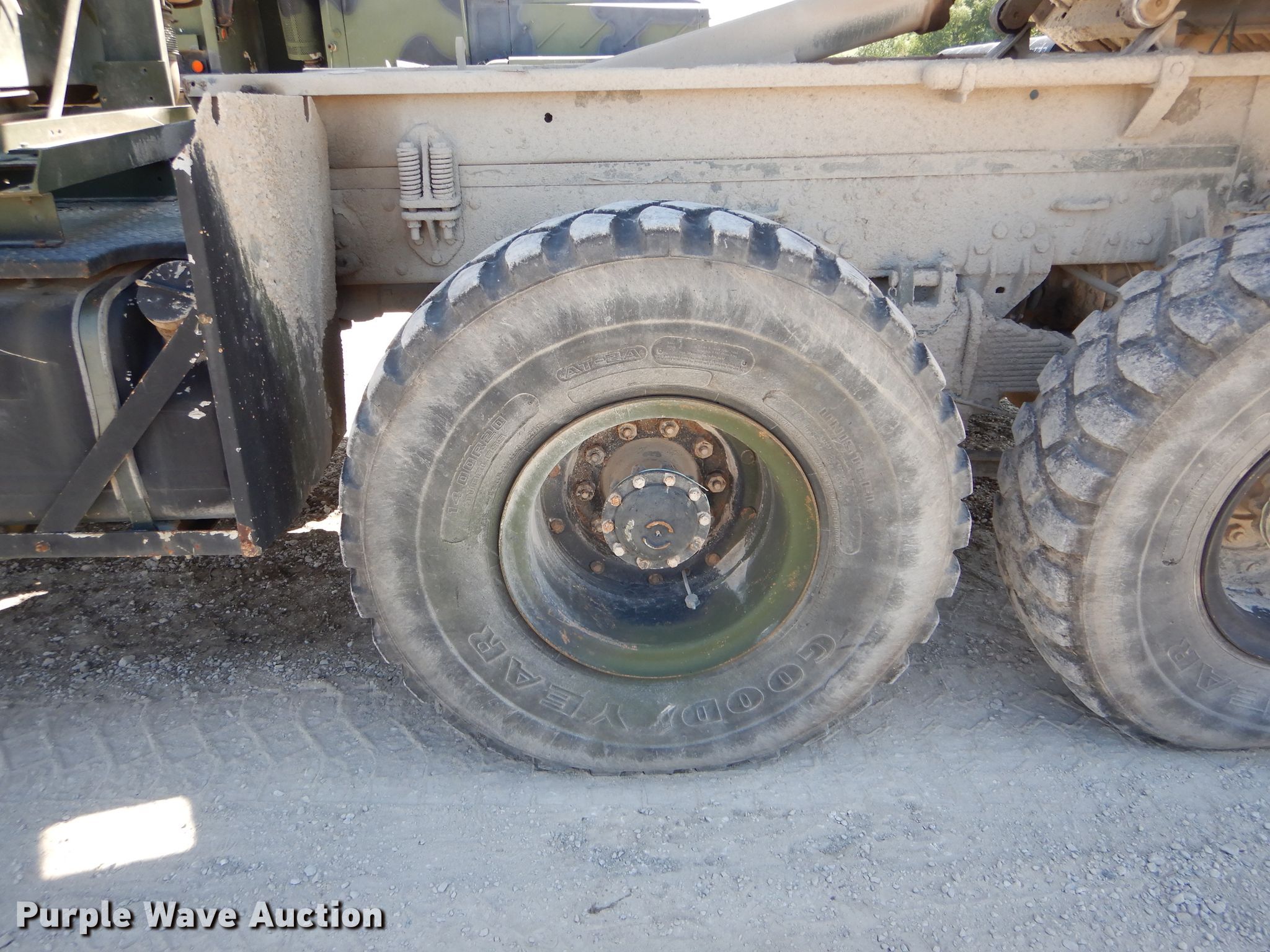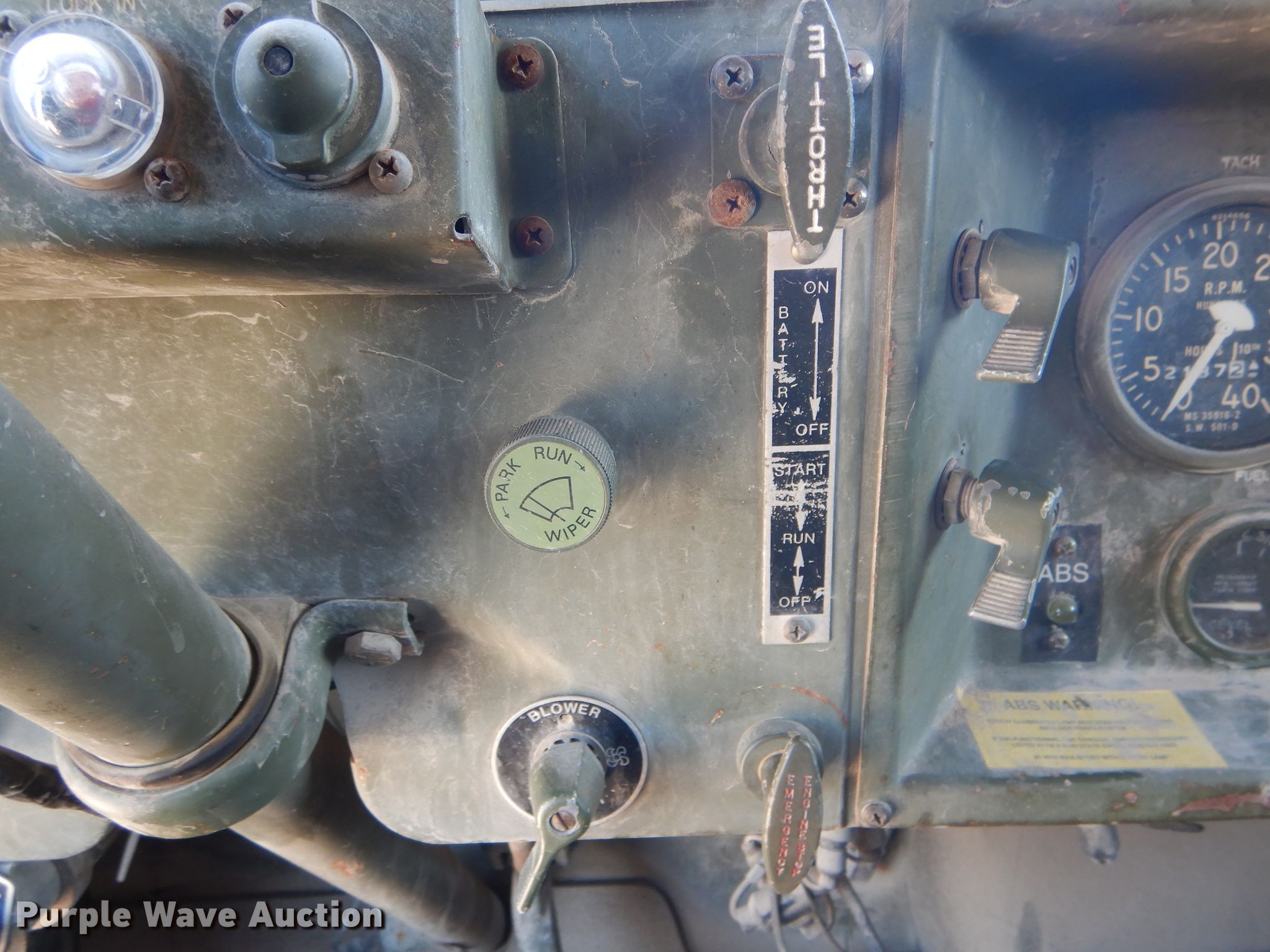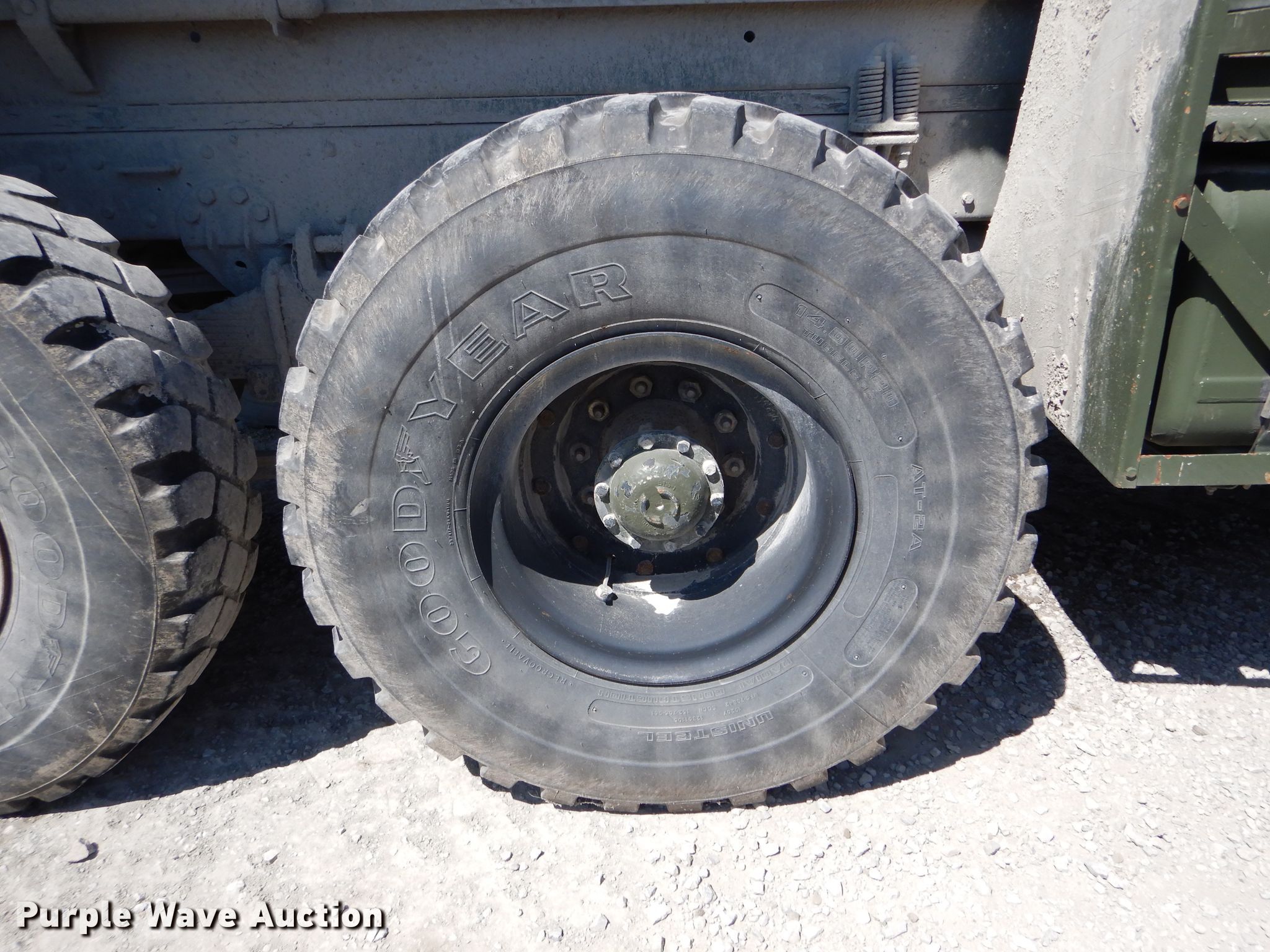 Purple Wave is selling a used Construction Dump Truck in Missouri. This item is a 1991 Am General M929A2 dump truck with the following: 30,479 miles on odometer, 2,187 hours on meter, Cummins six cylinder diesel engine, Serial 60304765, Automatic transmission, Tandem axle, Full differential lock, Heat, PTO, 10'4"L x 95"W steel dump bed, 29" side height, 12" side board height, Dual ram hoist, Manual end gate, Spring suspension, Air brakes, 168" wheelbase, 14.00R20 tires, GVWR 33,730 lbs, FAWR 10,090 lbs, IAWR 11,820 lbs, RAWR 11,820 lbs