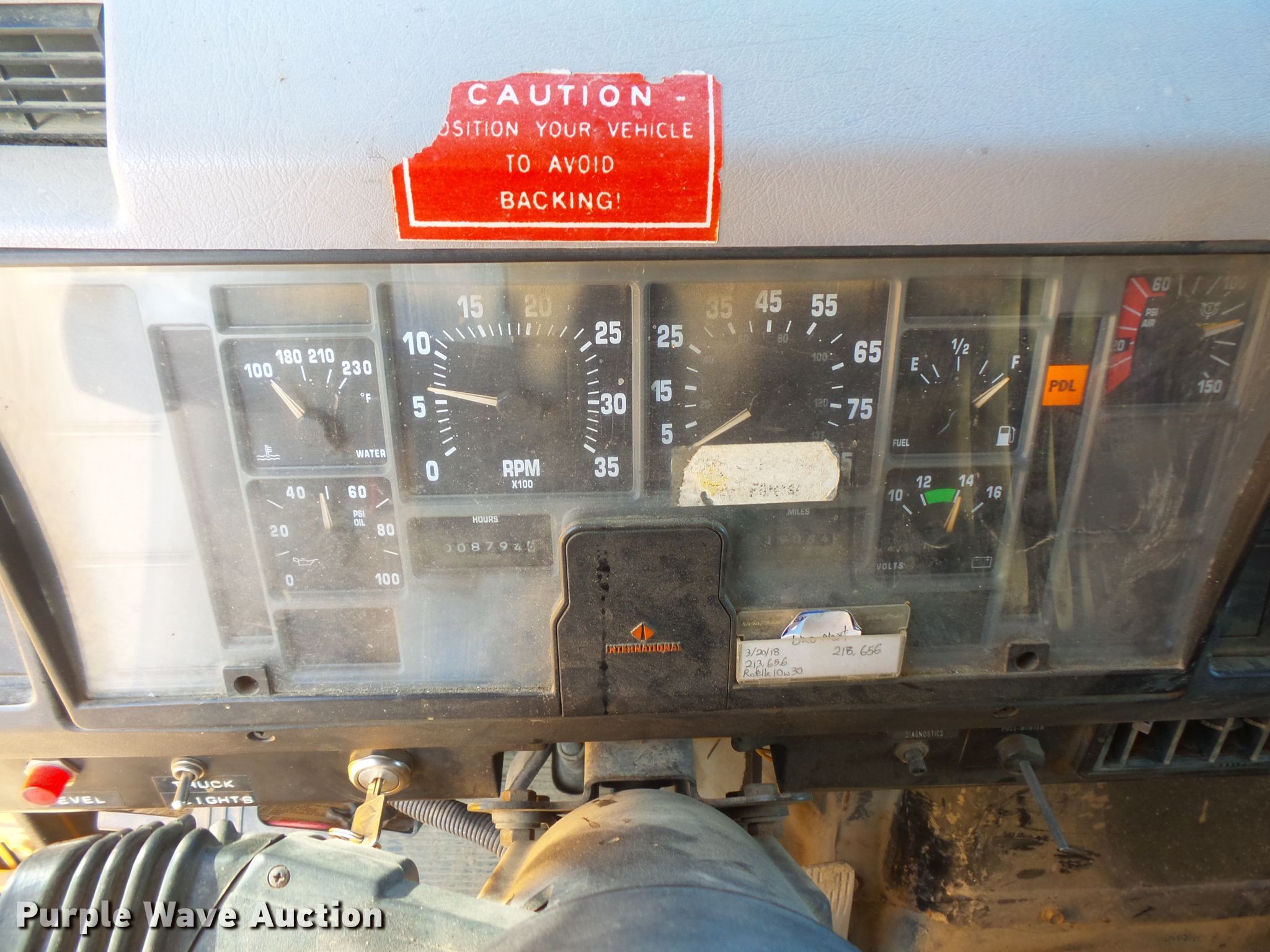 Purple Wave is selling a used Construction Dump Truck in South Dakota. This item is a 1998 International 2554 dump truck with the following: 219,064 miles on odometer, 8,794 hours on meter, International 530 8.7L L6 diesel engine, Eaton Fuller 8LL manual transmission, Tandem axle, Inter-axle differential lock, Heat, Power windows, Heated mirrors, Front mounted PTO, 15'L x 96"W steel dump bed, 38" side height, Single ram hoist, Air operated end gate, Bed vibrator, Snow plow mounting bracket, Wing plow mounting bracket, Spring over walking beam suspension, Air brakes, 425/65R22.5 front tires, 11R22.5 rear tires, GVWR 54,500 lbs, FAWR 14,500 lbs, IAWR 20,000 lbs, RAWR 20,000 lbs, Unit# 92