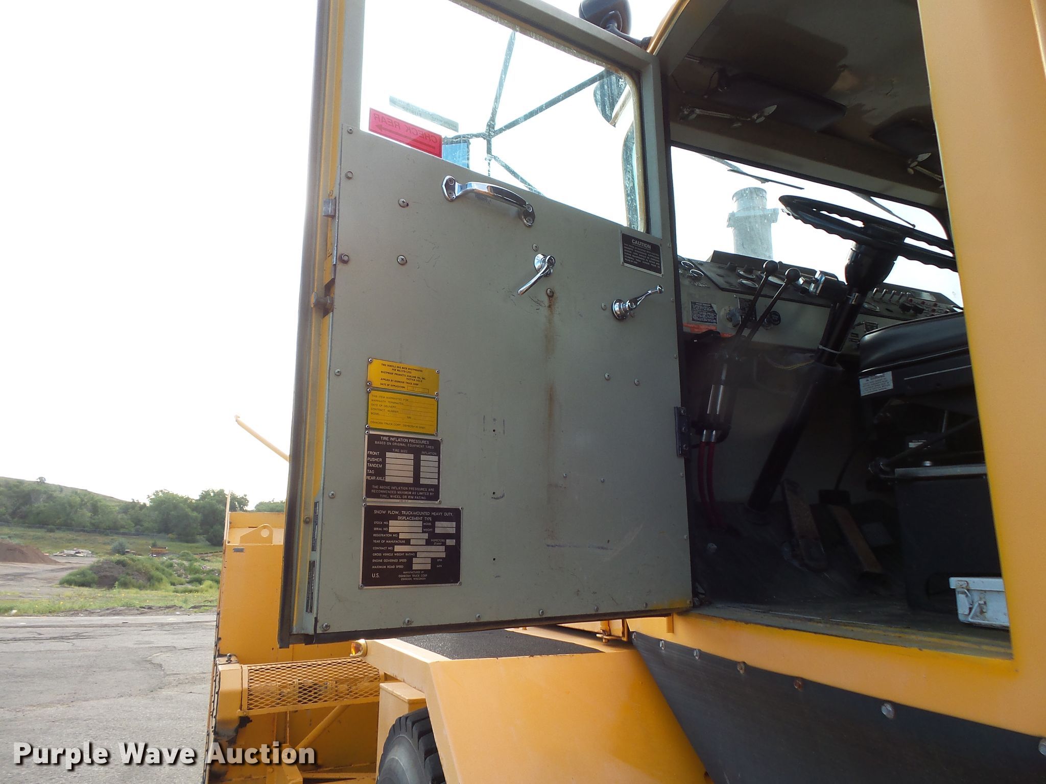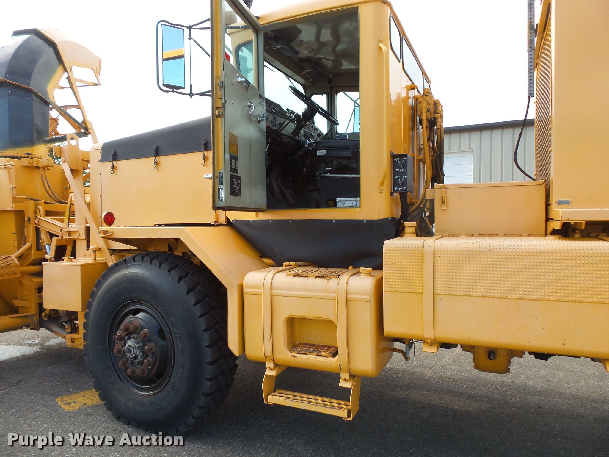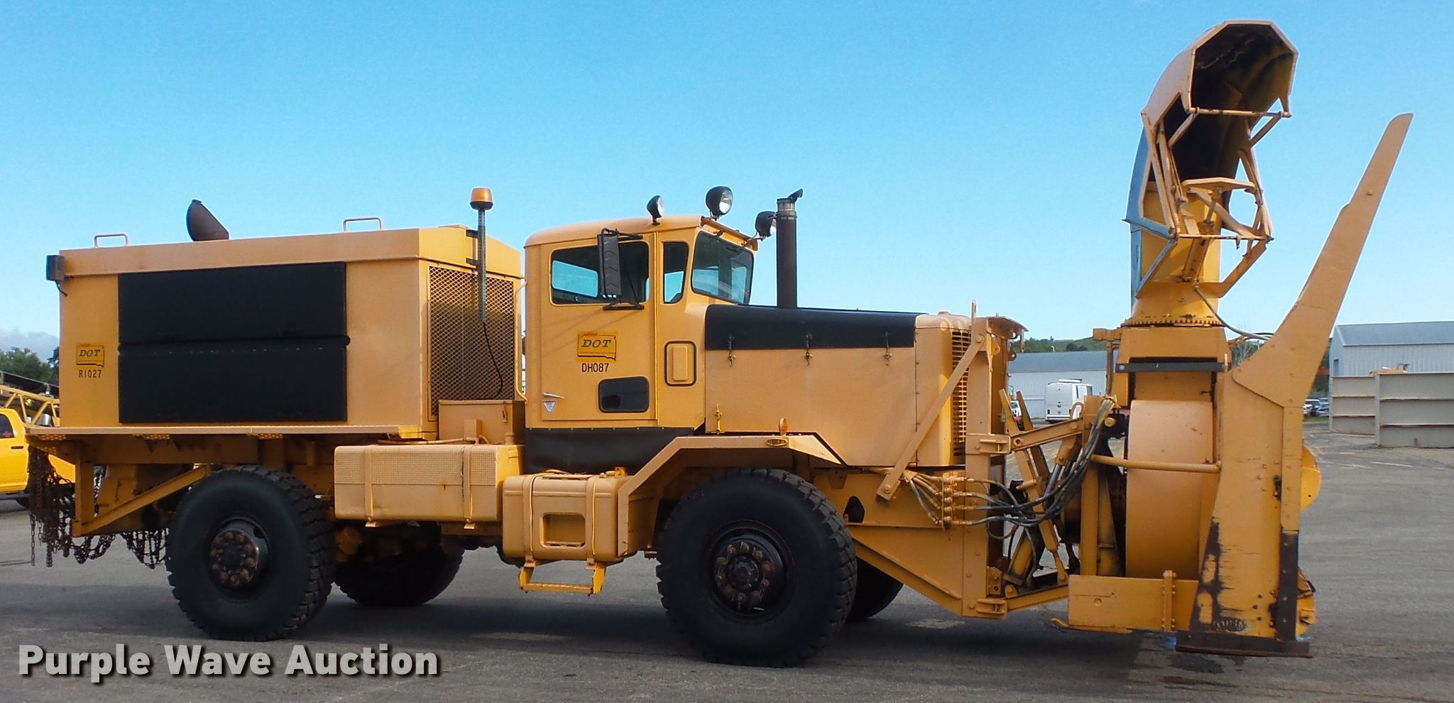 Purple Wave is selling a used Truck Chassis in South Dakota. This item is a 1990 Oshkosh WT2206 snow blower truck with the following: 3,692 miles on odometer, 531 hours on meter, Caterpillar six cylinder diesel engine, Powershift transmission, Single axle, Heat, 10.5'W snow blower, Caterpillar D348 12 cylinder diesel engine, Serial 57K471, Hydraulic adjustable chute, Double frame, Spring suspension, Air brakes, 13'7" wheelbase, 14.00R24 tires, (2) sets of tire chains, 32'10"L x 10'8"W x 12'H overall, 50,220 lbs. base operating weight, Equip. No. DH087, Non-operational rear differential