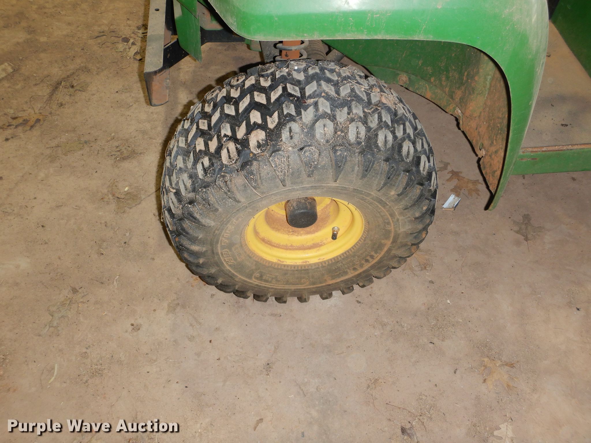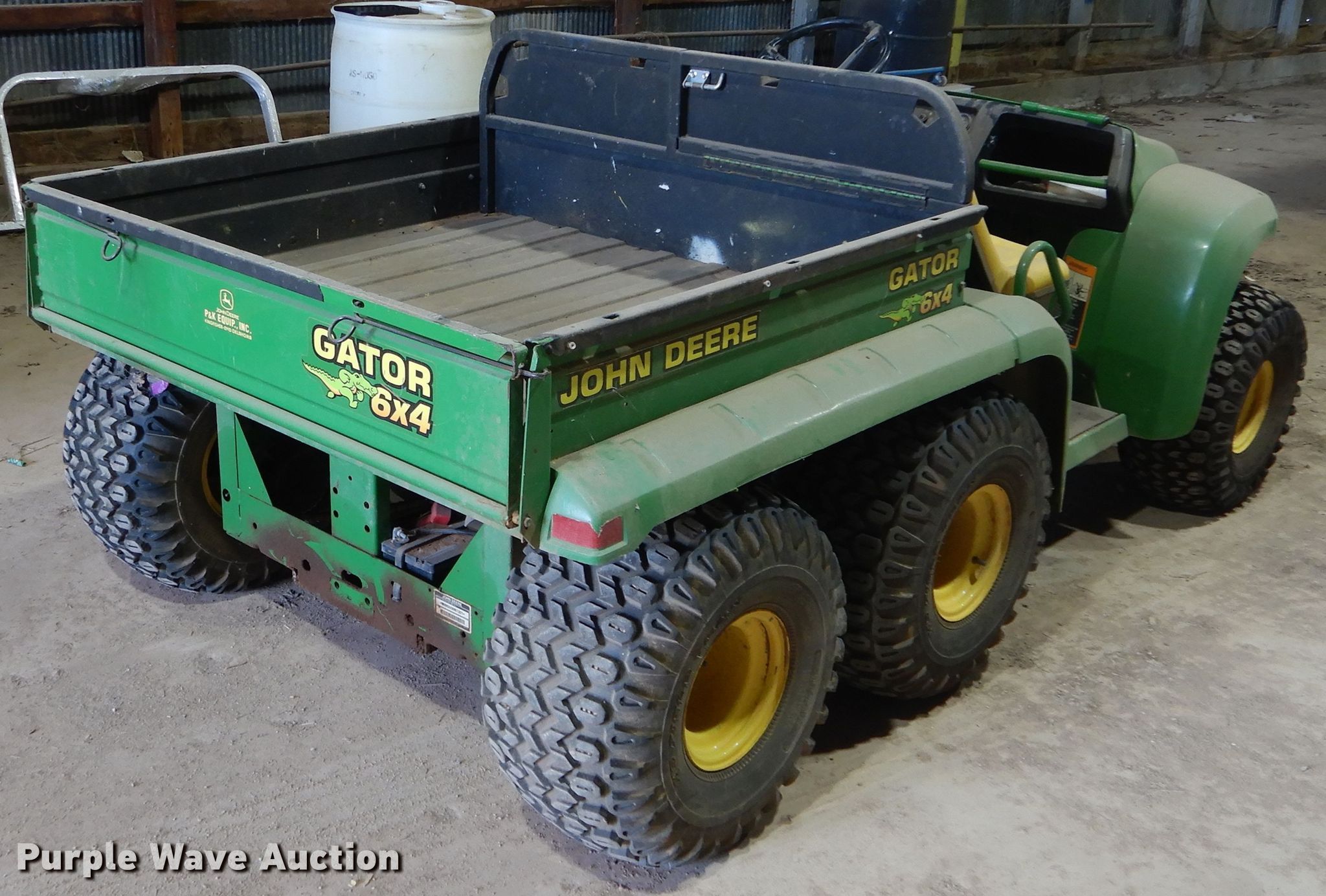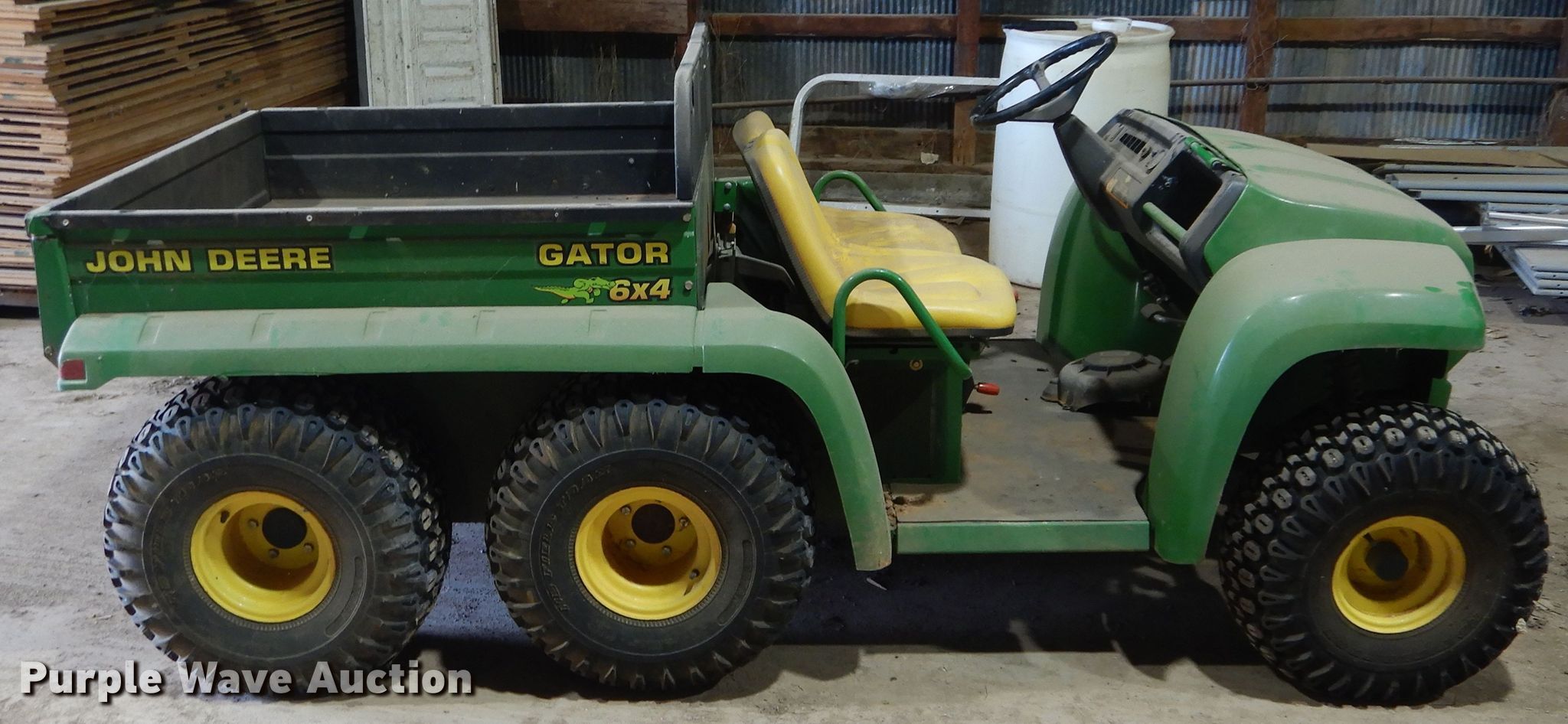 Purple Wave is selling a used Utility Vehicle in Oklahoma. This item is a 2001 John Deere Gator utility vehicle with the following: Unknown miles on odometer, 671cc gas engine, Automatic transmission, Two passenger capacity, 45"L x 50"W manual dump bed, 22.5 x 10-8 front tires, AT25-10-9 rear tires, Non-operational unit, Engine issues, No key