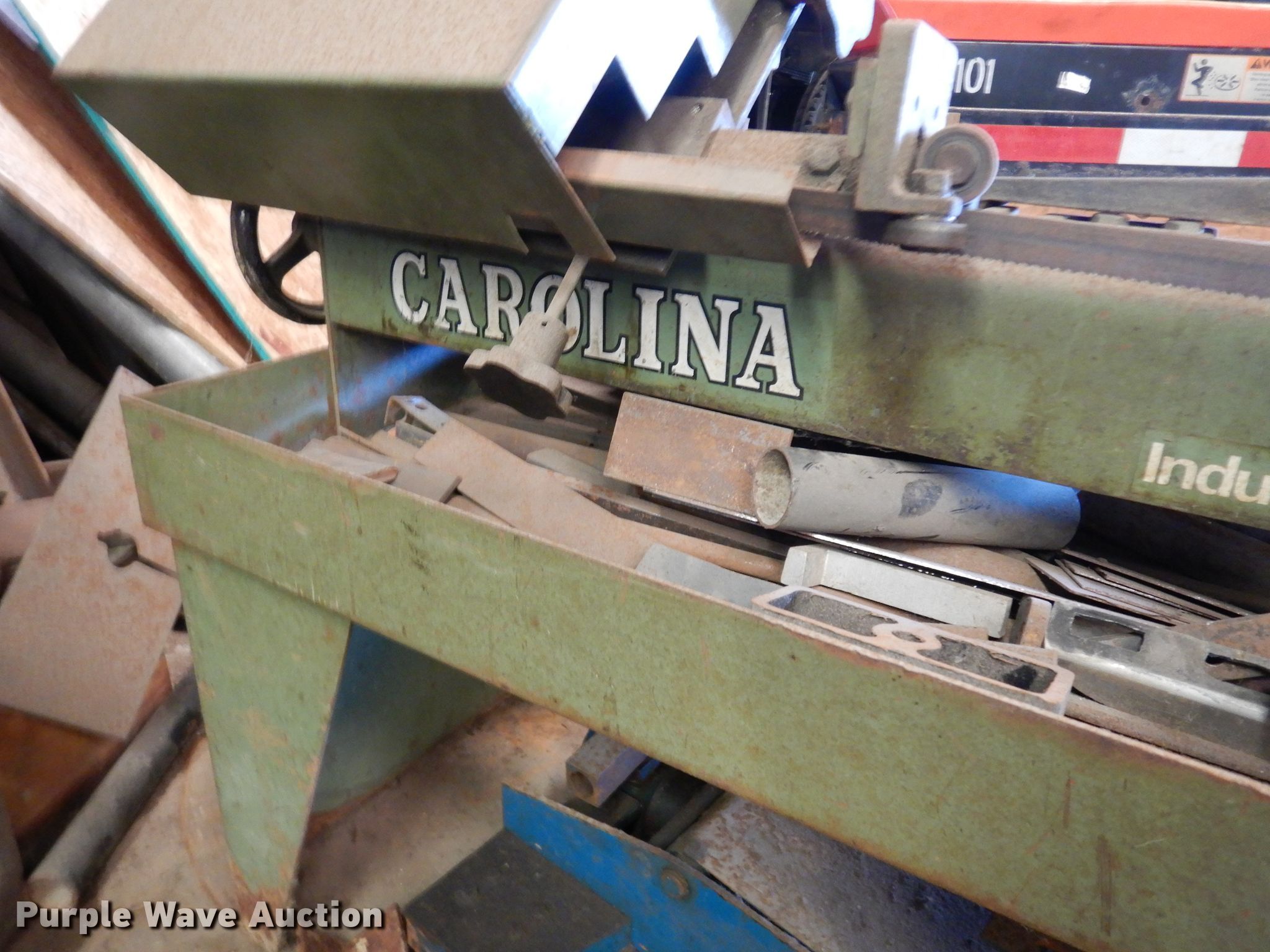 Purple Wave is selling a used Tools in Kansas. This item is a Carolina HD10 metal bandsaw with the following: 120V, Single phase, 15 amp max, Adjustable blade speed, Serial 33703