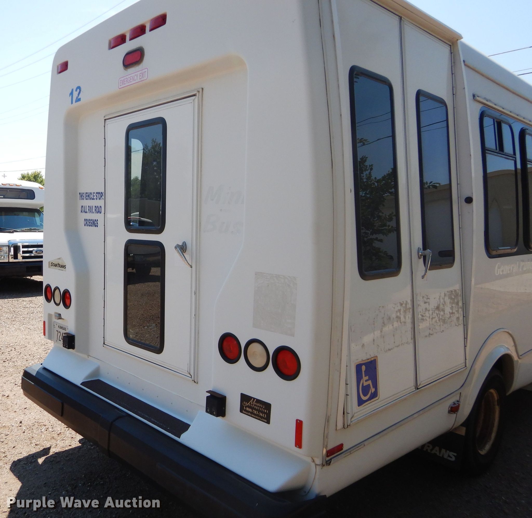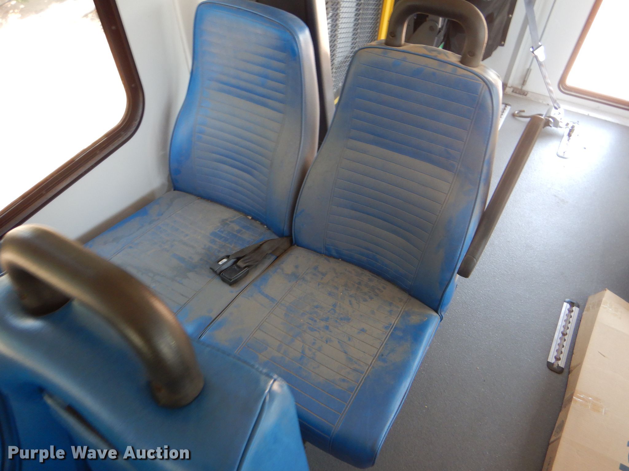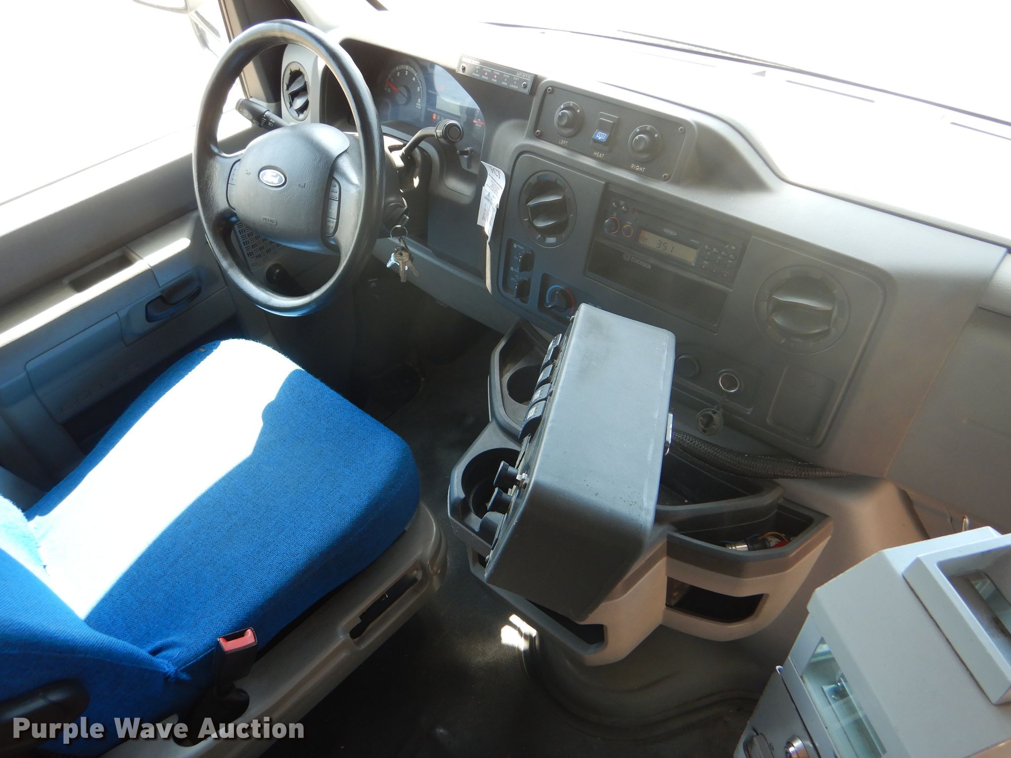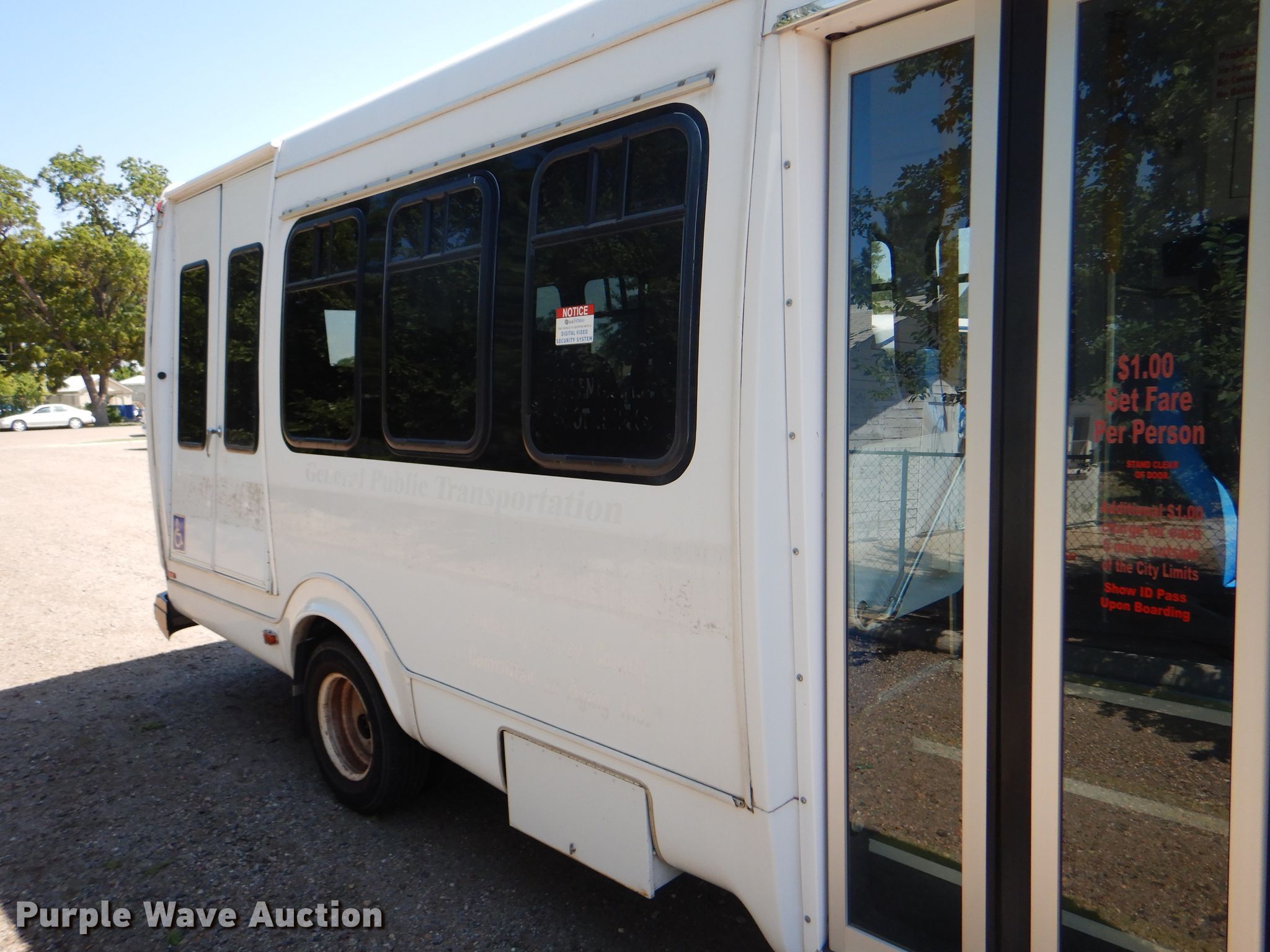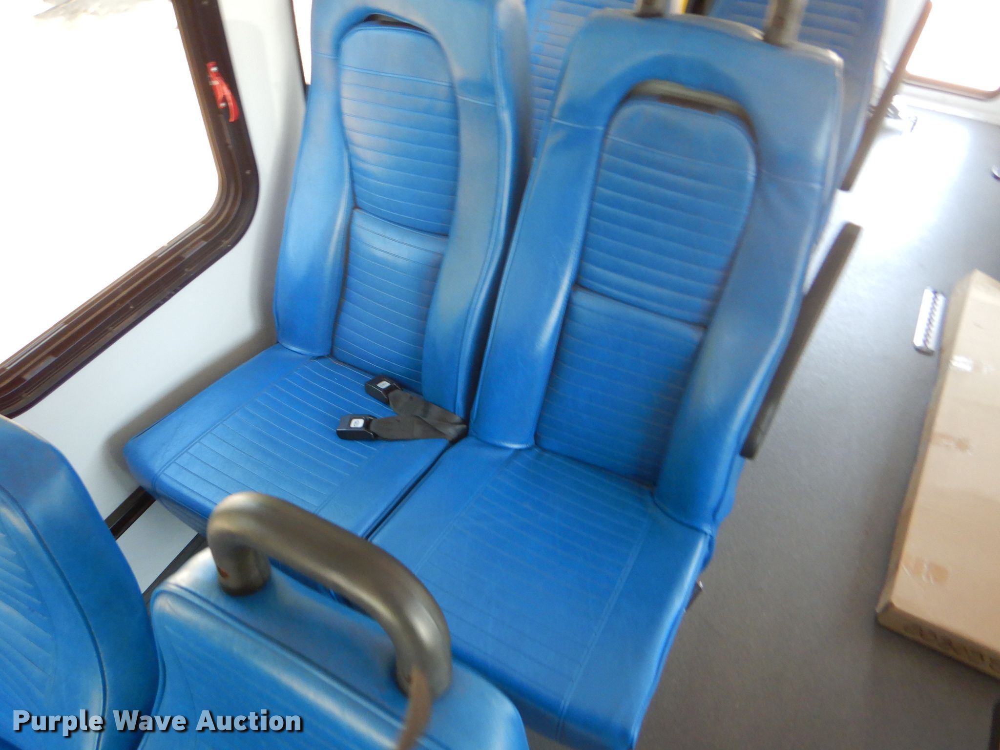 Purple Wave is selling a used Bus in Kansas. This item is a 2009 Ford E350 Super Duty shuttle bus with the following: 100,630 miles on odometer, 6.8L V10 SOHC 20V gas engine, Automatic transmission, Single axle, AC and heat, Auxiliary controls, Electric passenger sliding door, 12 passenger capacity, Braun wheelchair lift, Spring suspension, Hydraulic brakes, 158" wheelbase, 225/75R16 tires, GVWR 12,500 lbs