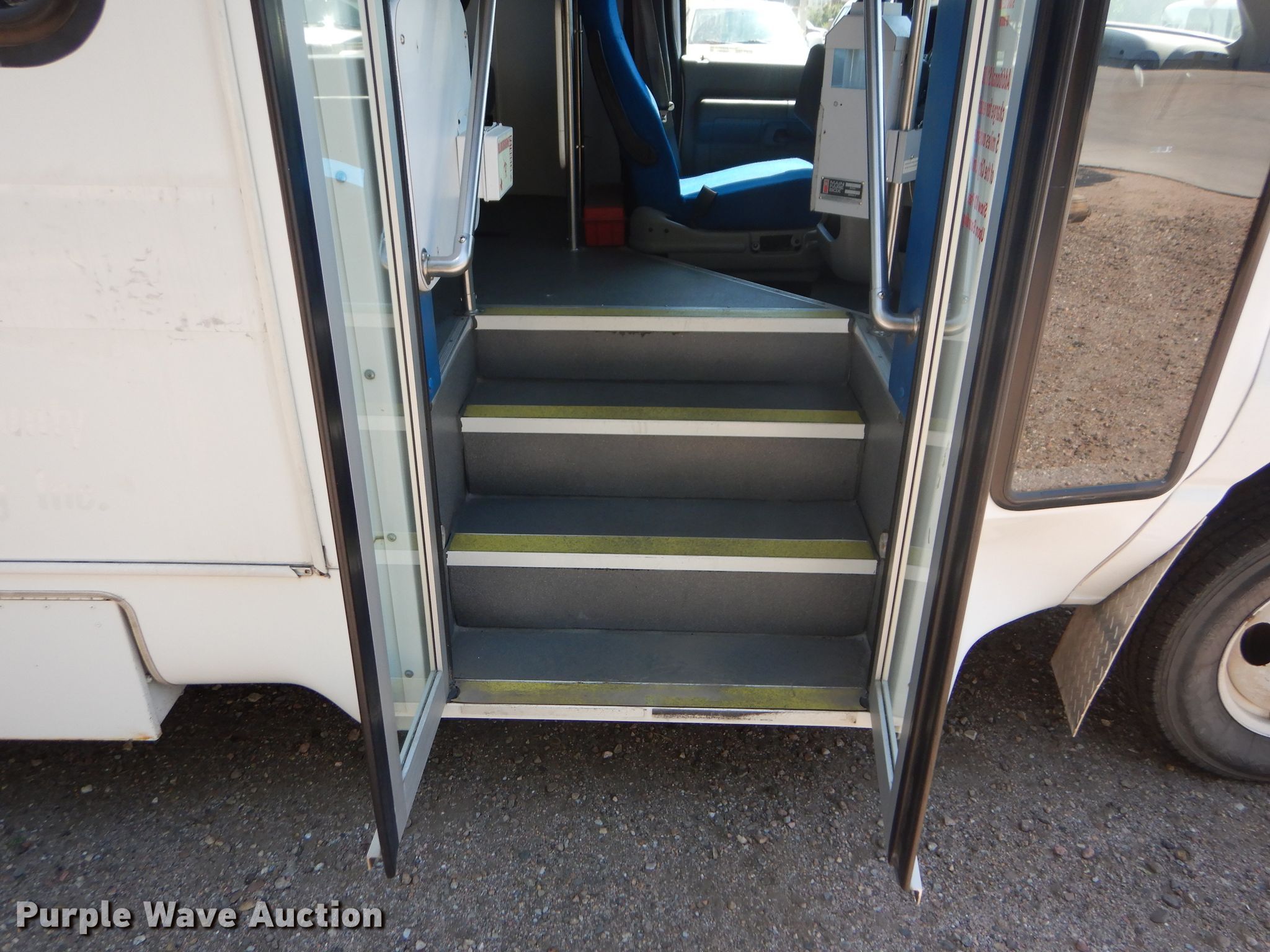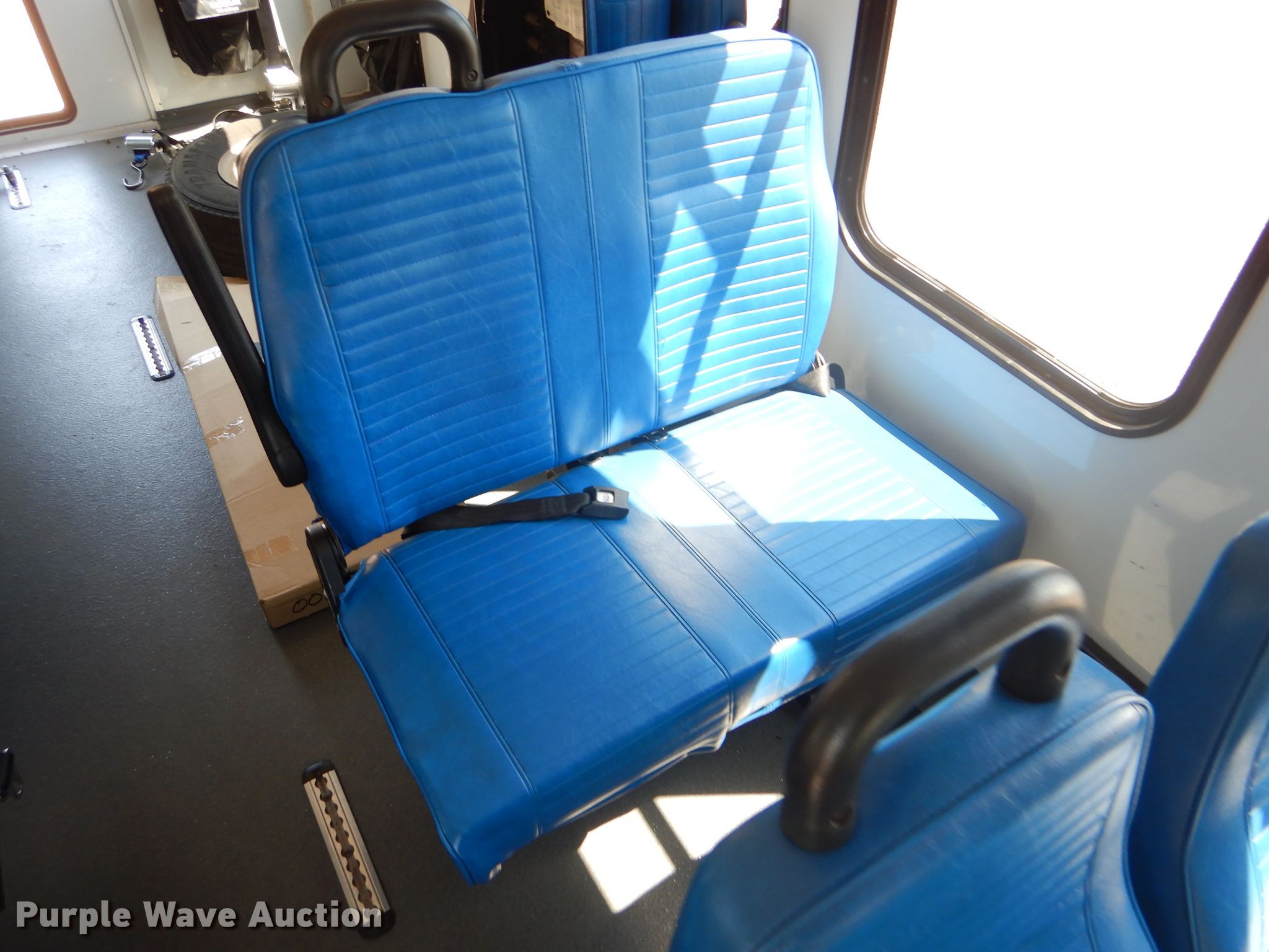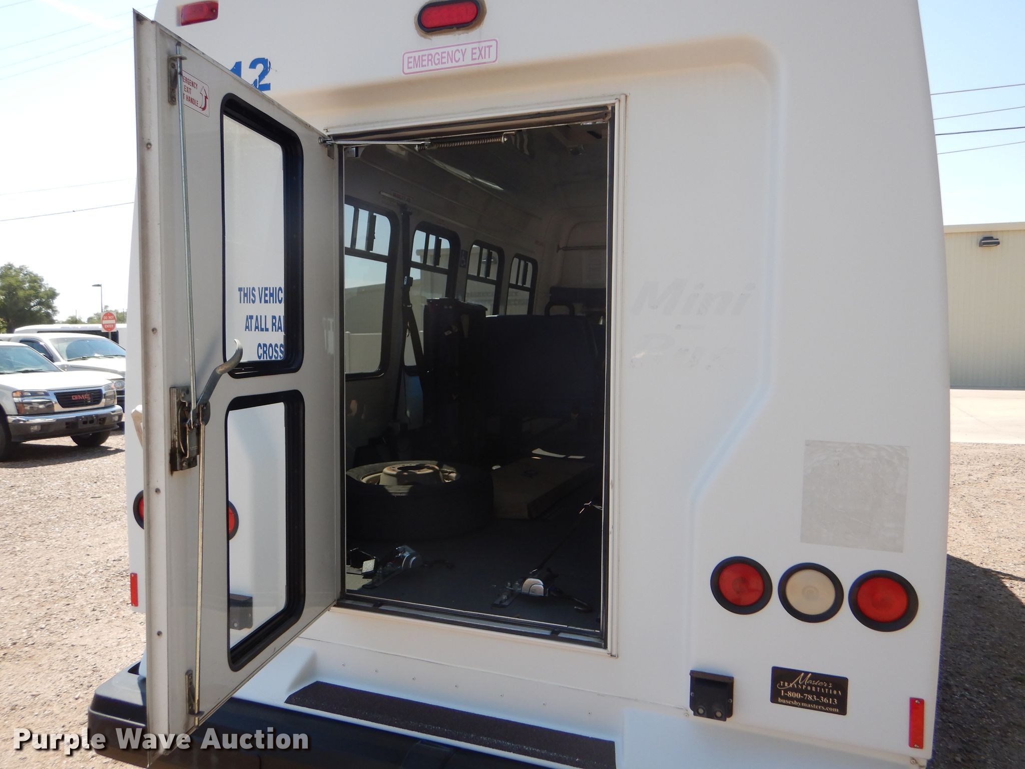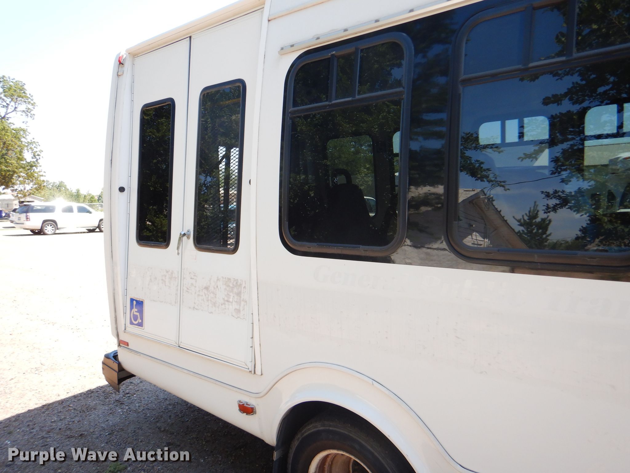 Purple Wave is selling a used Bus in Kansas. This item is a 2009 Ford E350 Super Duty shuttle bus with the following: 100,630 miles on odometer, 6.8L V10 SOHC 20V gas engine, Automatic transmission, Single axle, AC and heat, Auxiliary controls, Electric passenger sliding door, 12 passenger capacity, Braun wheelchair lift, Spring suspension, Hydraulic brakes, 158" wheelbase, 225/75R16 tires, GVWR 12,500 lbs